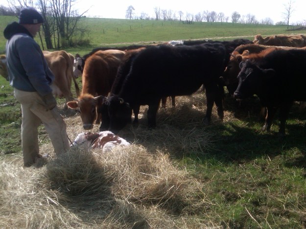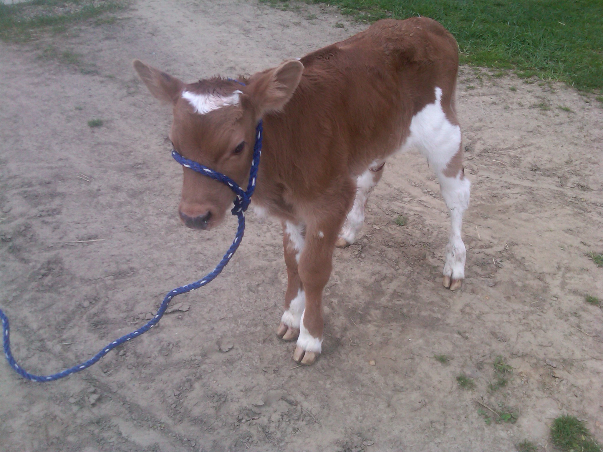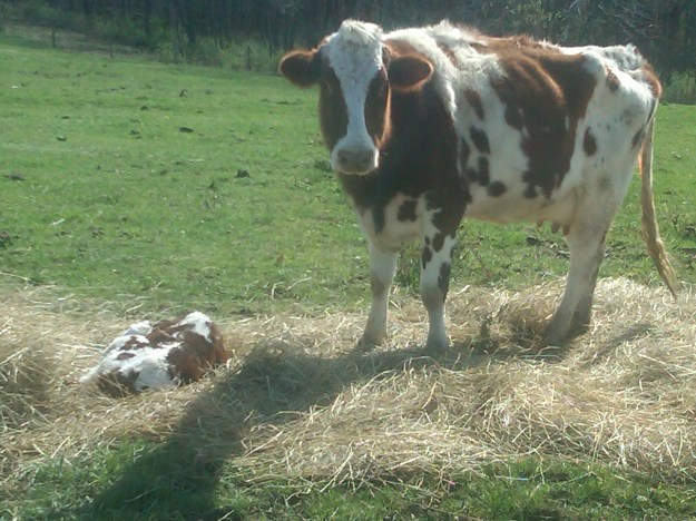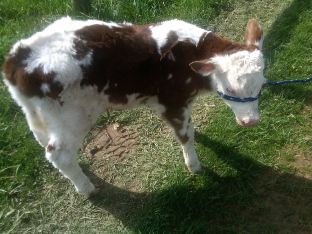 This little guy’s name is Quebec. His mom is ScotchTape. This is the 3rd year using the “aviator’s alphabet” to name our bulls. Got through “Golf” in 2010, through “Papa” in 2011, so that’s how we got to Q for this year. (We did make an exception for our 1st bull this year – named him after a friend, lol!) π