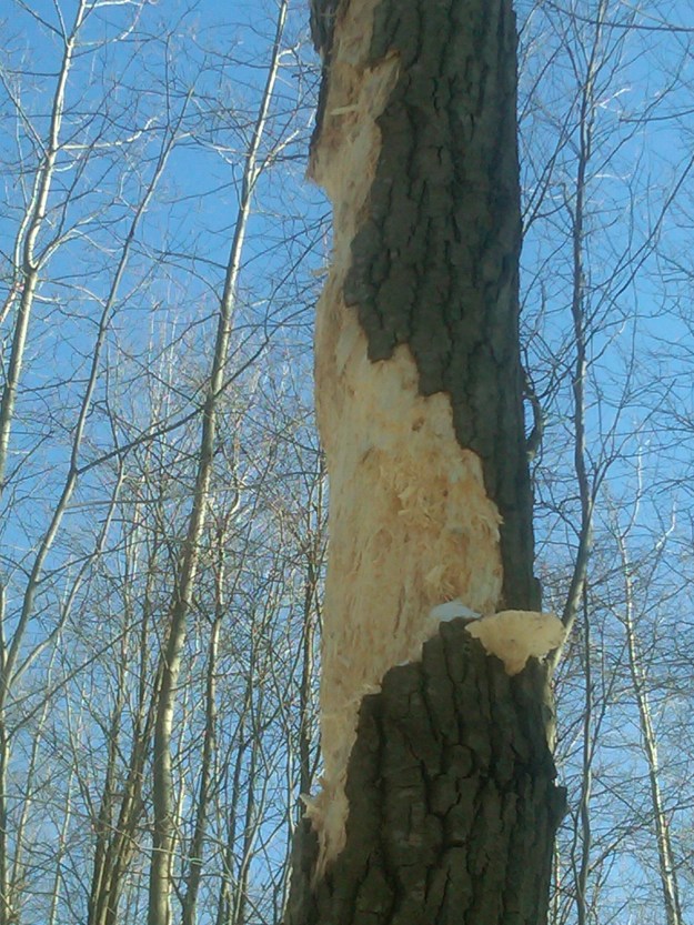 Found this tree on a walk in our woods… We are assuming this is from a pileated woodpecker ? I think it’s cool to witness God’s Hand in His creation. That is some SERIOUS strength in those beaks to inflict that kind of wood splintering, lol! 🙂 (Even if we’re wrong, & it’s not from a woodpecker, but some kind of insect… Still AMAZING anything could do that to a tree!)