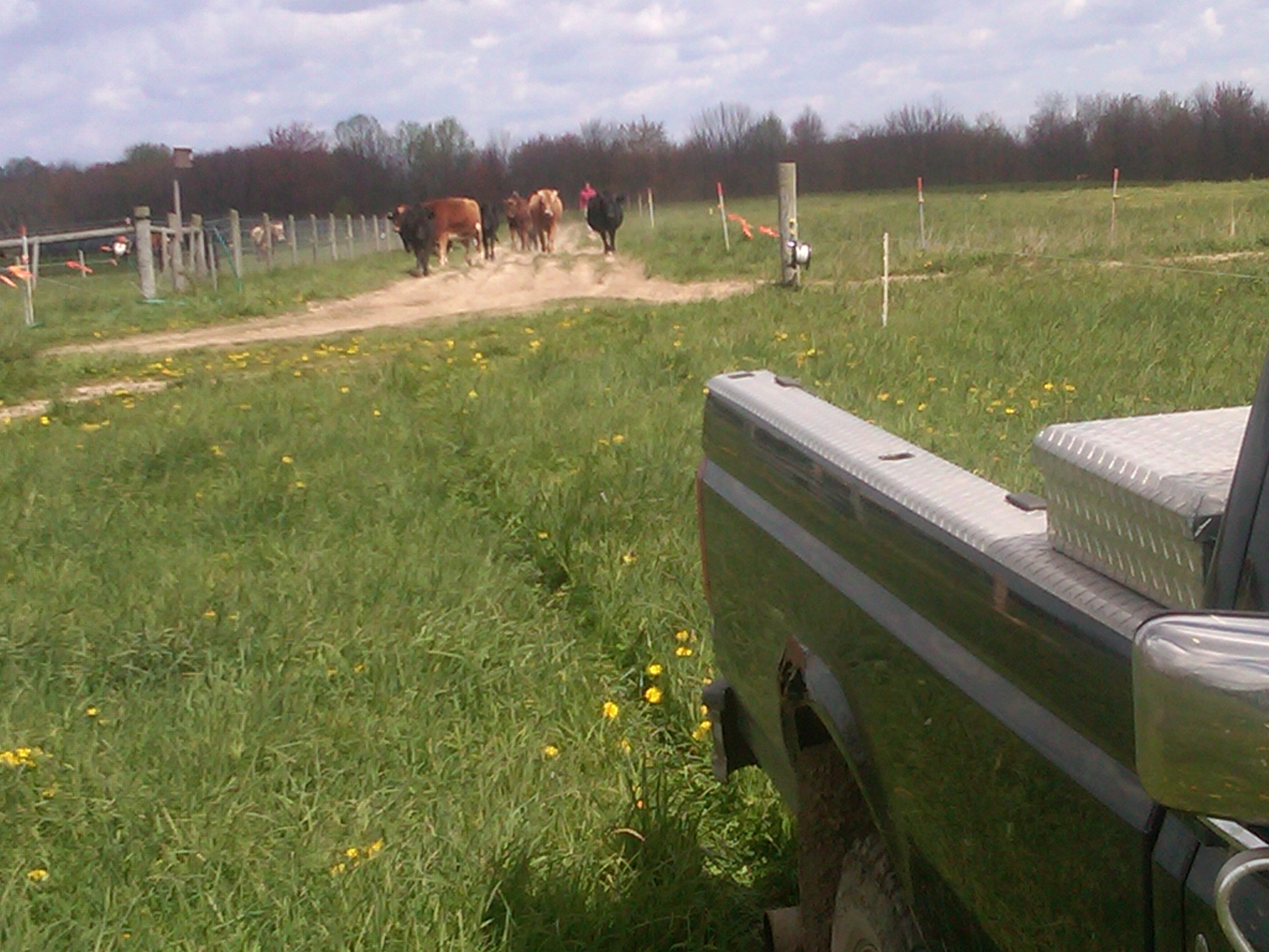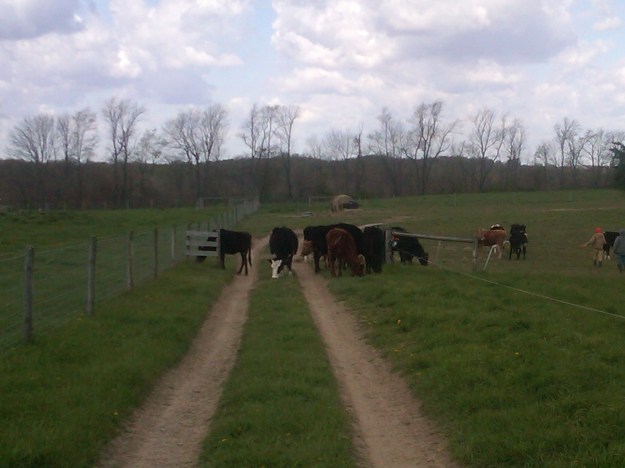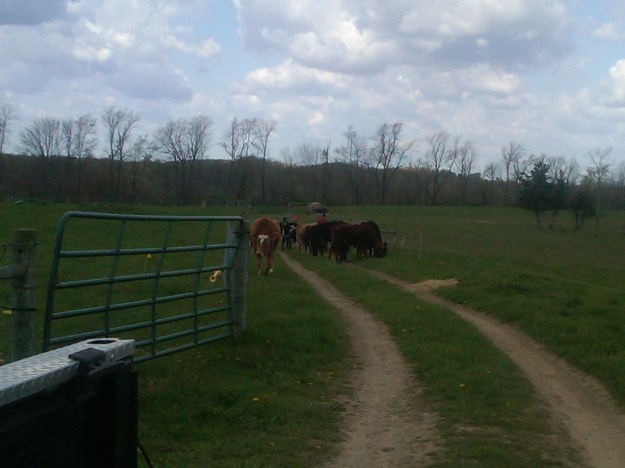 We keep the cows in Mordor until the other fields are growing nicely & ready for grazing. Yesterday was the day to let the cows out to begin full-grazing for 2012. They were so excited! 🙂