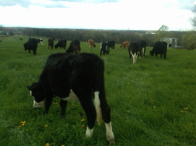 Last Wednesday we split up the cows that we put together in Gondor the day before. We moved the summer-beef & heifers-to-breed up to Gray Heaven & left the dairy girls in Gondor. In the 1st pic, you can see the yearlings (last year’s calves) watching on the left in The Shire. Little did they know, they’d be joining them shortly, lol! 🙂 The 2nd pic shows the first group enjoying the grass in Gray Heaven.