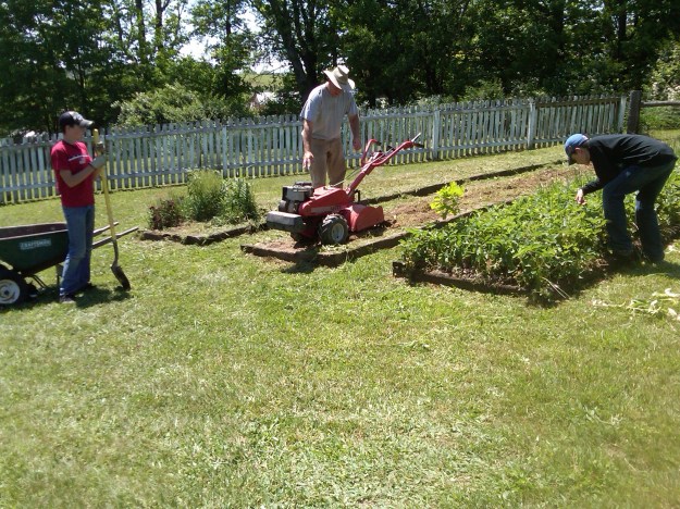 So, one bed has turned into Paul’s strawberry patch, and the other two are for Michael’s pepper gardens – hot & mild. π
