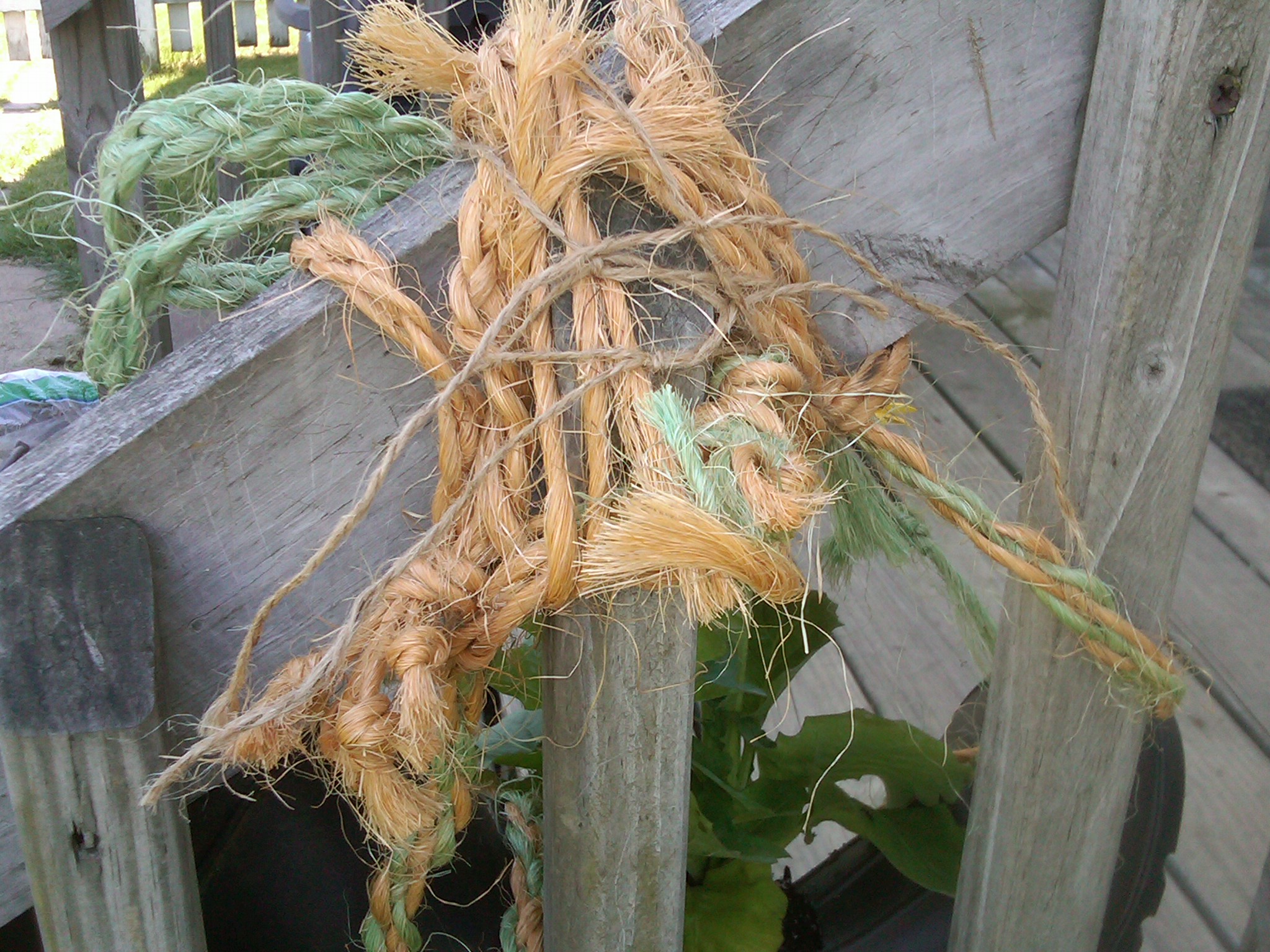 I must tell you, though, I am NOT an accomplished “tie-er”. You’ll see in this pic from the backside, that I basically just kept wrapping & knotting until the boot seemed sturdy.