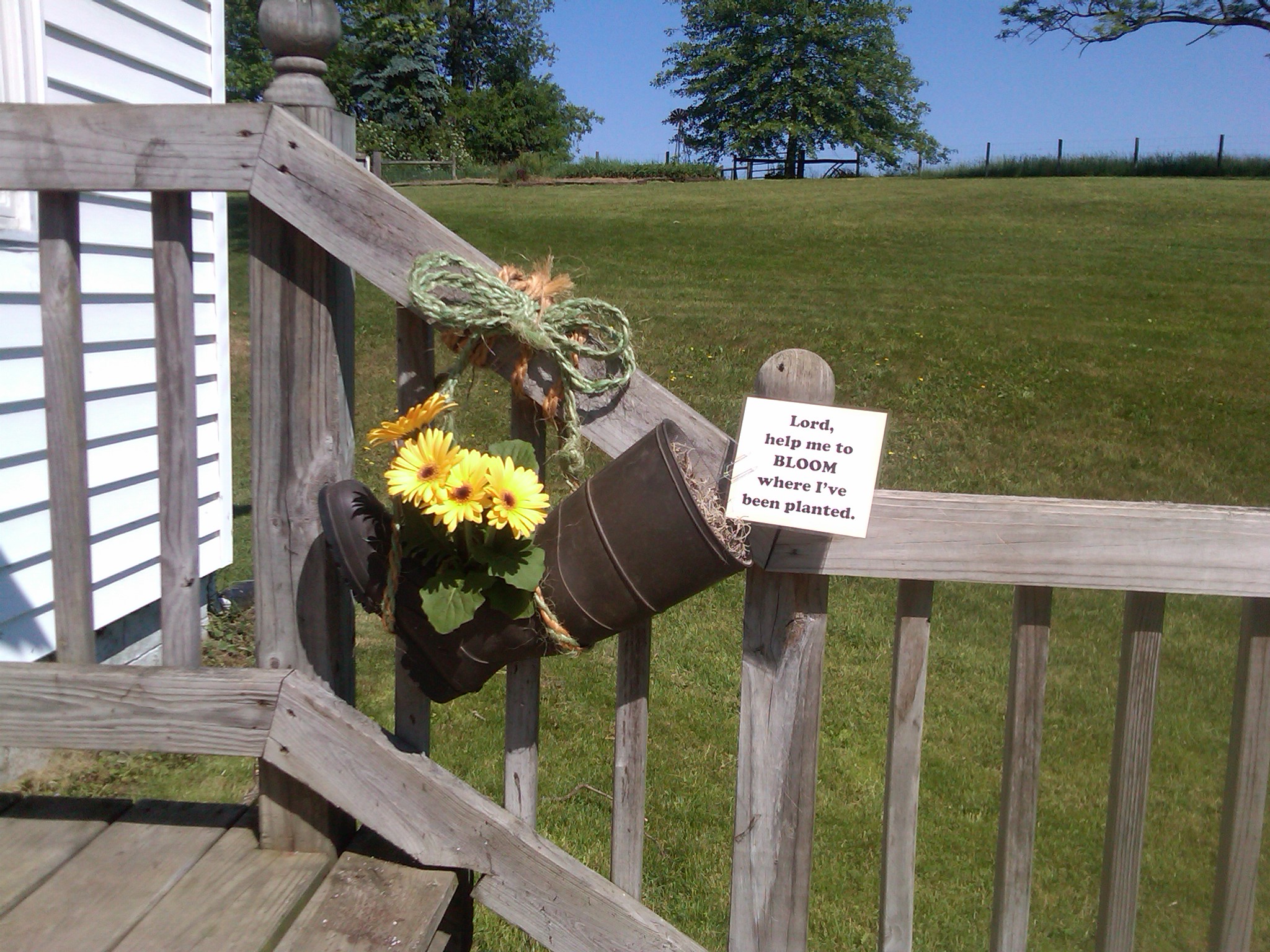 Once I planted the flower, I realized something was needed to hide the emptiness of the tall part of the boot.