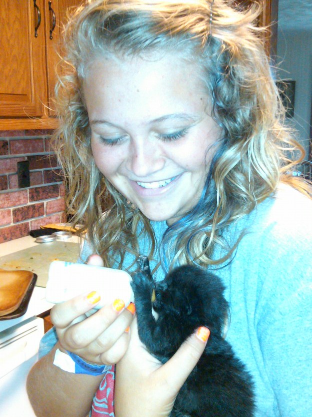 The level of commitment necessary to nurse kittens this young is HUGE, and the thought was a bit daunting to all of us as we considered our overflowing plates right now. But, his tiny cries were enough to melt our hearts to do our best to take care of him. 🙂