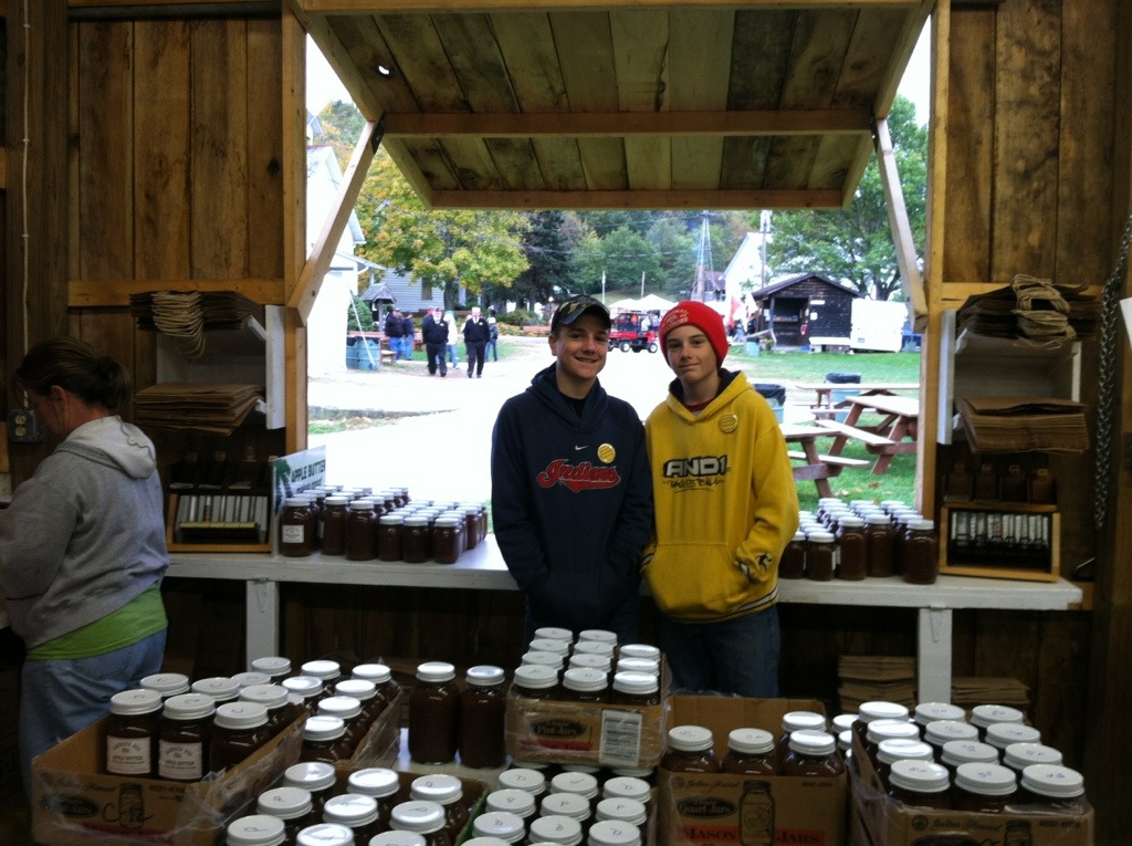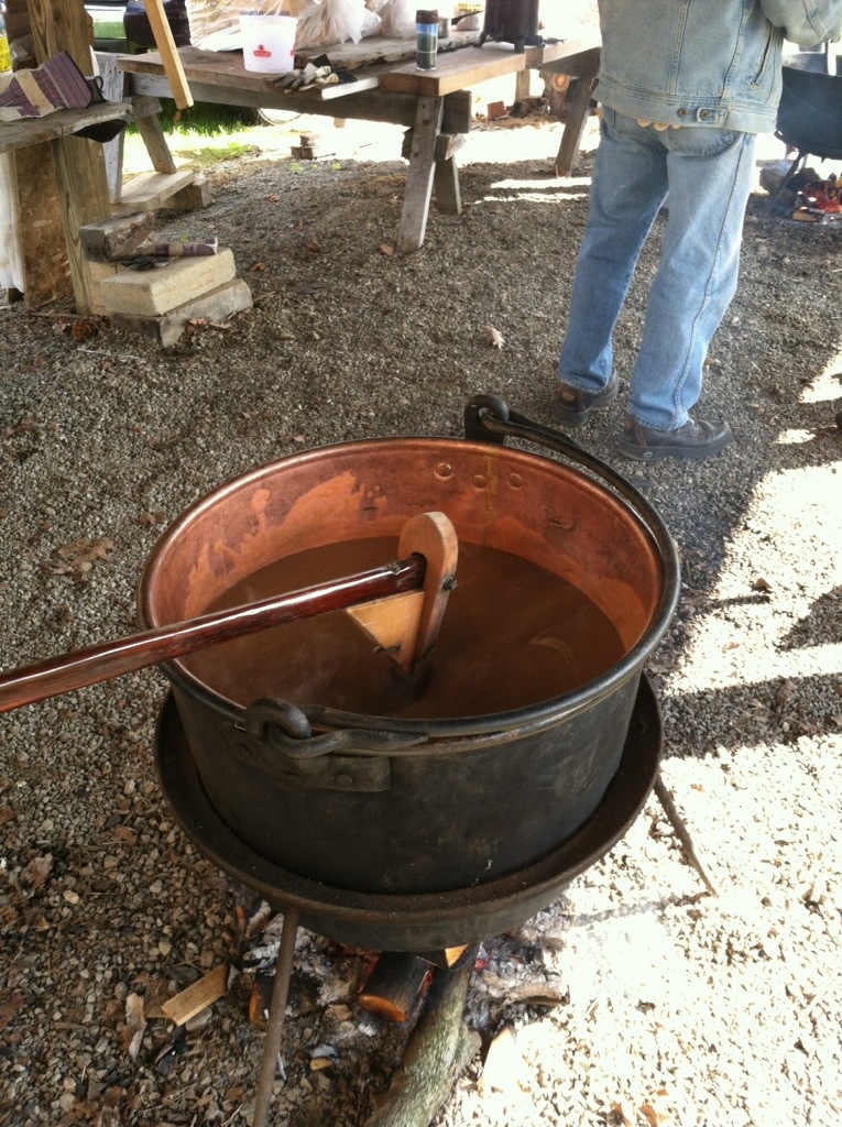 The festival lasts for 3 days. Today, Mike worked in the flouring mill, and the boys & I worked in the Apple Butter house. We had a steady stream of sales, and enjoyed talking with the other volunteers and customers. ๐