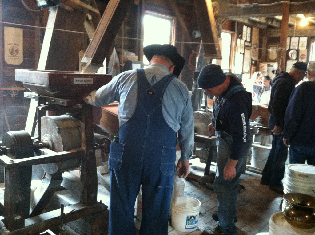 Mike’s mom quilts in the farm house on Thursdays during the year. During the festival, the ladies dress in costume and enjoy demonstrating what they do to the families who come through the house. Recently, Mike and the boys have been joining Grandma on Thursdays to work with the men where needed. Mike has always wanted to learn how to work the steam engine powered flour mill, and he is getting to do that. Hopefully, the boys will follow suit as the next year progresses. It’s such a wonderful learning experience for all – the passing on of knowledge from generation to generation.
