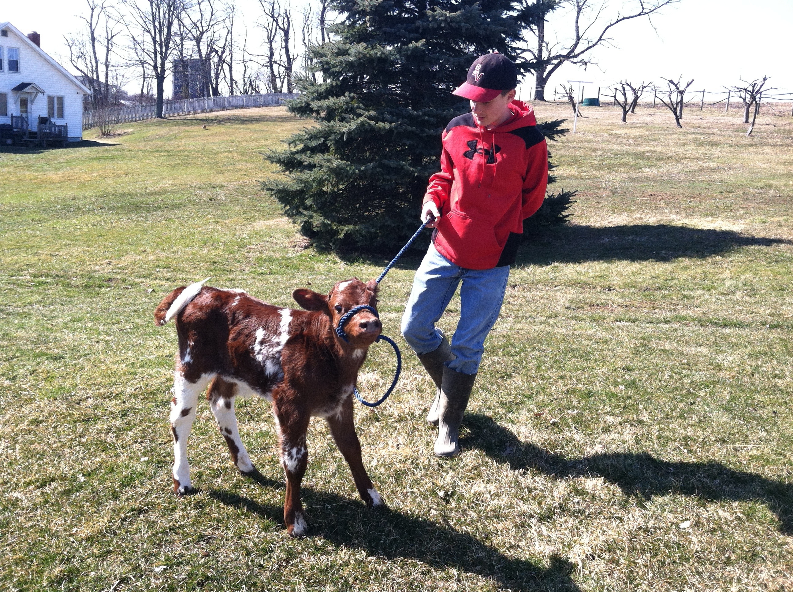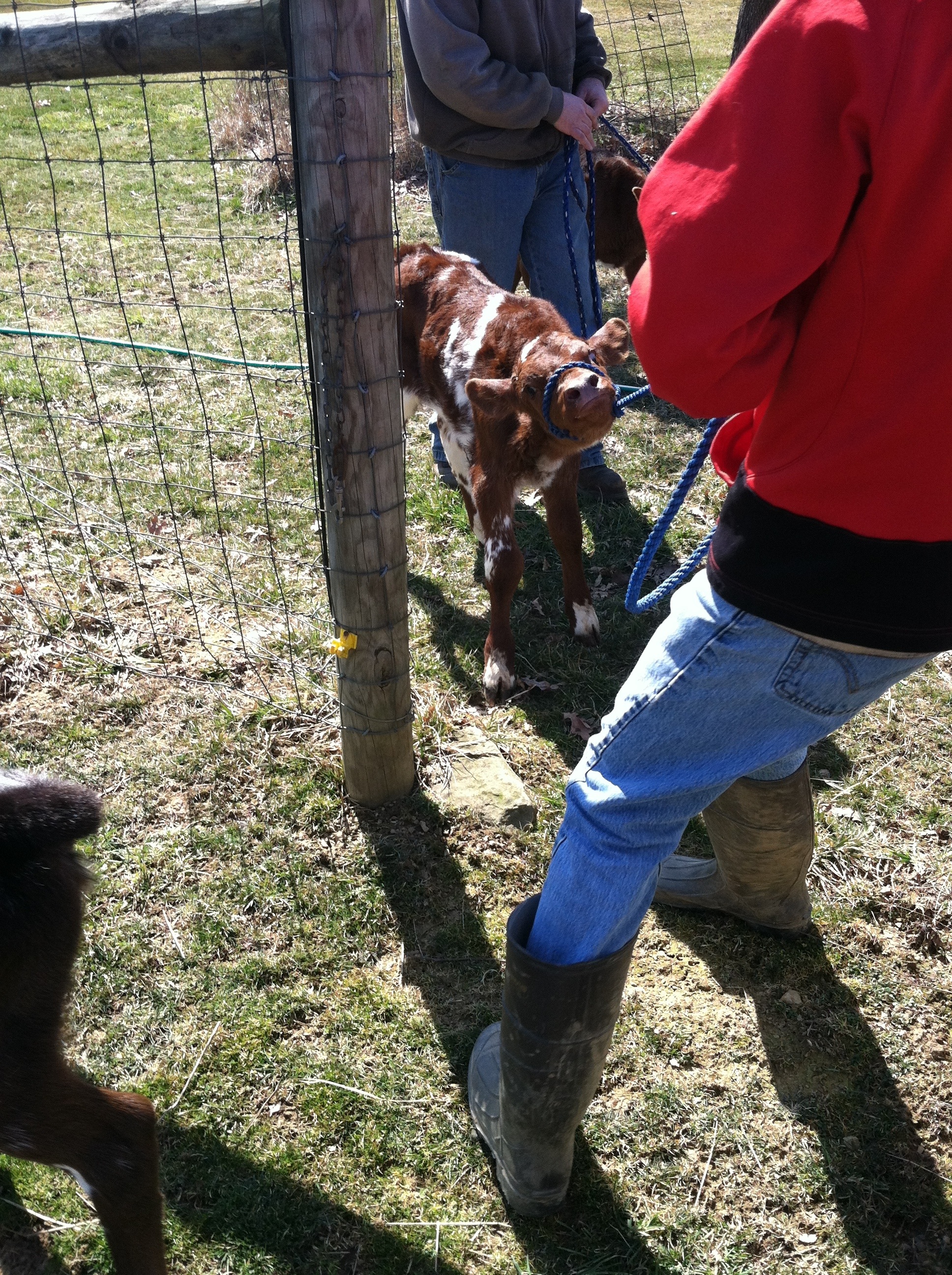 As we walk our calves with halters on, they always remind me of puppy dogs… Since we don’t have any pet dogs here, I suppose these cute guys ARE OUR puppy dogs, lol…