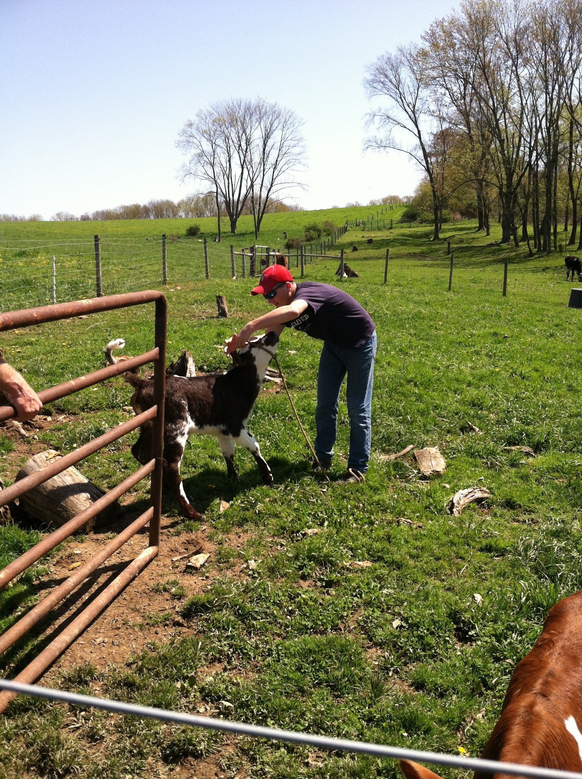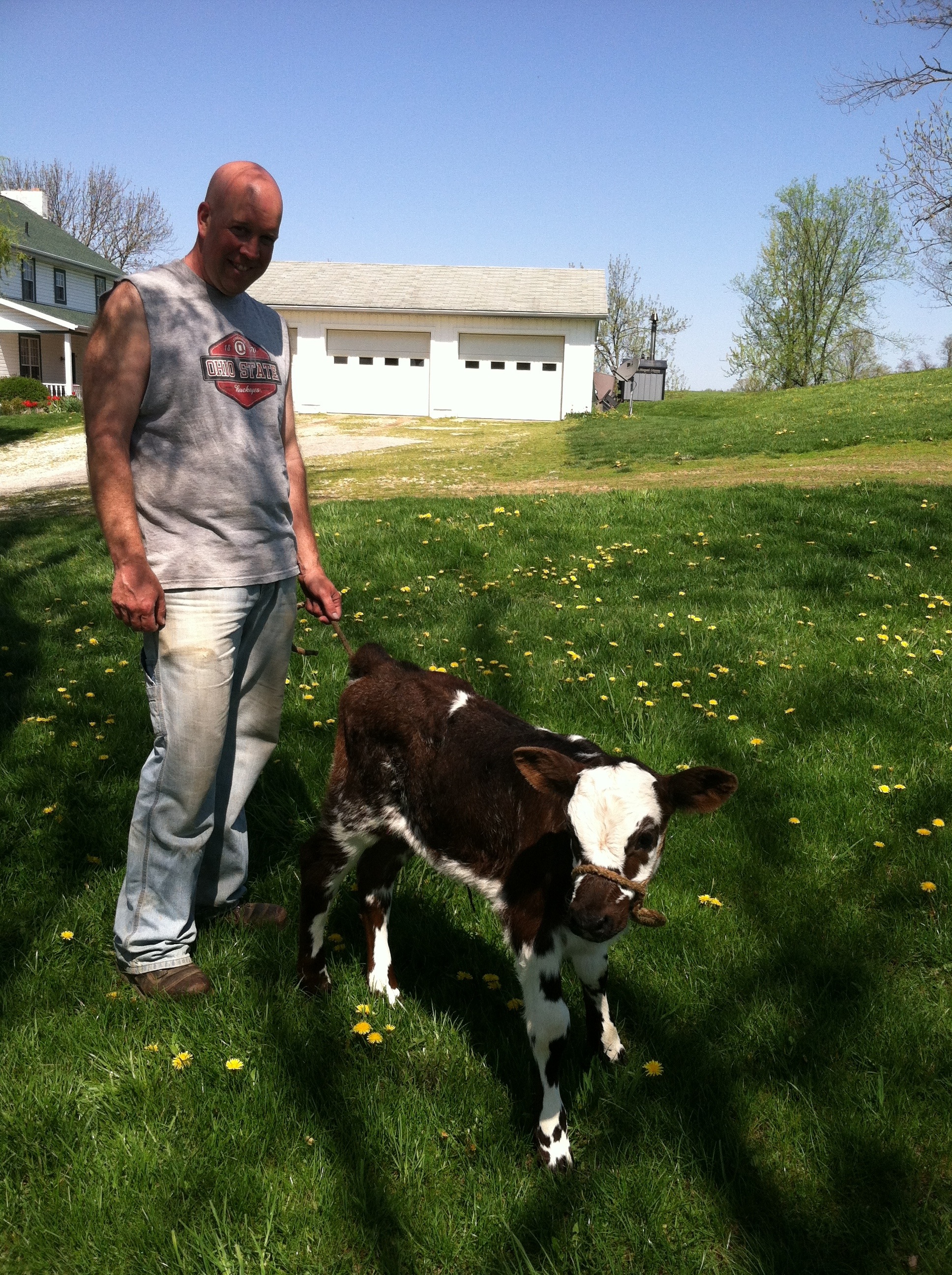 Today was Uno’s turn to leave the barn & join her other 9 half-brothers & sisters in the barnyard at our house. She started out walking with Mike.