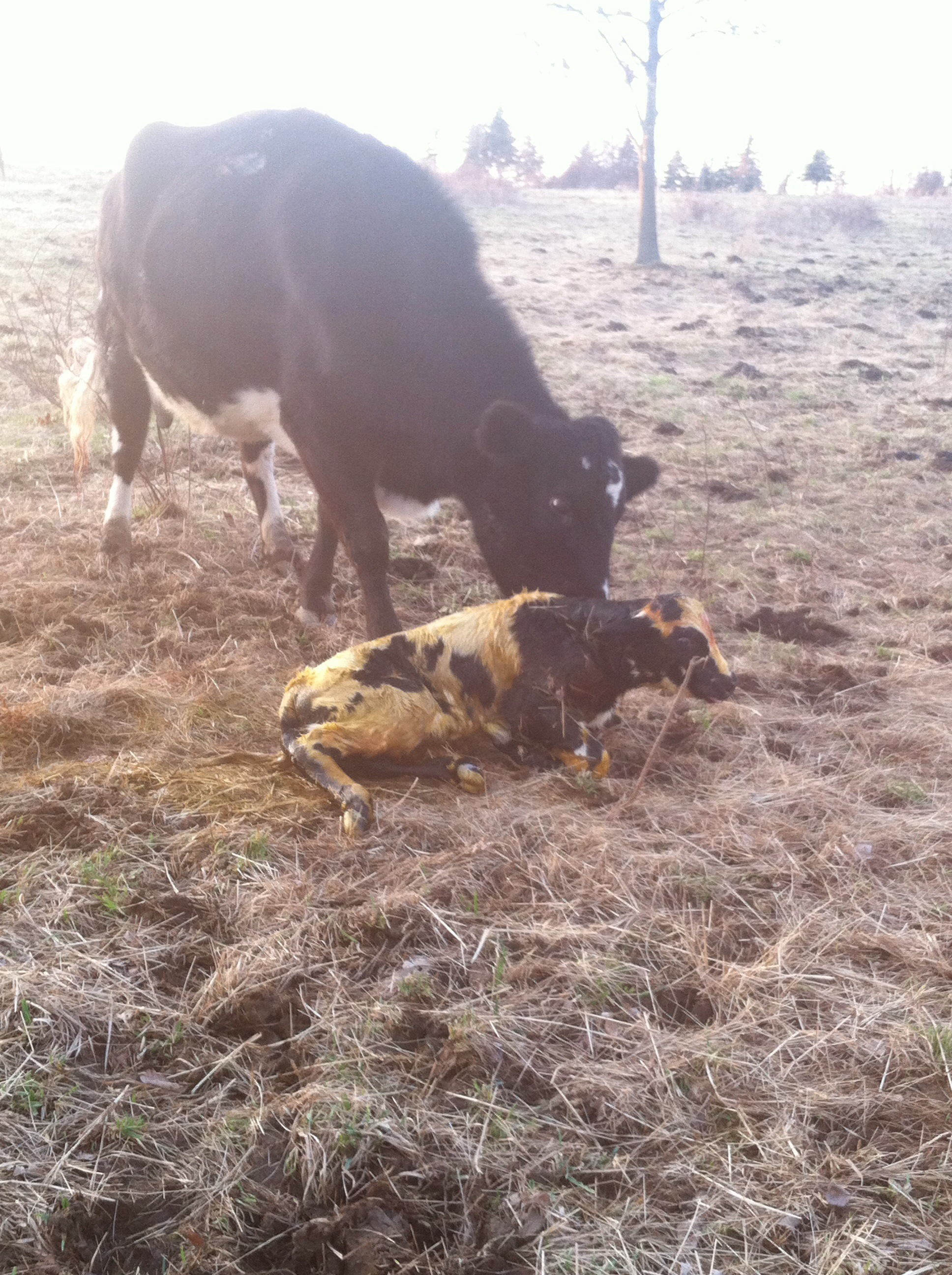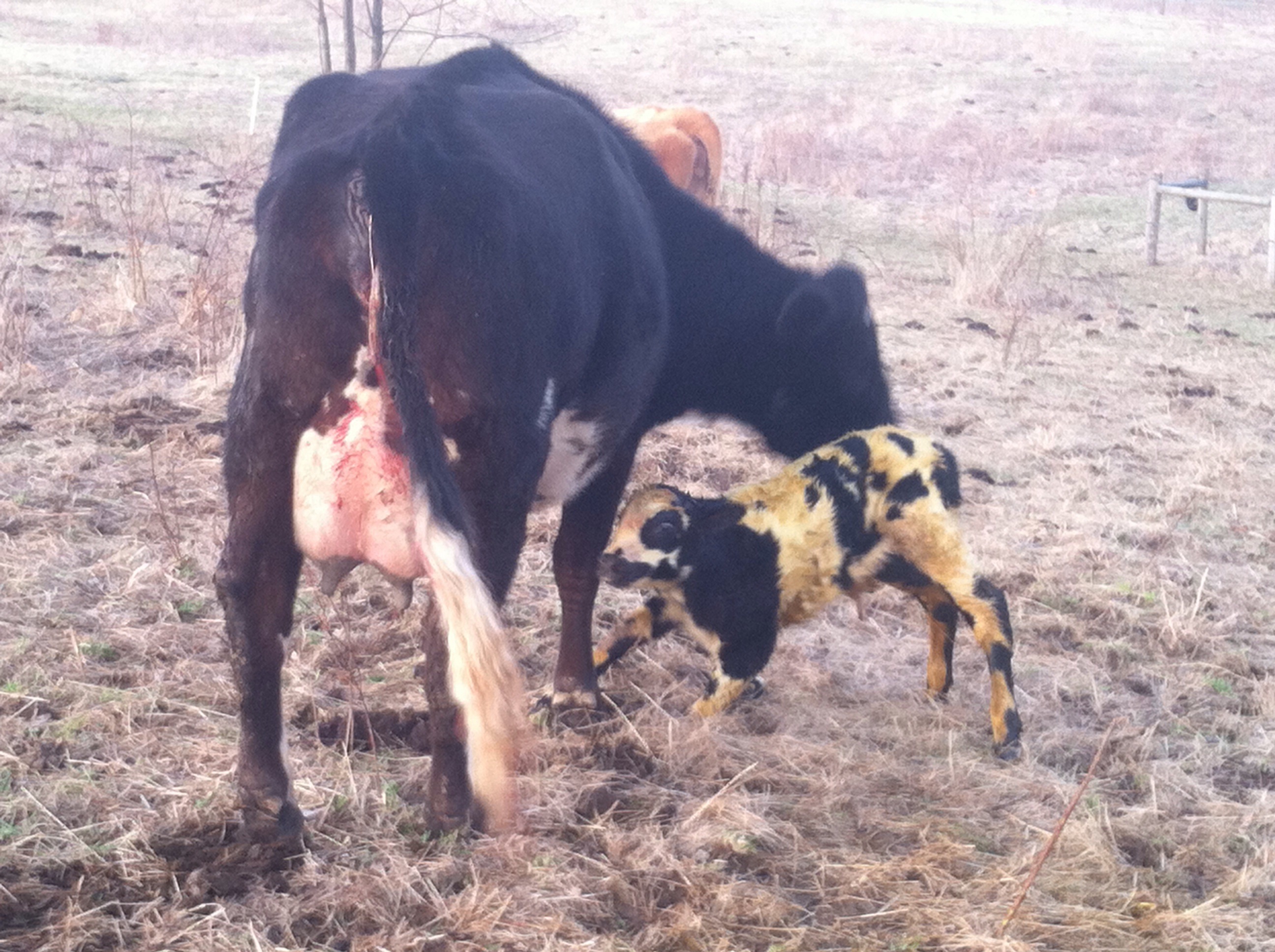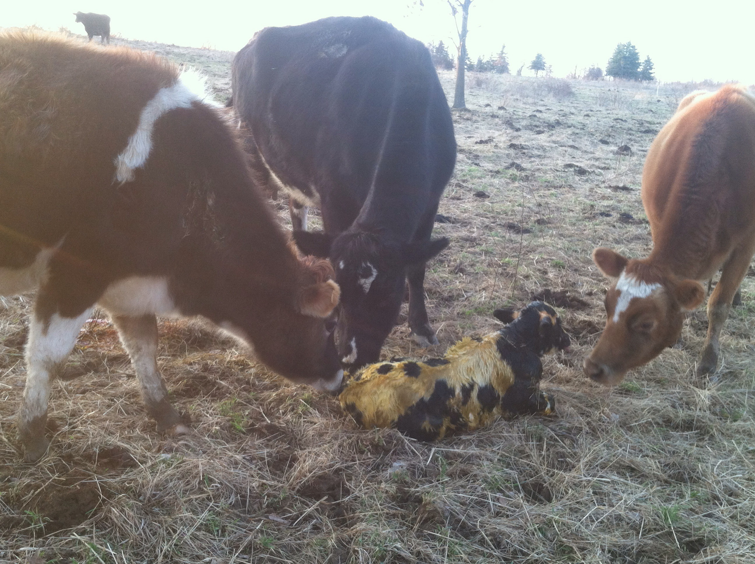 “ThomasJefferson” was born right before our eyes this evening! π (Click here to read about how we are naming our boys this year…) His mama is Disco. (Click here to read about her calf from last year.)