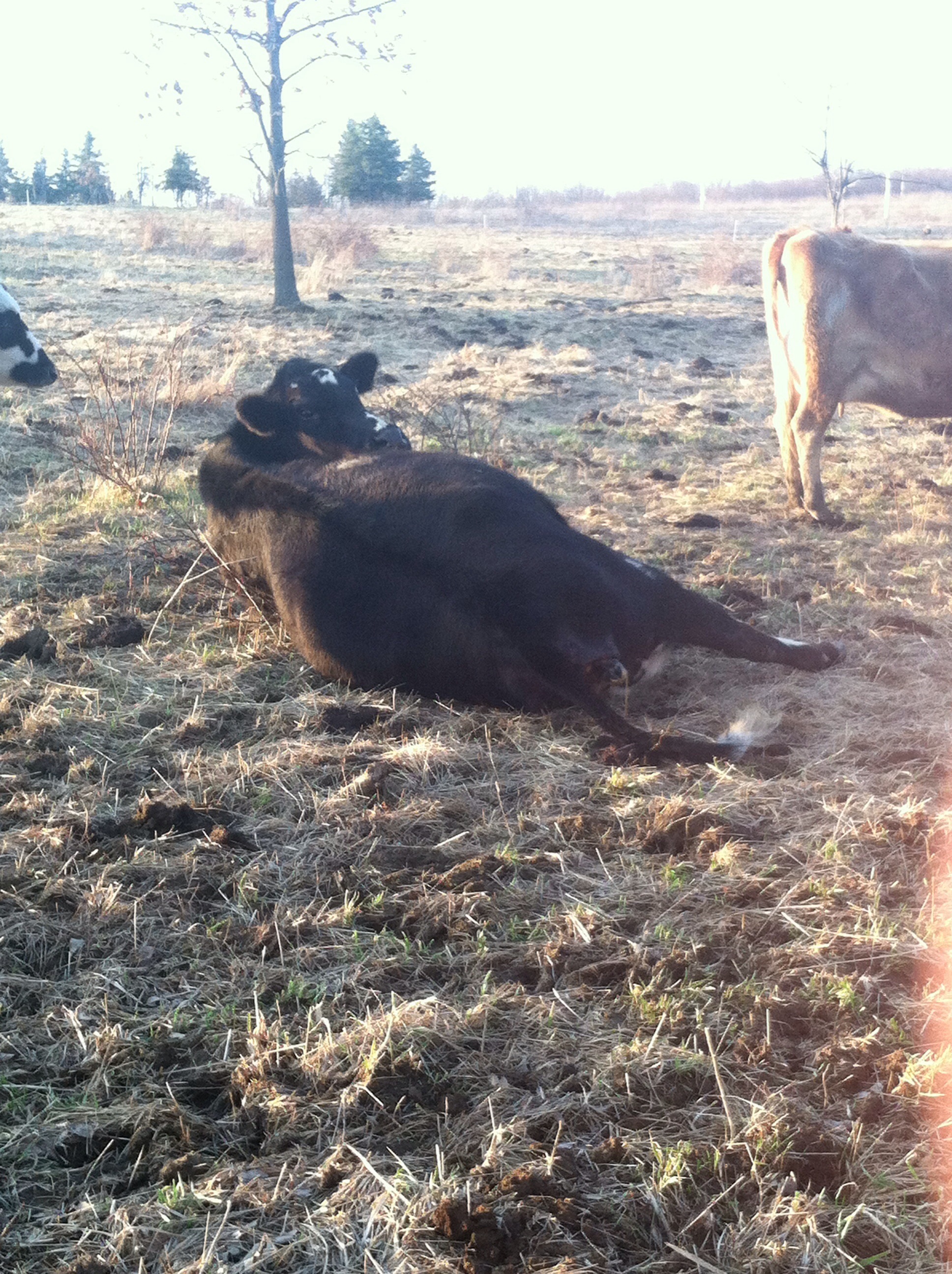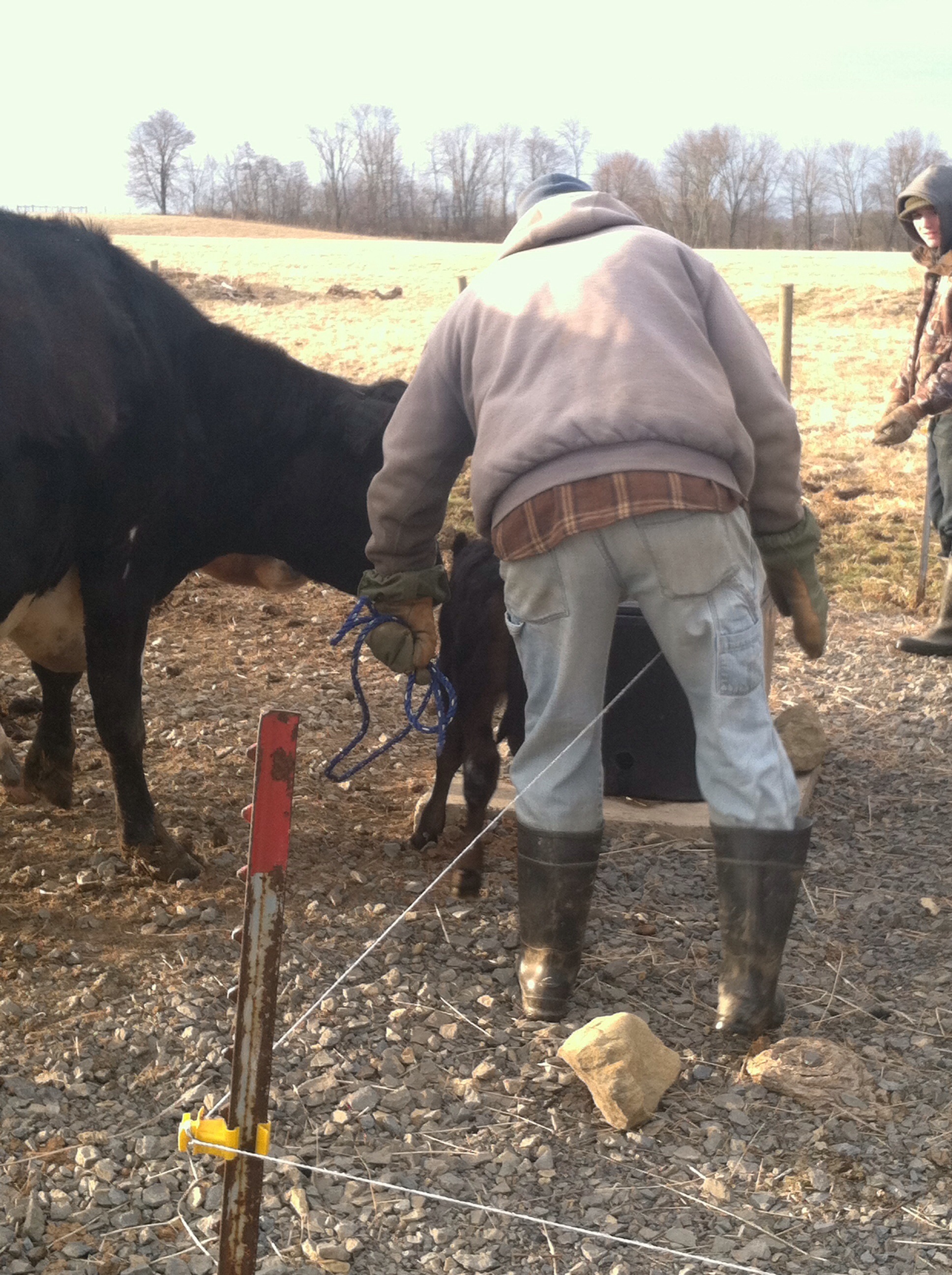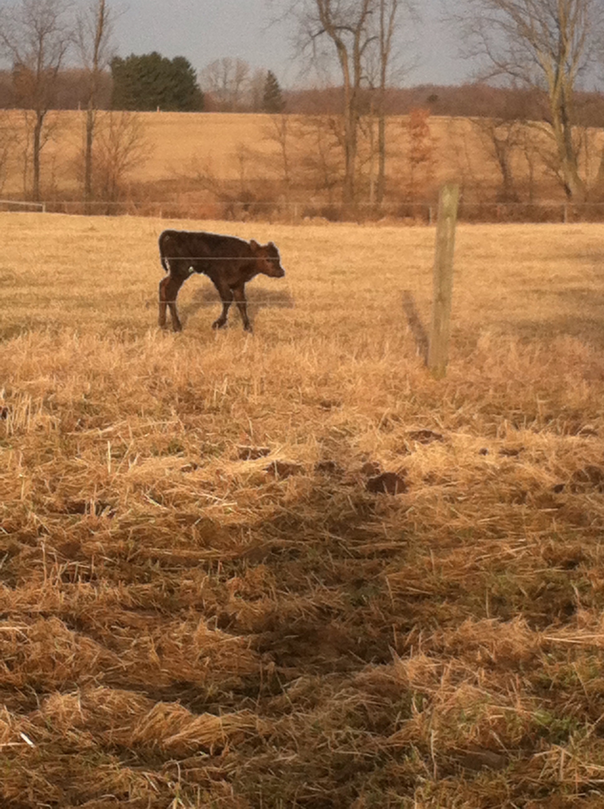 “ThomasJefferson” was born right before our eyes this evening! π (Click here to read about how we are naming our boys this year…) His mama is Disco. (Click here to read about her calf from last year.)
