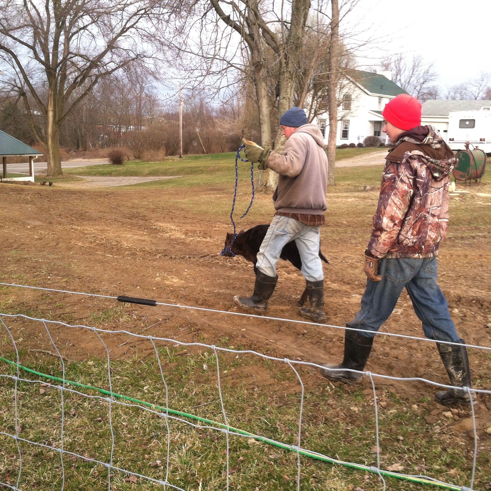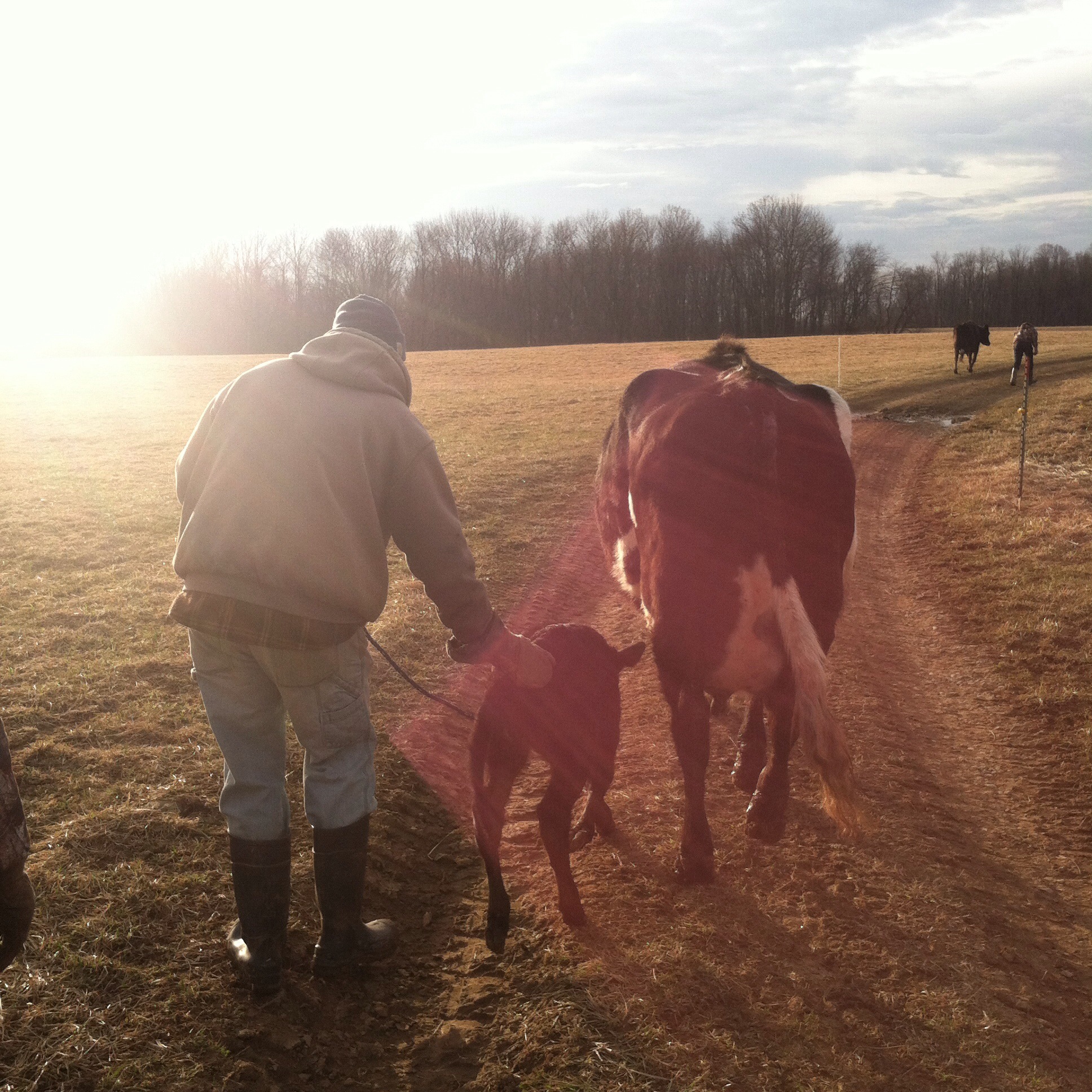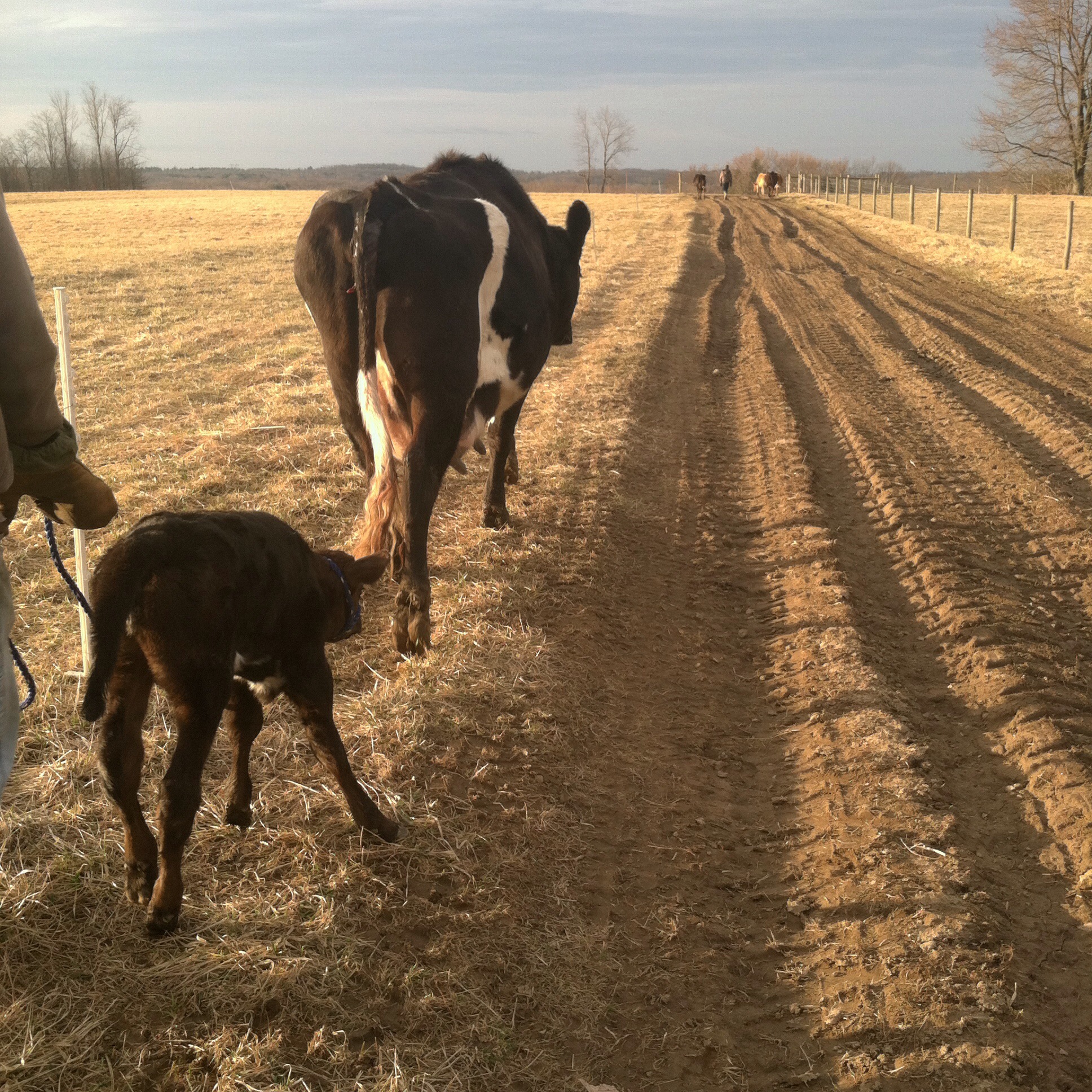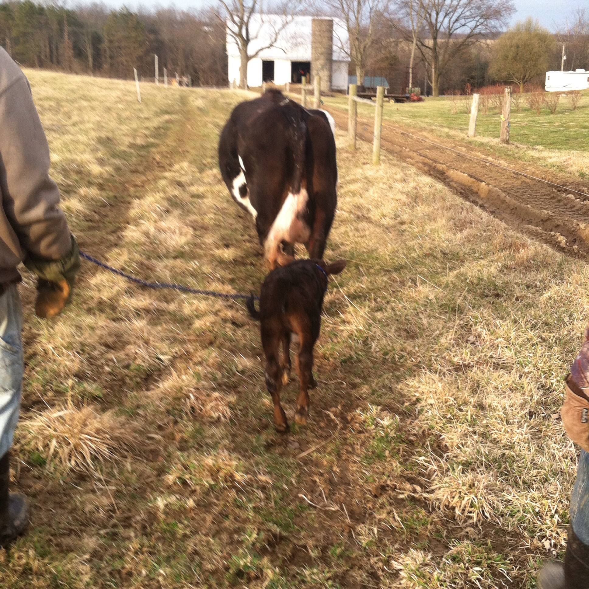 He’ll spend the night in the field with his mama and the rest of the dairy girls. It was too close to dark & we were just too tired to walk them down this evening. So tomorrow, I hope to add some more pictures to this post. π