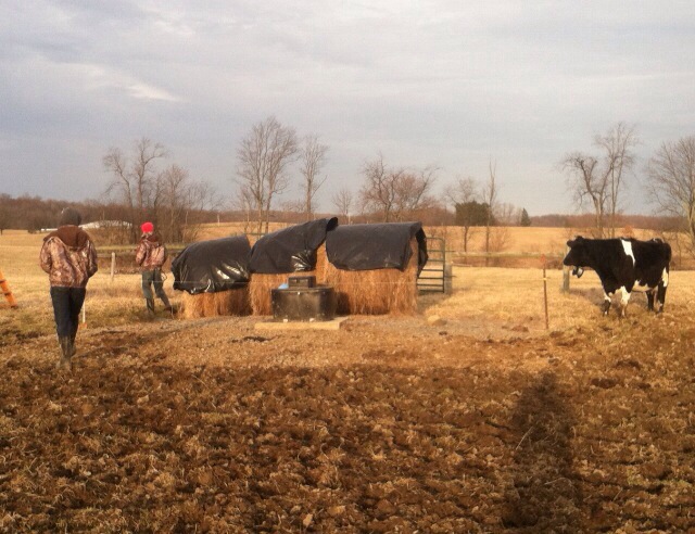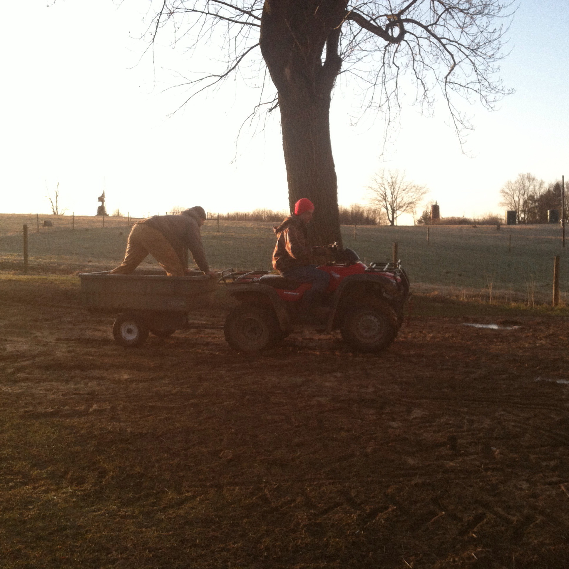 We were late in doing our afternoon calf check since we had double header baseball games all afternoon. Truthfully, all we wanted to do was get inside, thaw out, and eat, lol…BUT we also knew Disco was due a couple days ago, and kinda had some signs earlier this morning that today might be her day. Soooo, Mike & I headed up on the 4-wheeler to take a peek…