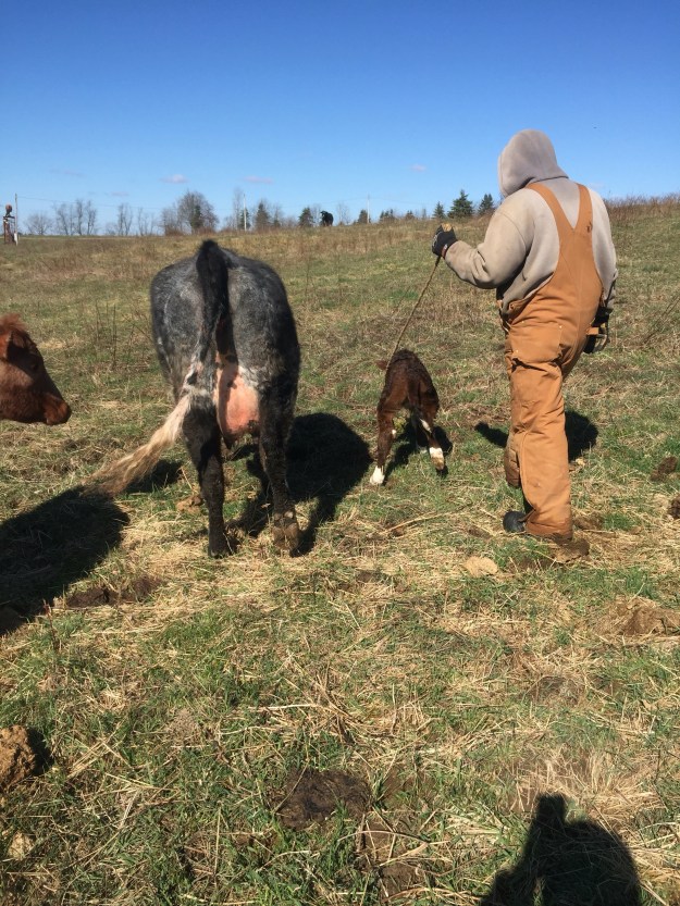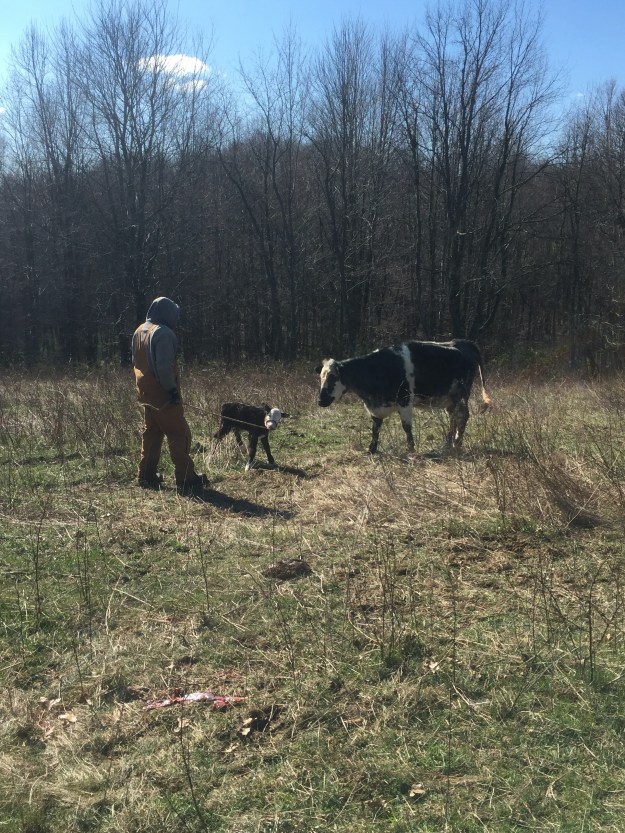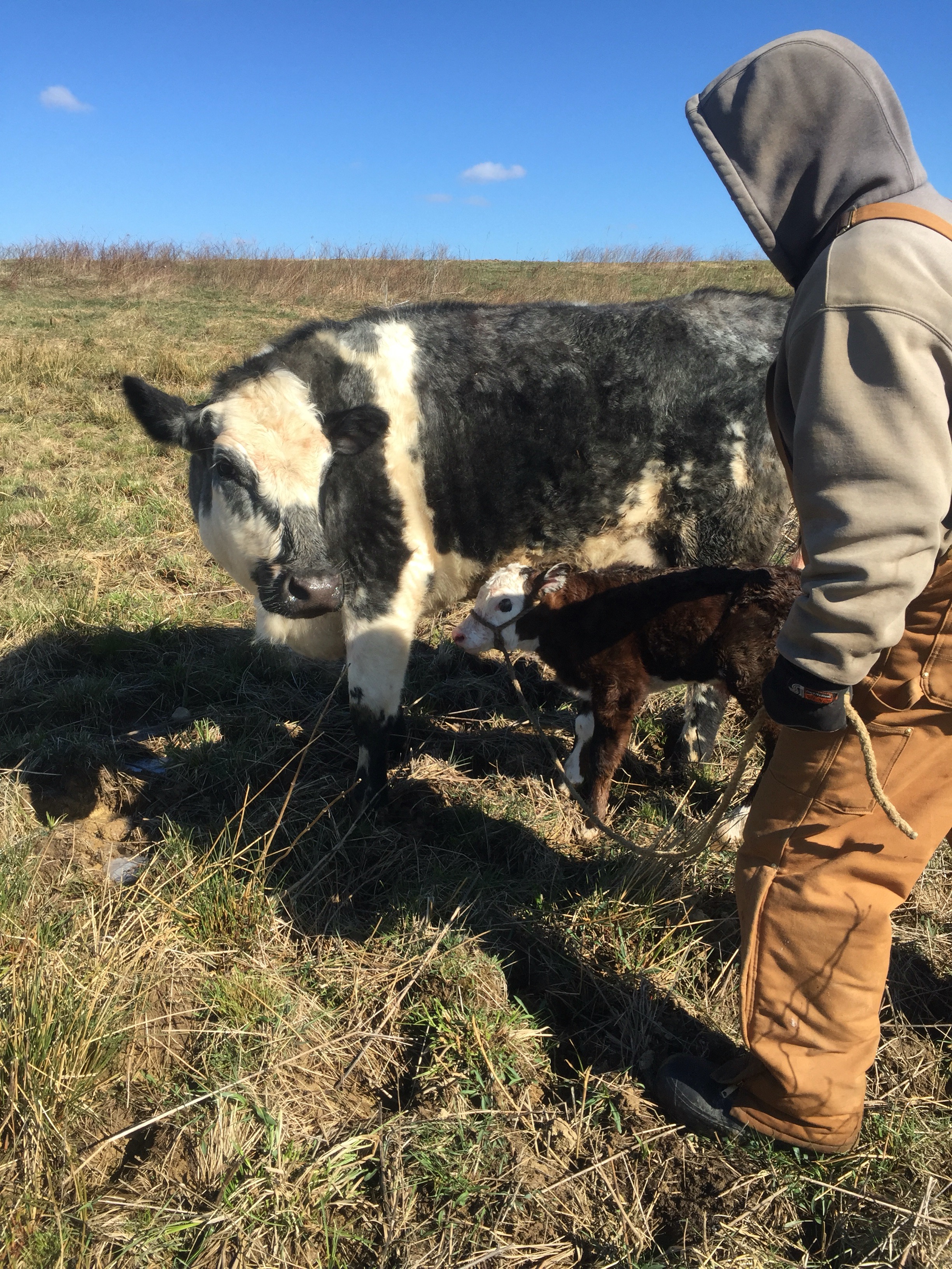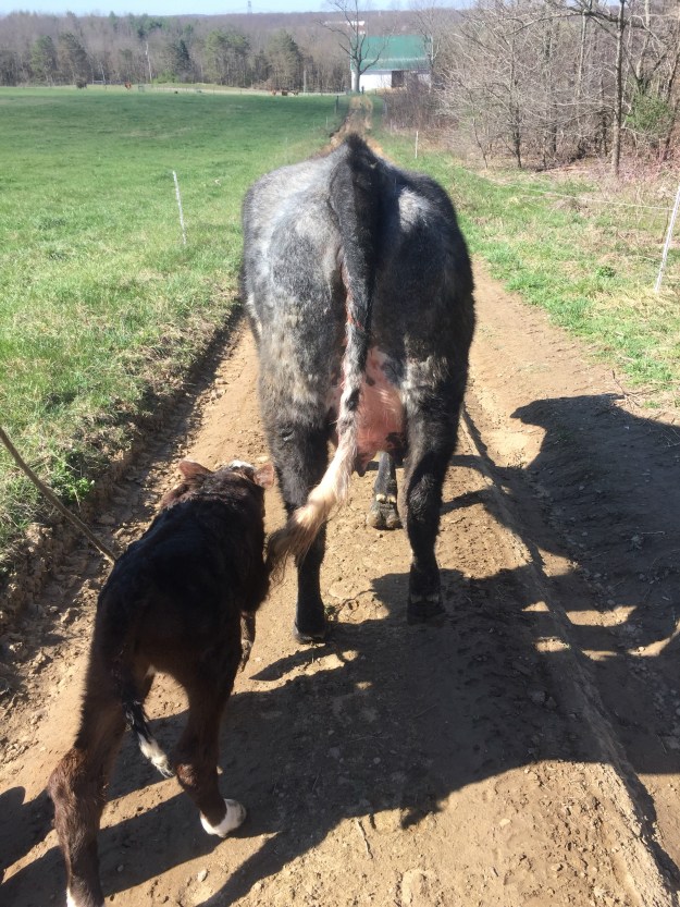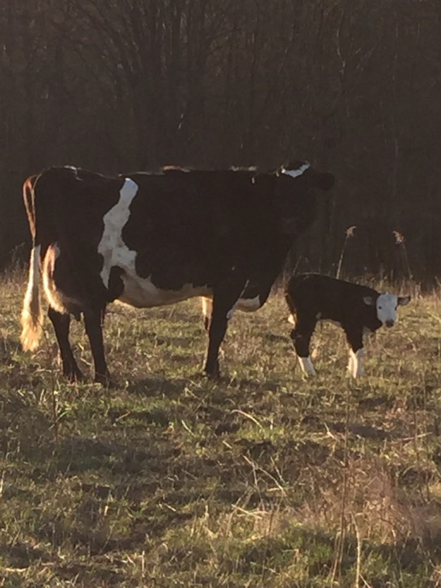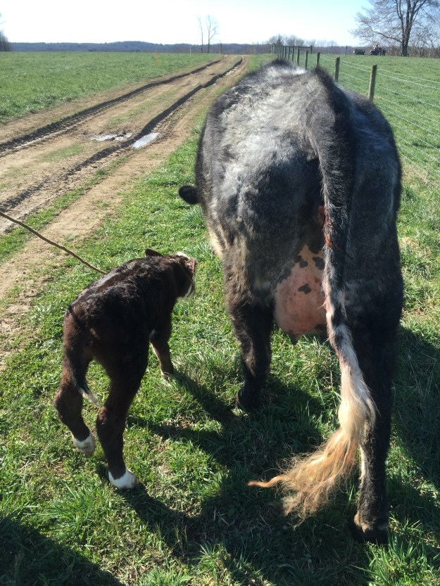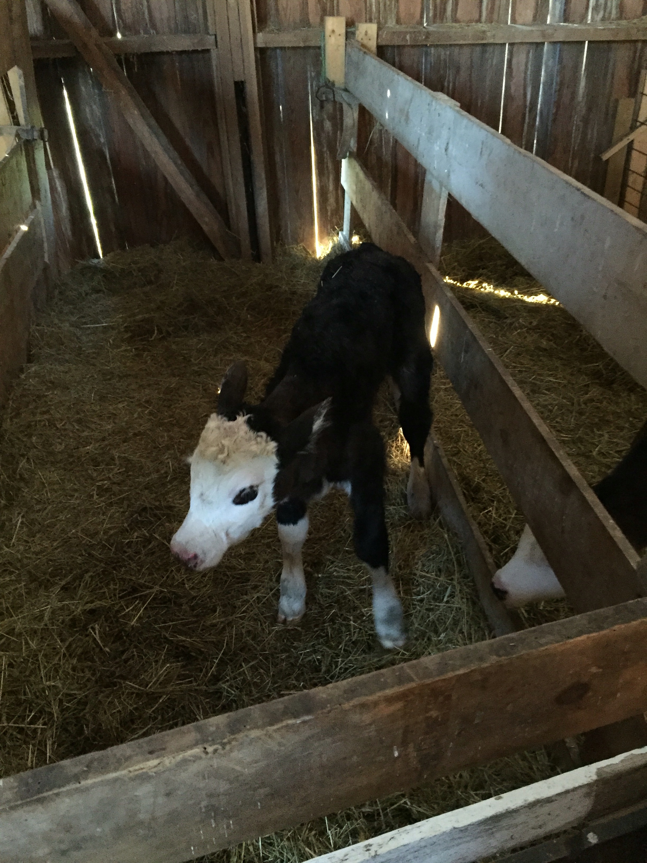 ScotchTape had Tic. {Click here to see her calf from last year.} We decided to leave Tac with her mama, Uno for now, since she was still getting cleaned up and eating. (Uno was our other new heifer to calve this year, and we are so grateful she had no issues and was doing such a great job taking care of Tac!ππΌ More about them further down in the post.)