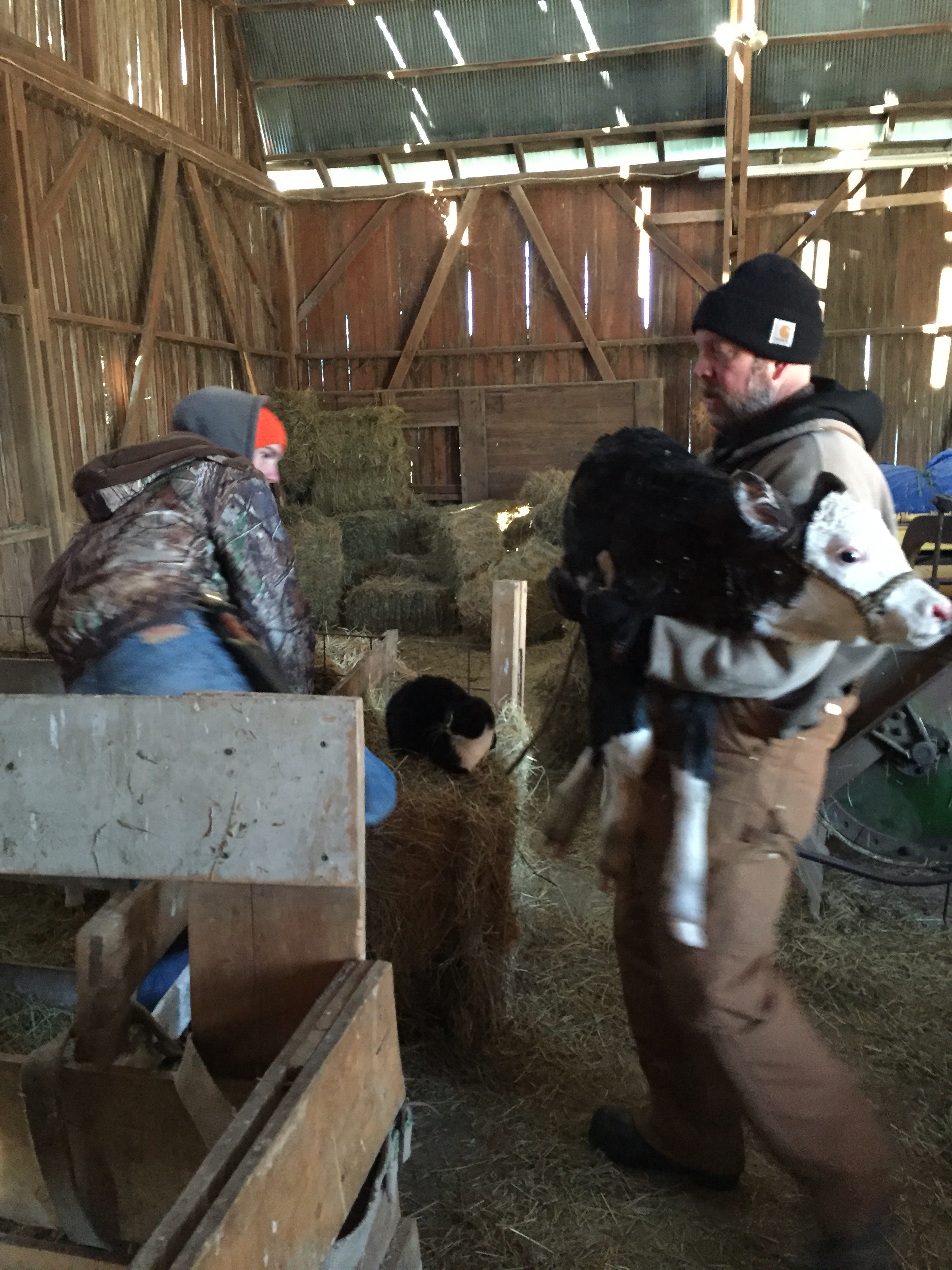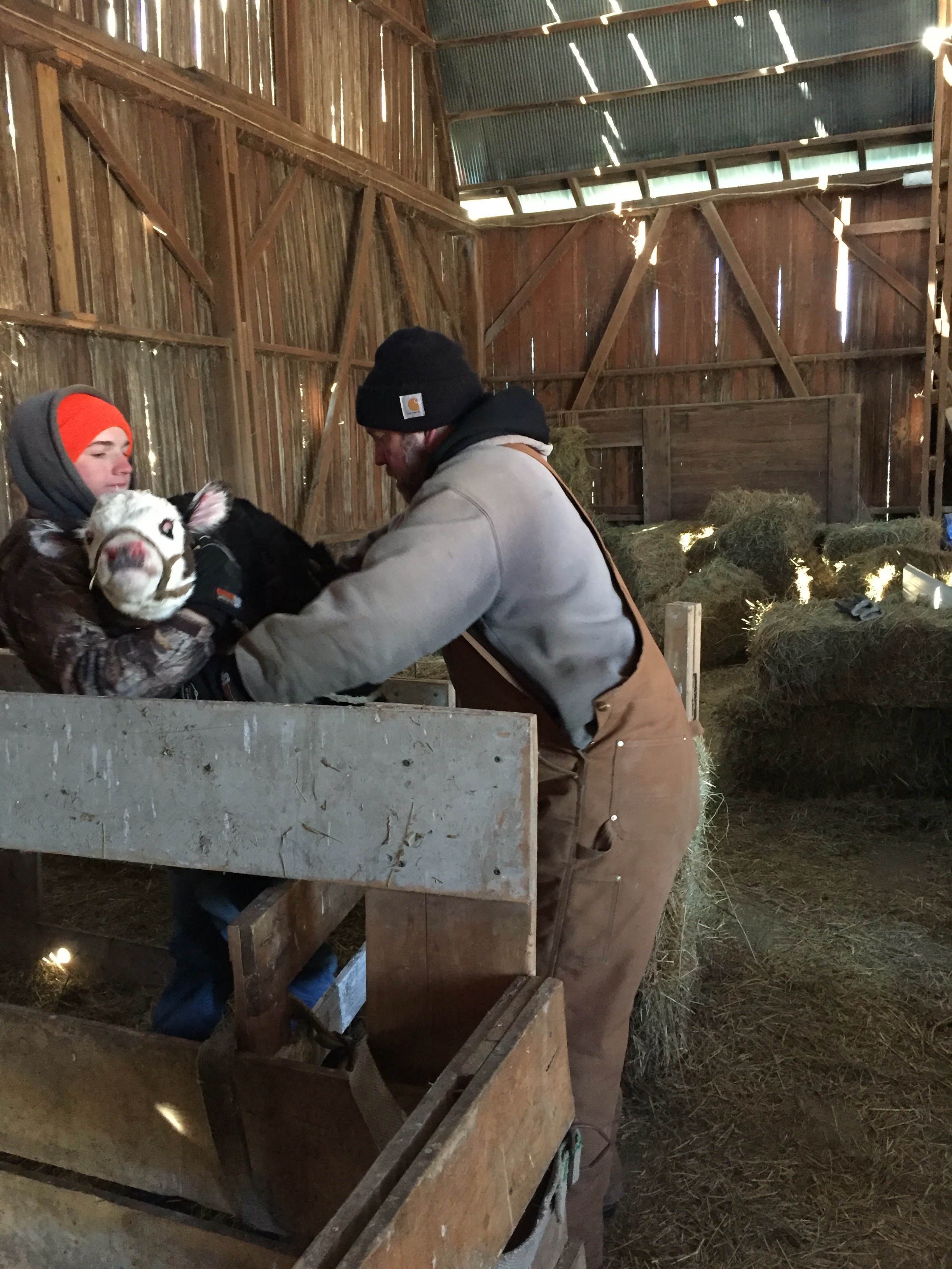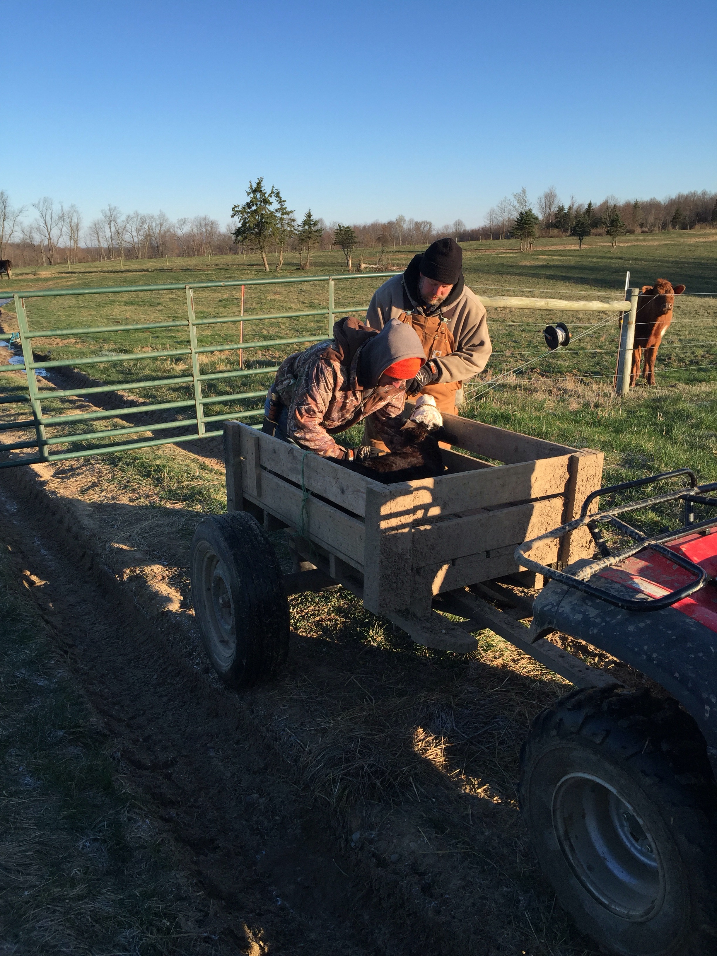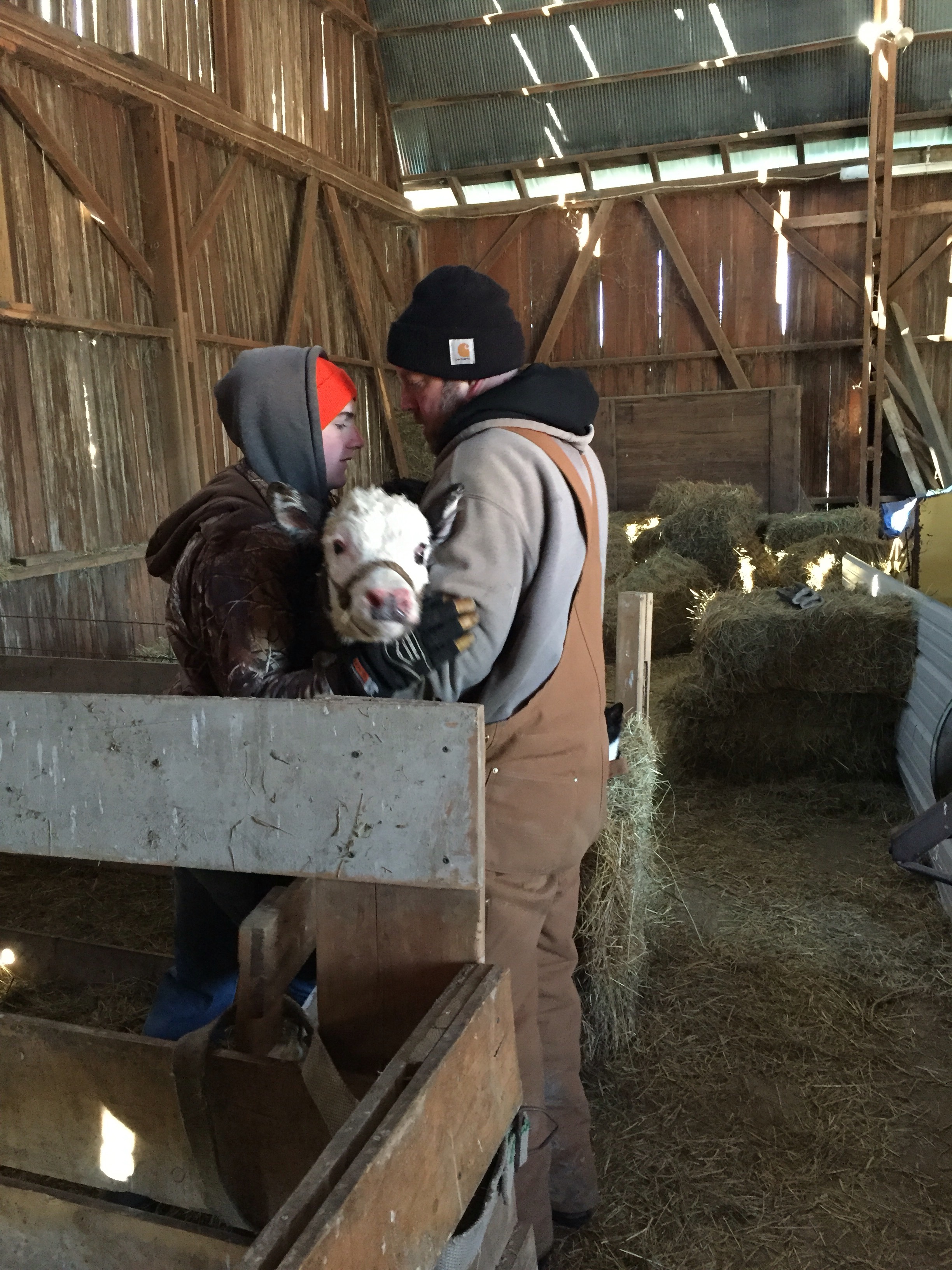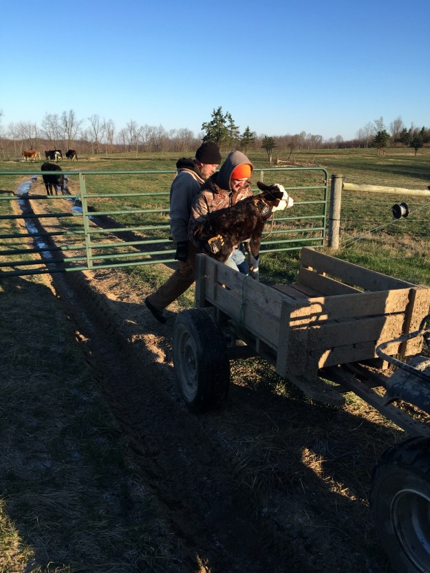 Once we were out of Mordor, we put Tic in the wagon and Paul drove her down with Mike. Even though ScotchTape is a “veteran mama”, she was taking FOREVER to lead Tic down to the barn. We wanted to speed things up a bit because it was: COLD.π (Tic is also HUGE, lol, so I was glad Michael helped with lifting her to Mike.πͺπΌ)