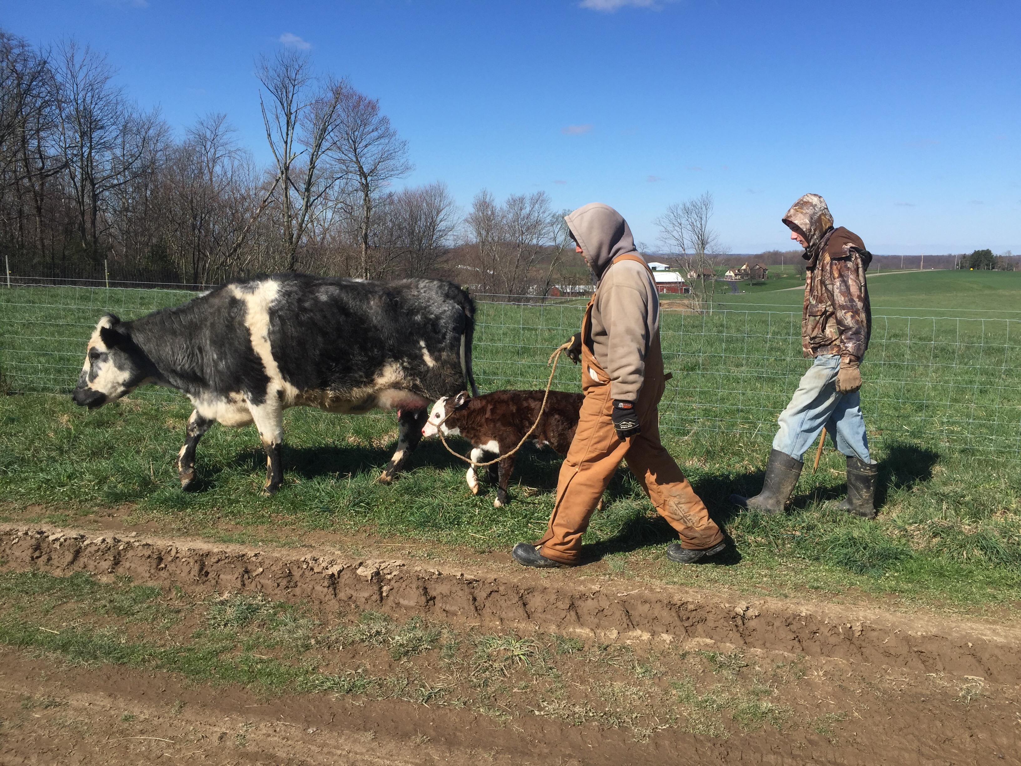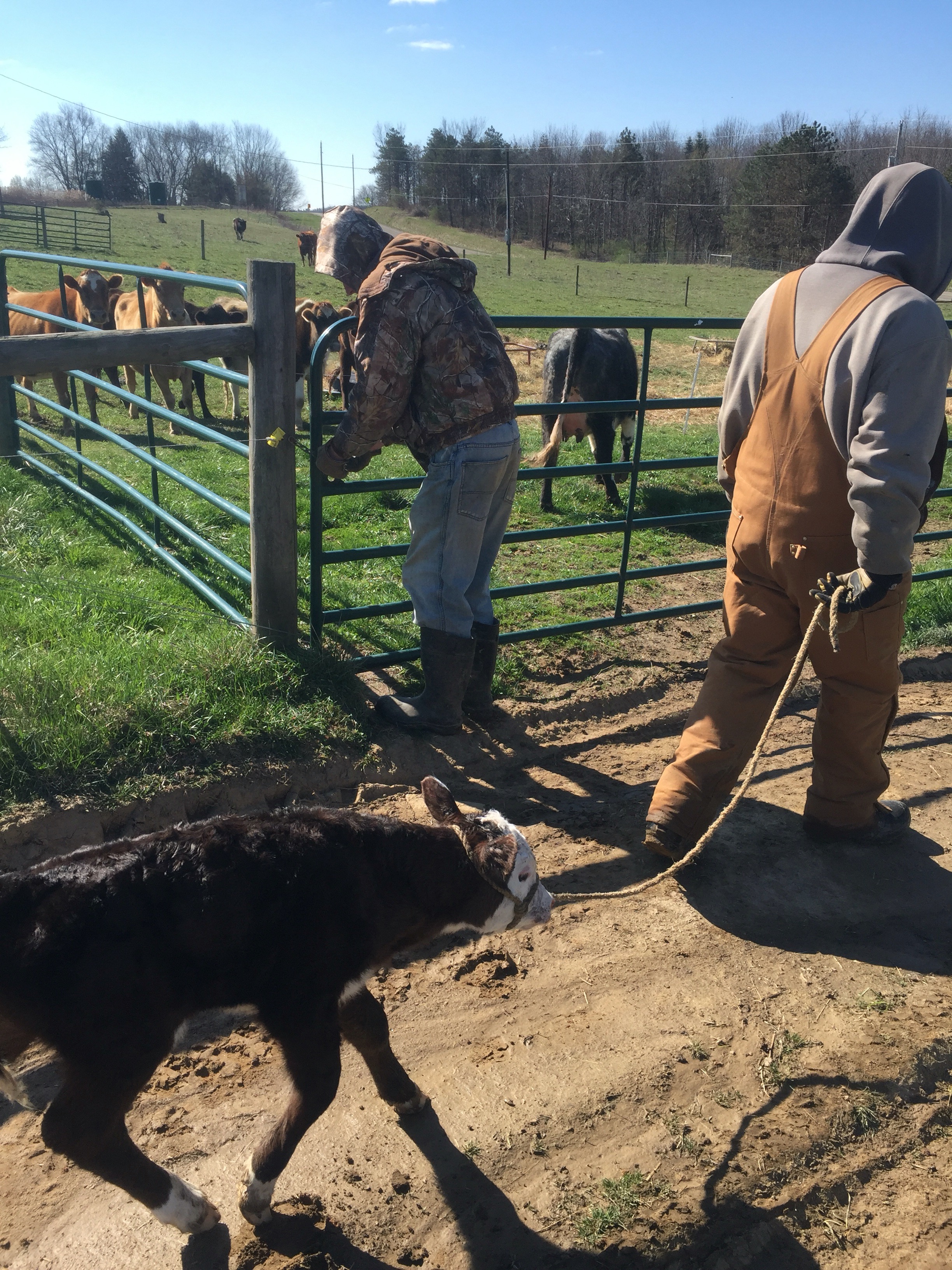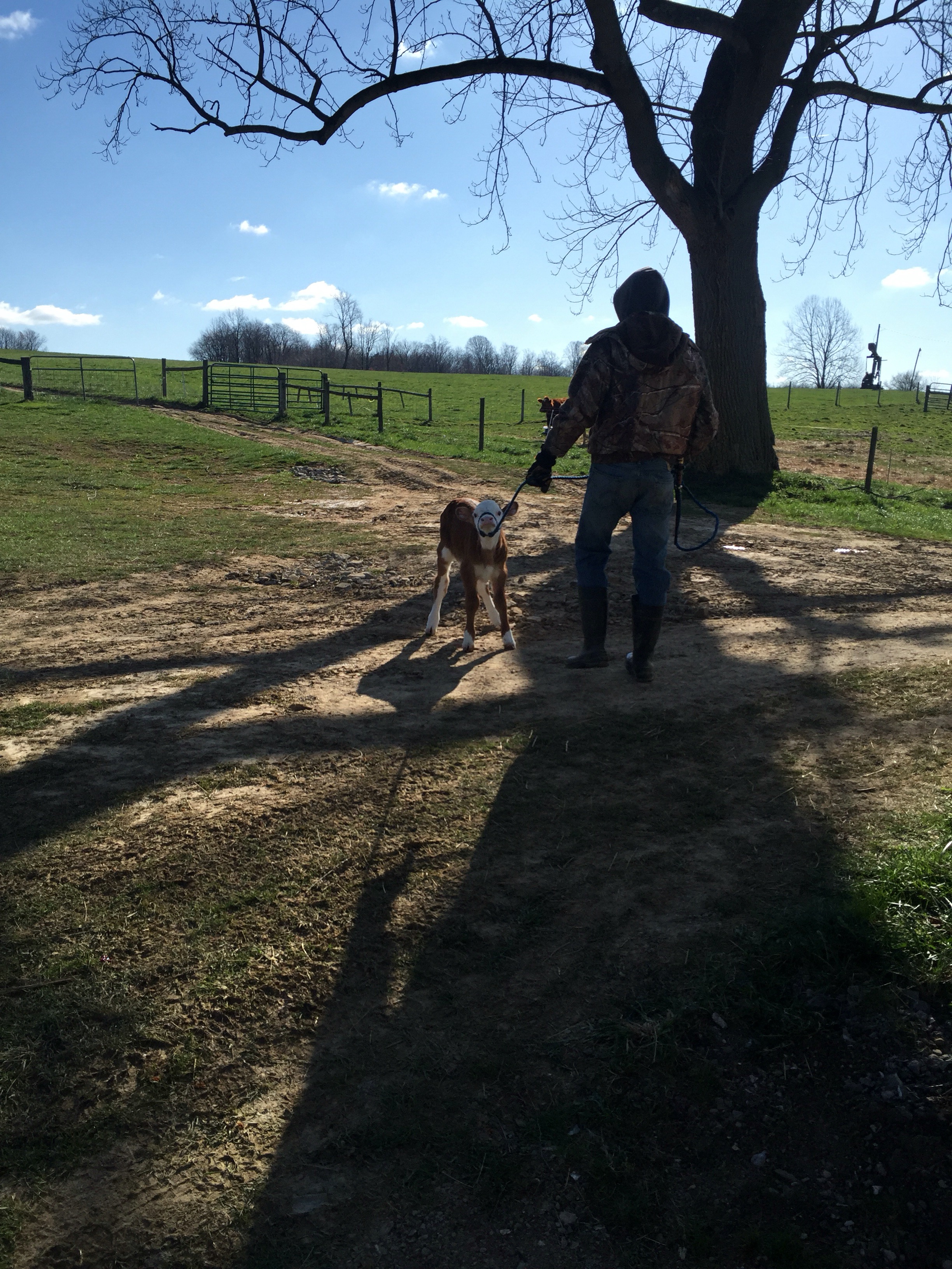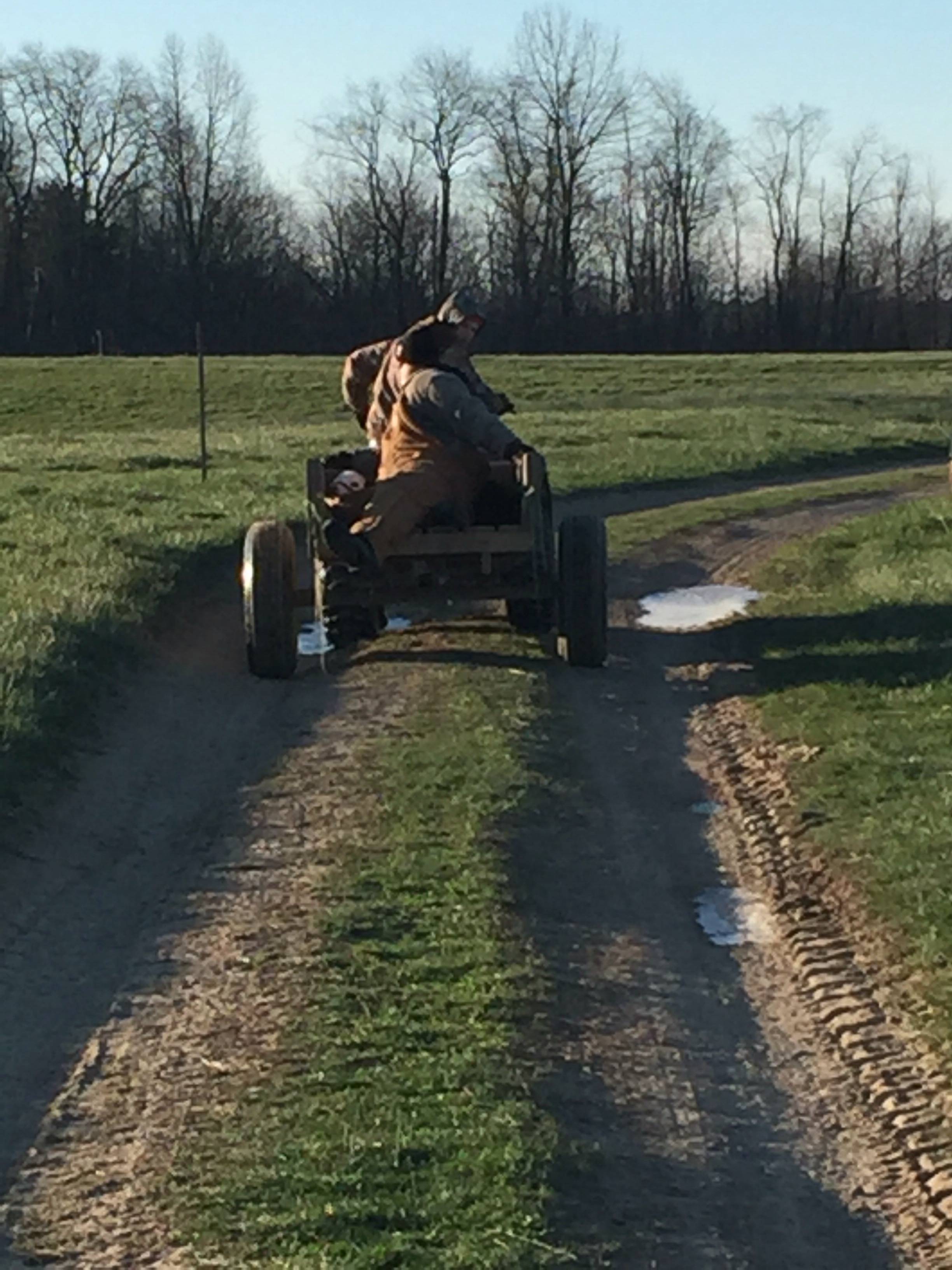 Once we were out of Mordor, we put Tic in the wagon and Paul drove her down with Mike. Even though ScotchTape is a “veteran mama”, she was taking FOREVER to lead Tic down to the barn. We wanted to speed things up a bit because it was: COLD.π (Tic is also HUGE, lol, so I was glad Michael helped with lifting her to Mike.πͺπΌ)