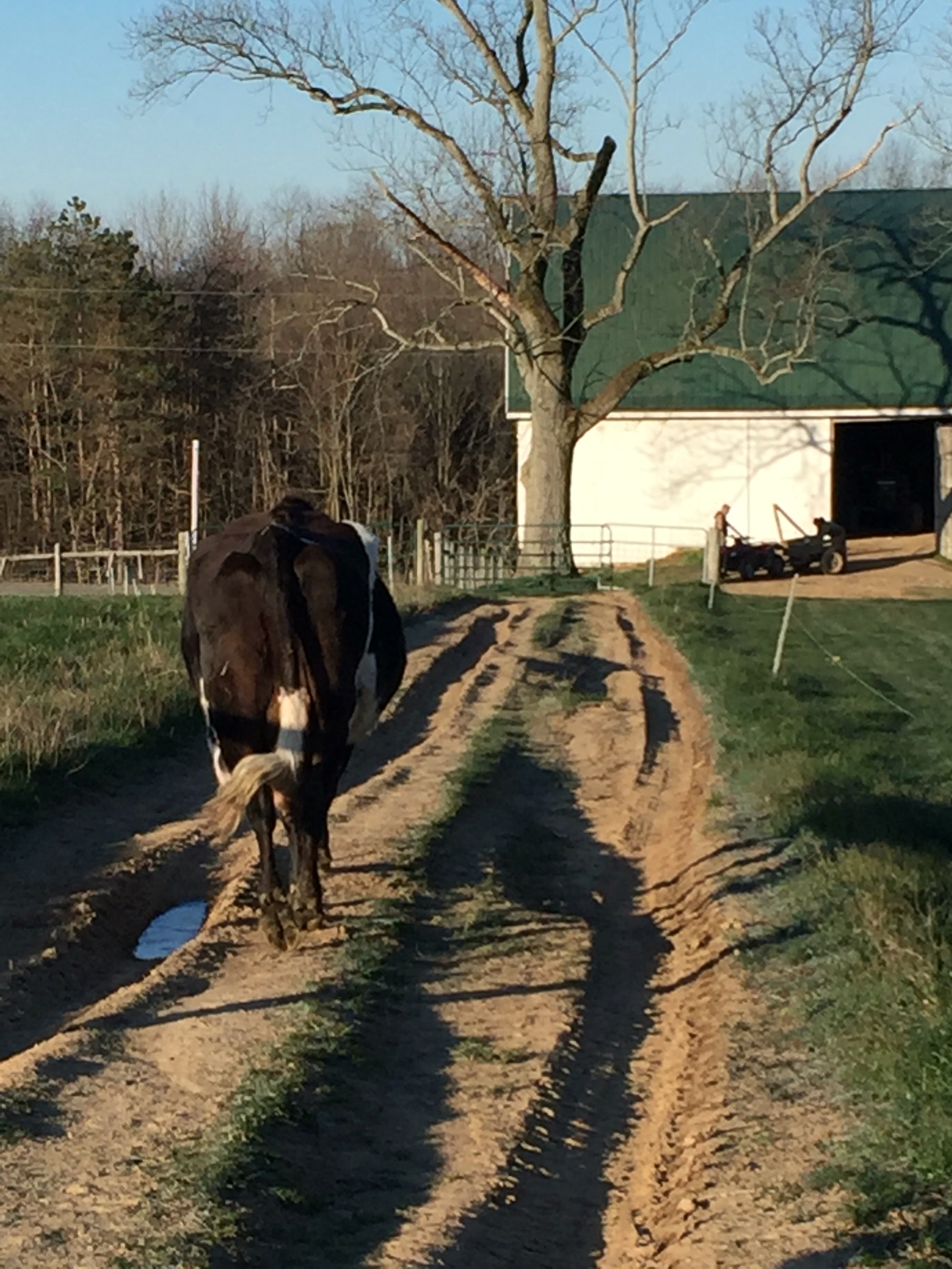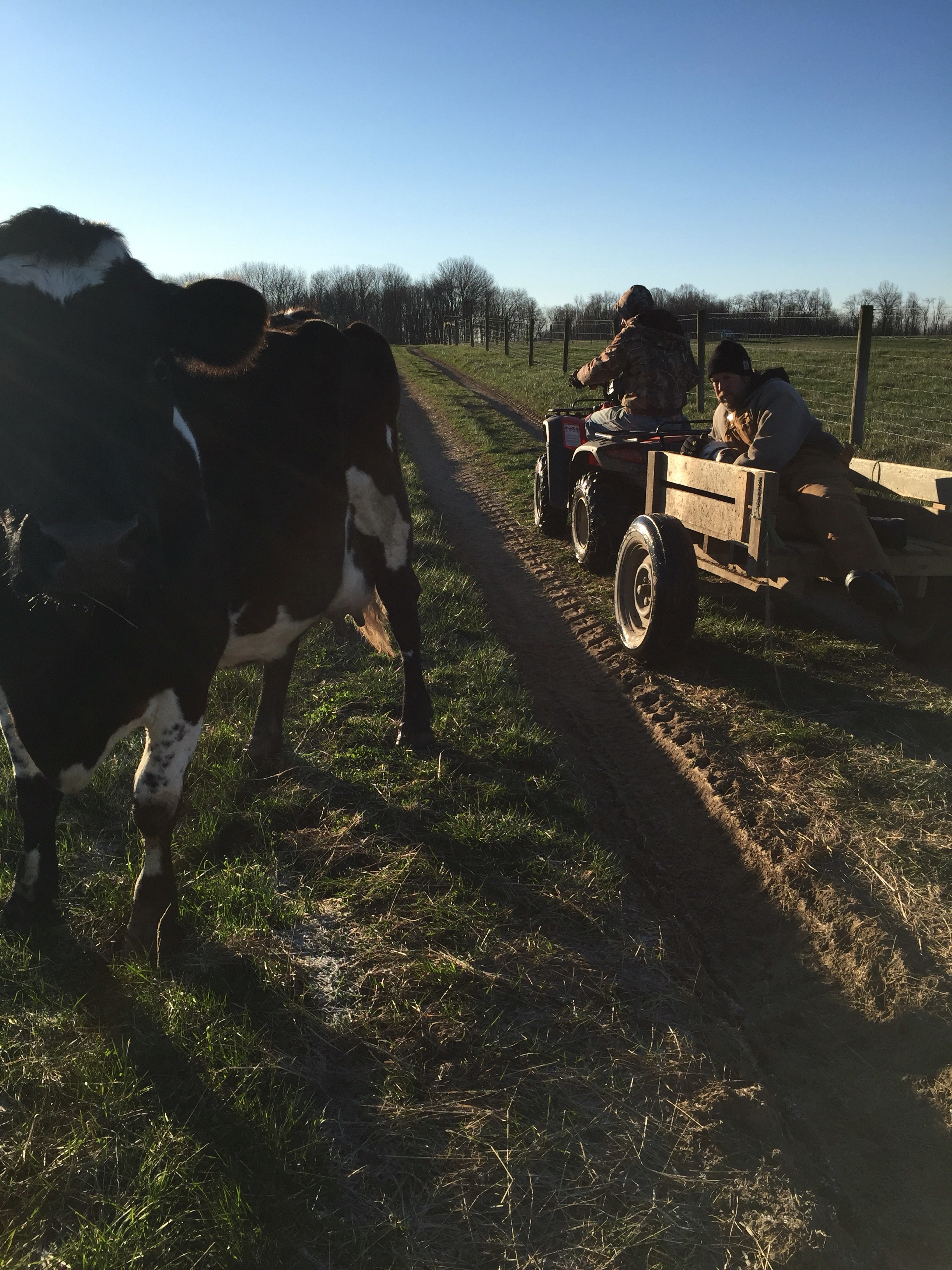 After we milked, we moved Natasha, Harriet, and Hope over to our barnyard to join the other 3.