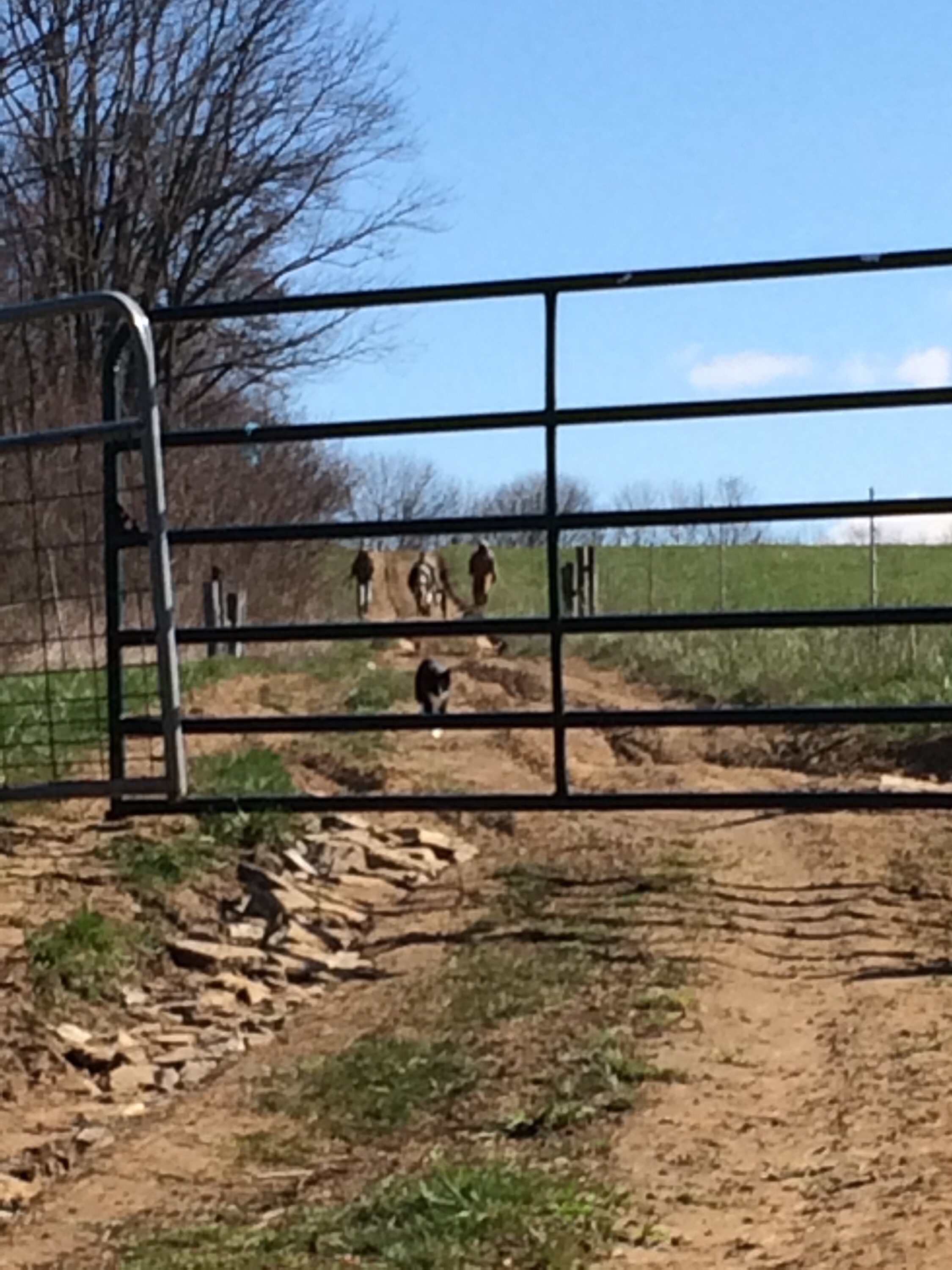 (Couldn’t resist putting this pic in. Michael was down at the barn first and took this watching us coming down. Blake-the-cat was leading the parade, lol. This 10-year-old barn cat is always cracking us up!ππ)