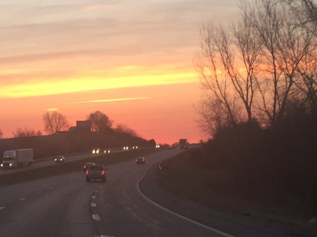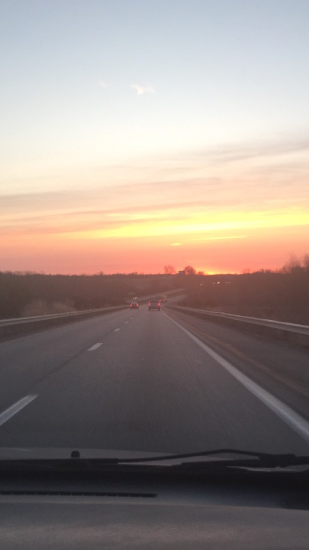 The trip back home…🚙 We were on the road early since Aunt Jenny had to leave before 5 to get to the airport. Always love catching the sunrise!🌅