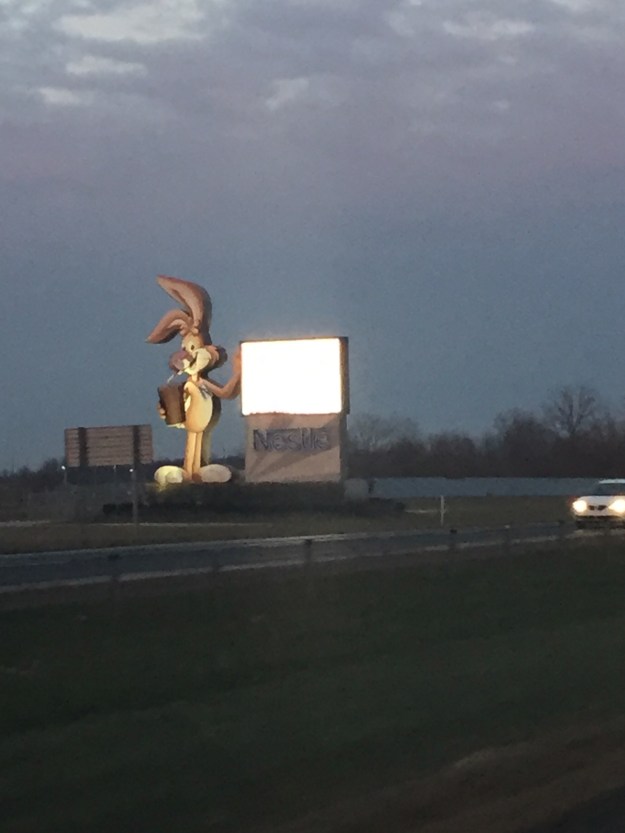 Passed by a Nestle plant, and snapped a pic…because it’s not everyday you see a giant Bugs Bunny on the side of the highway, lol…😂