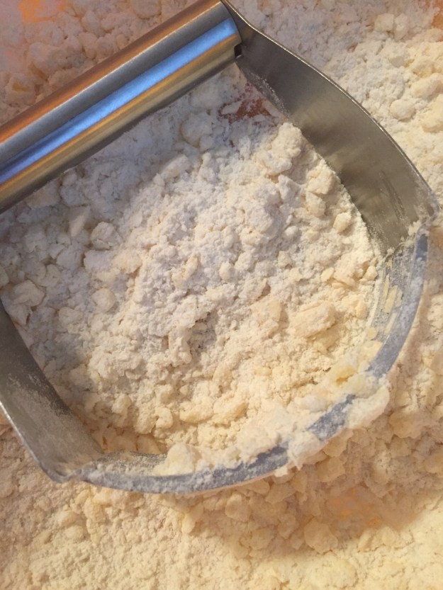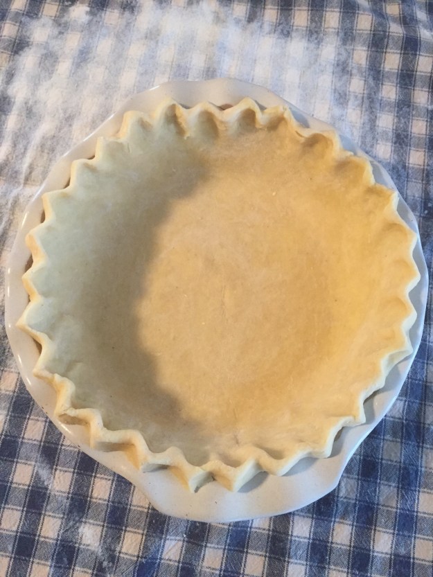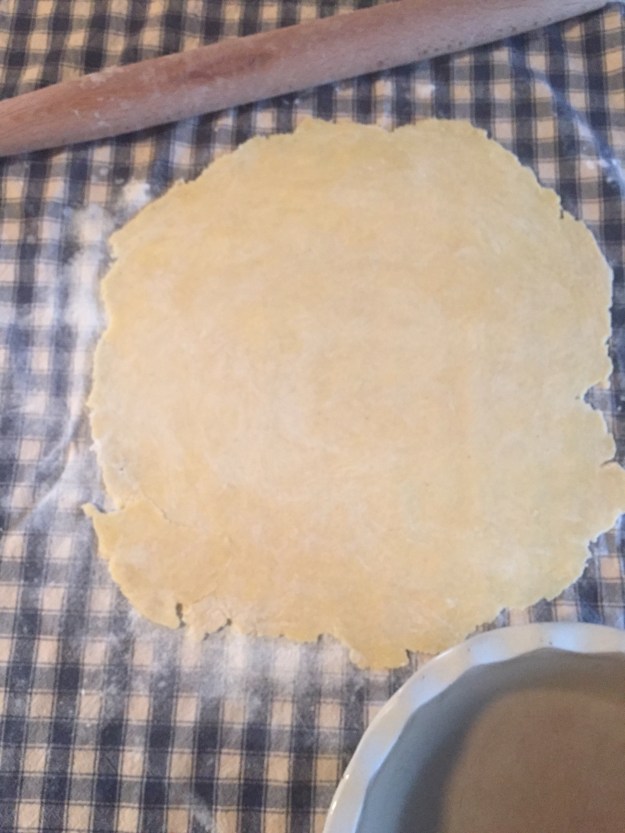 For it, I added 140g of unbleached flour to 4g of sea salt + 78g of butter and used my pastry blender to pulse it up. Added 2.5T cold water and blended it a bit more until it formed a ball. Rolled it out and formed my crust.
