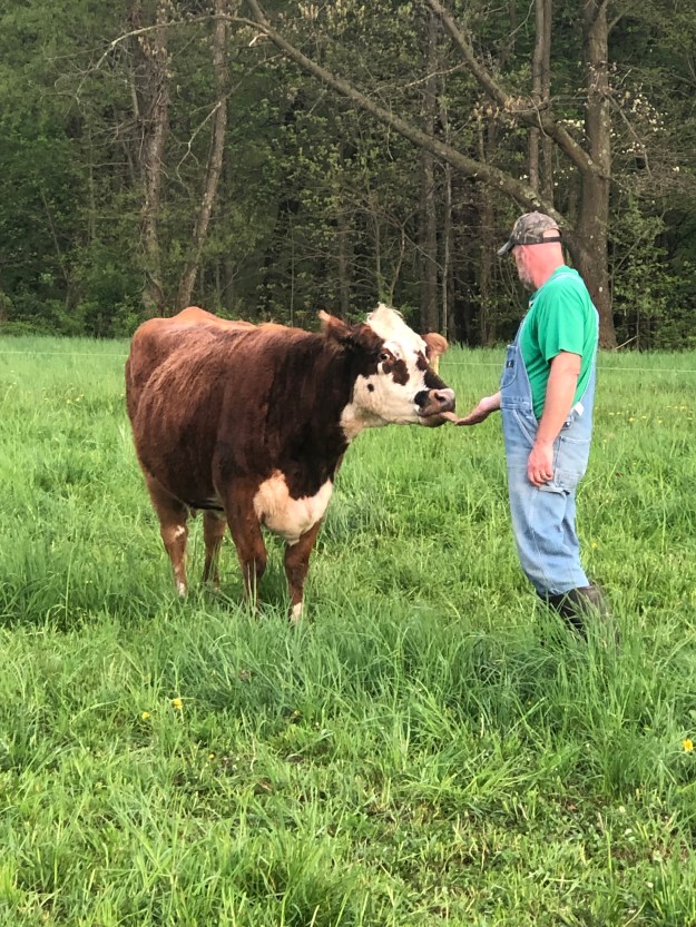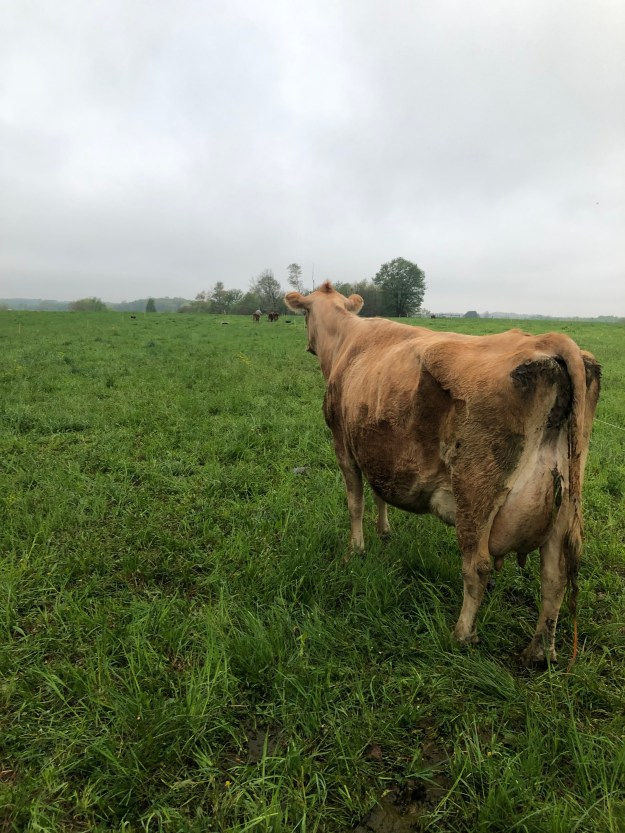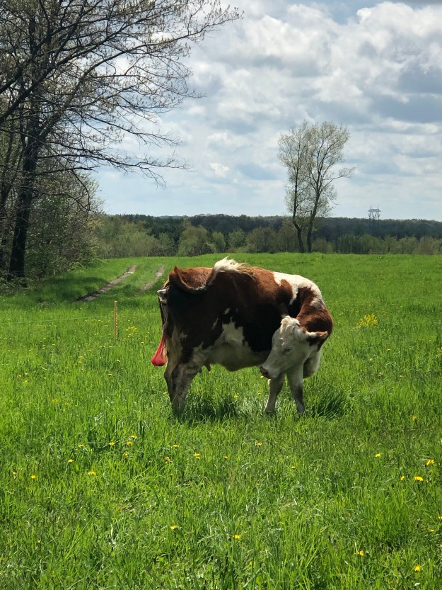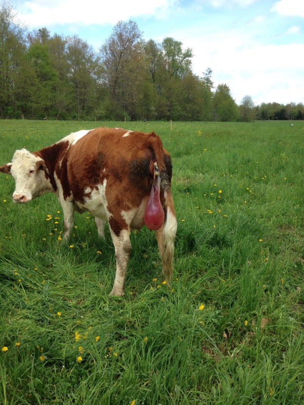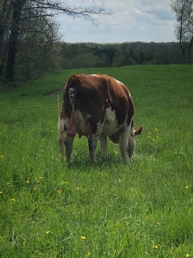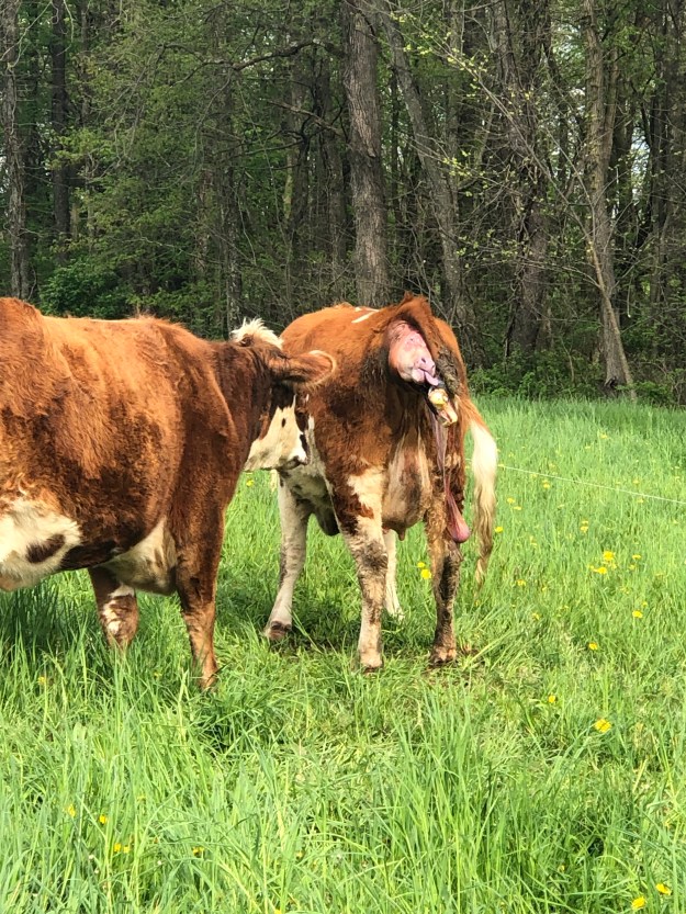 And she didn’t want Mike to help speed things up! The other 2 heifers: Peggy & Nat, came over to throw some interference, lol…😂