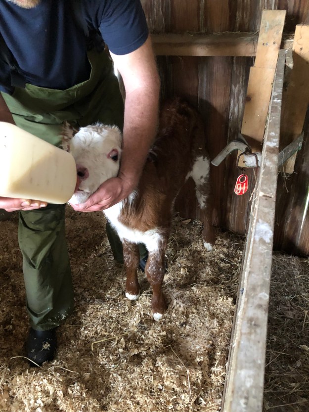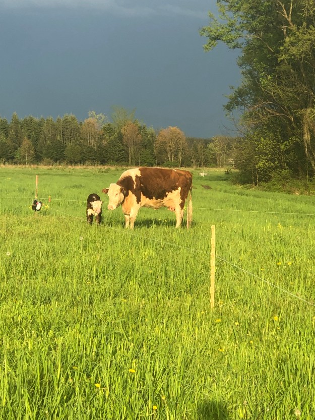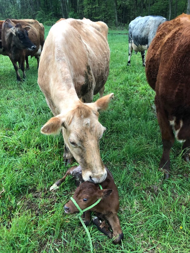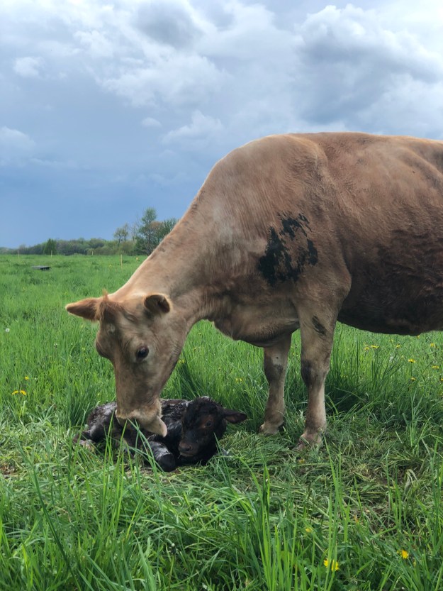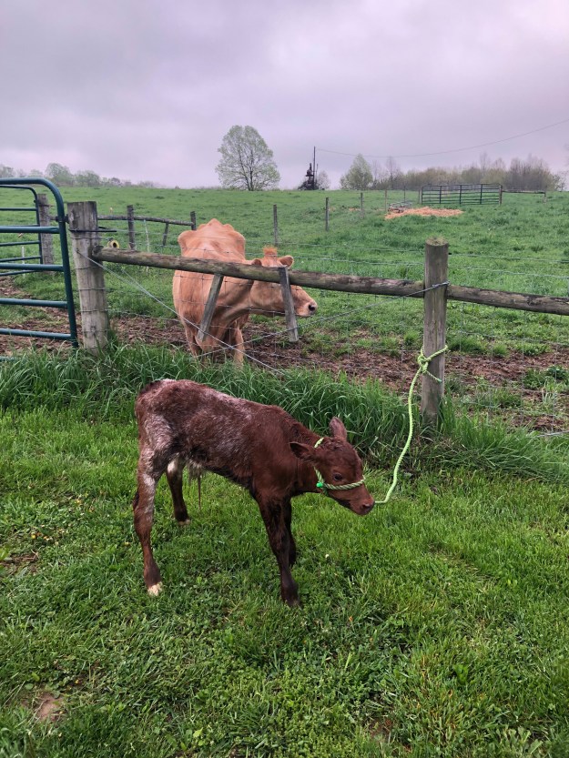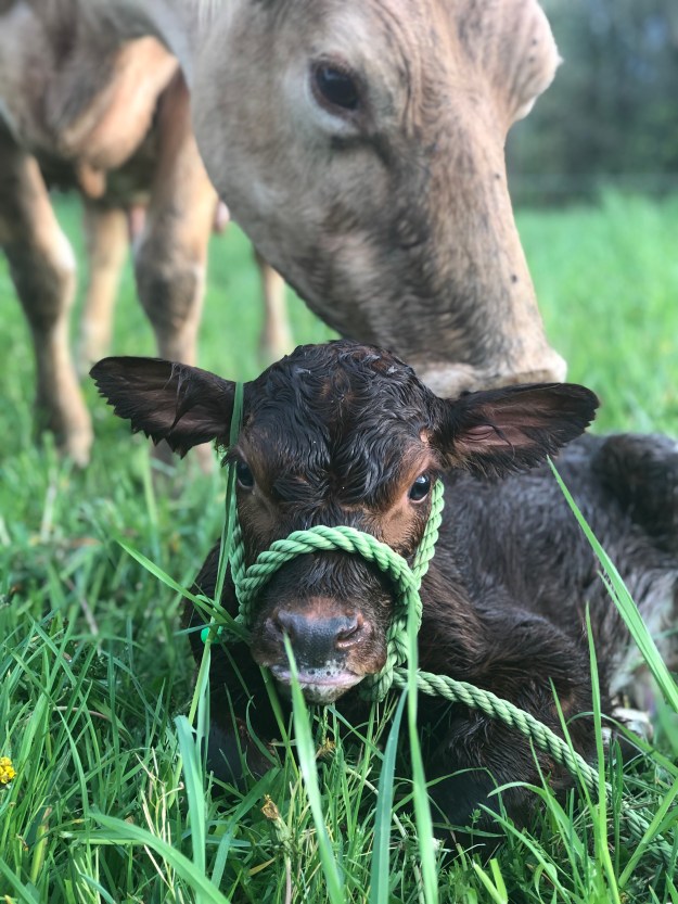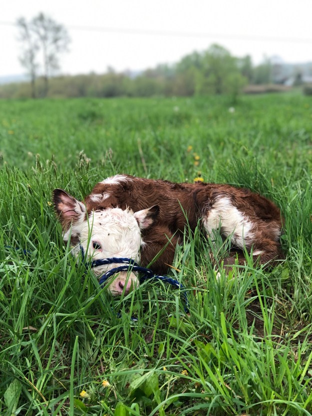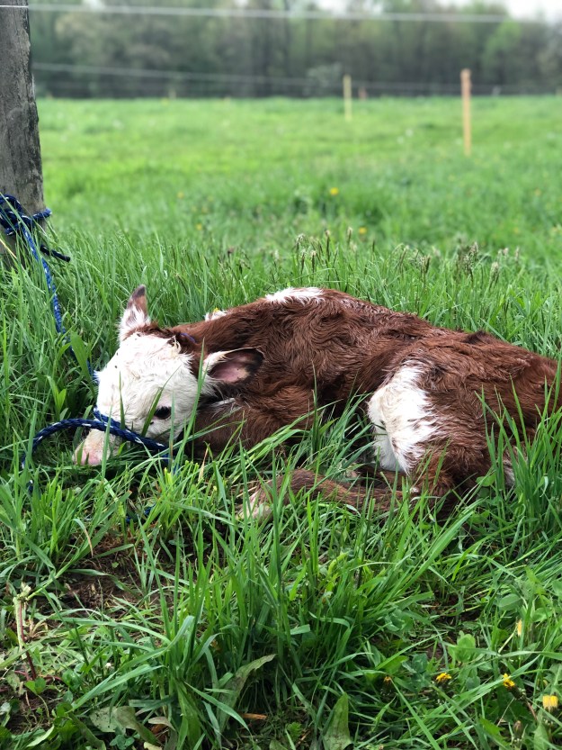 It’s a boy! This is Ruby’s first calf for us. [Click here to read about when Ruby was born.] His name is Boy-o. A name from a movie my boys have memorized lines from. Kind of fun to attach it to a calf now, lol.😂