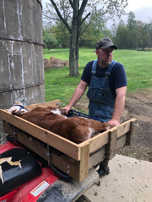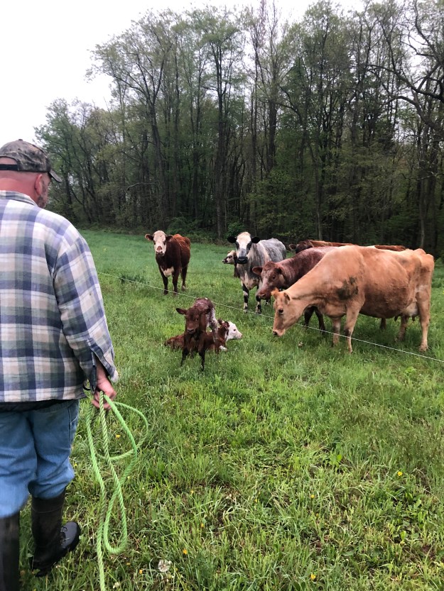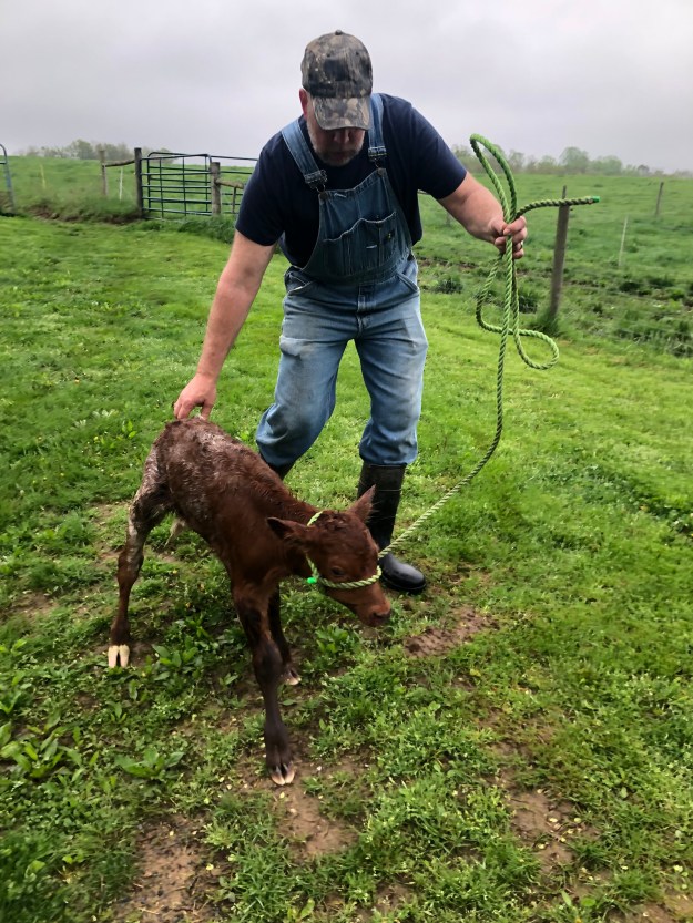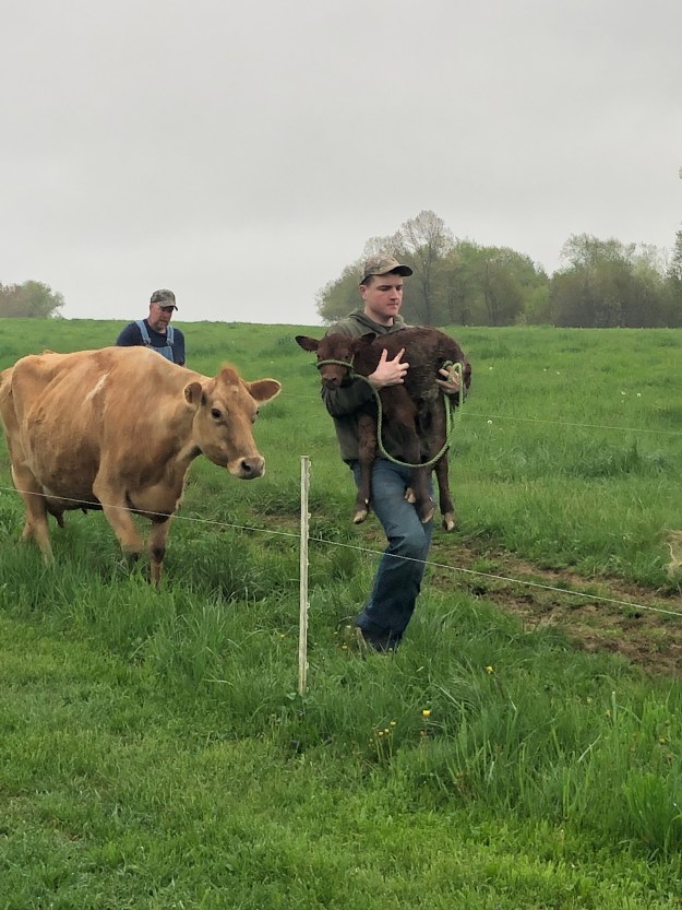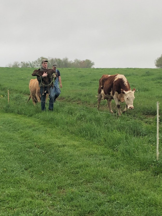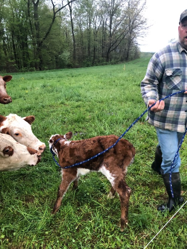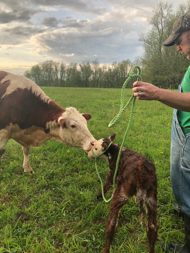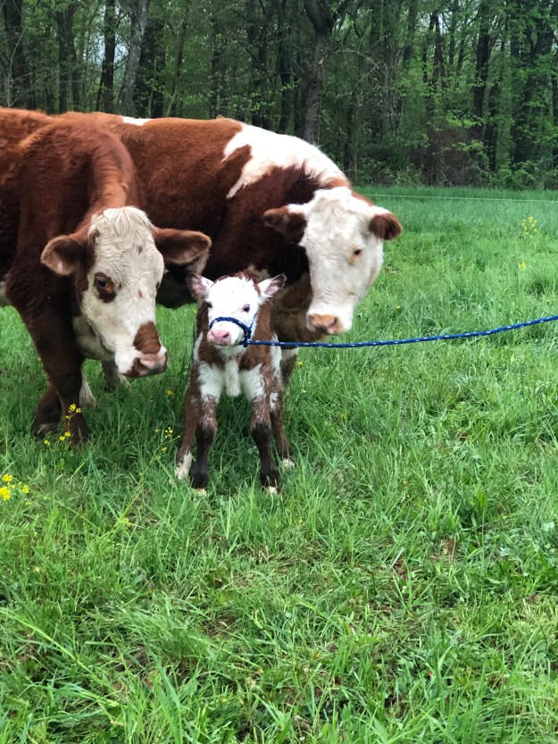 Then Mike took Jarjar from me, and walked him with Gluey & Ruby toward the barn. At this point, BOTH mamas thought Jarjar was their calf, lol.🙄