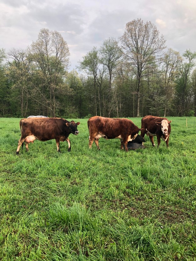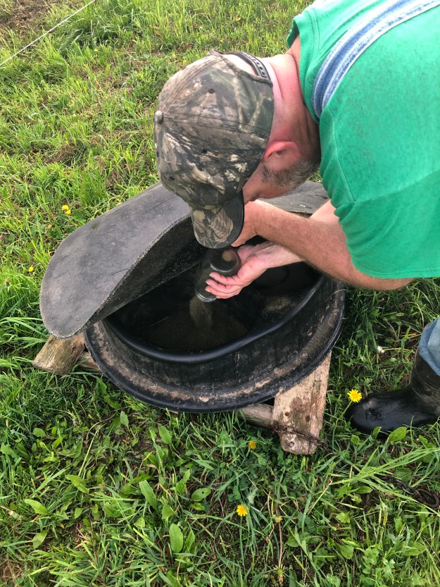 Mike decided to add some kelp and DE to the girls’ mineral feeder in hopes of diverting their attention from the two new additions. Perhaps then the calves could bond more with their mamas in peace.😉