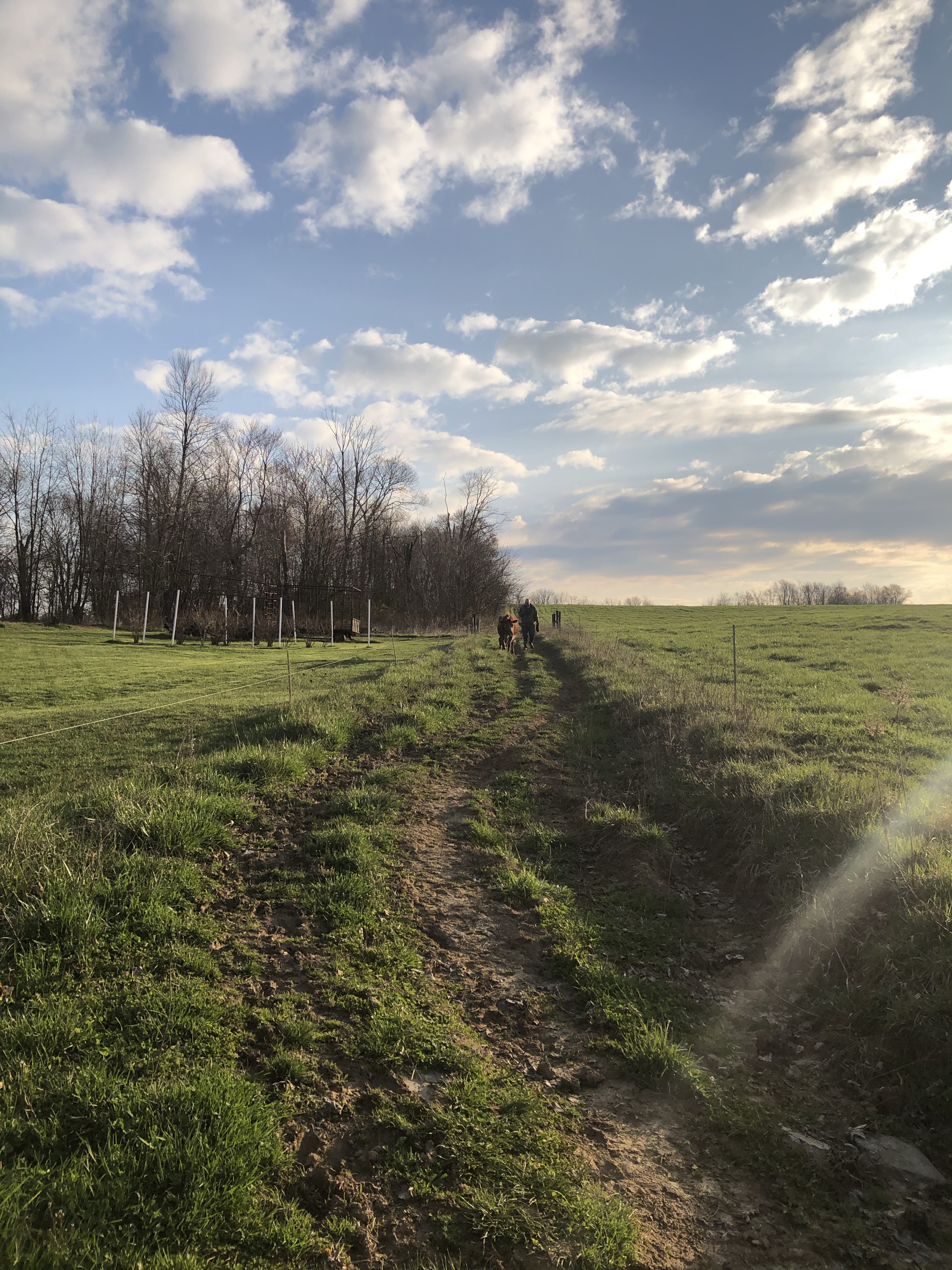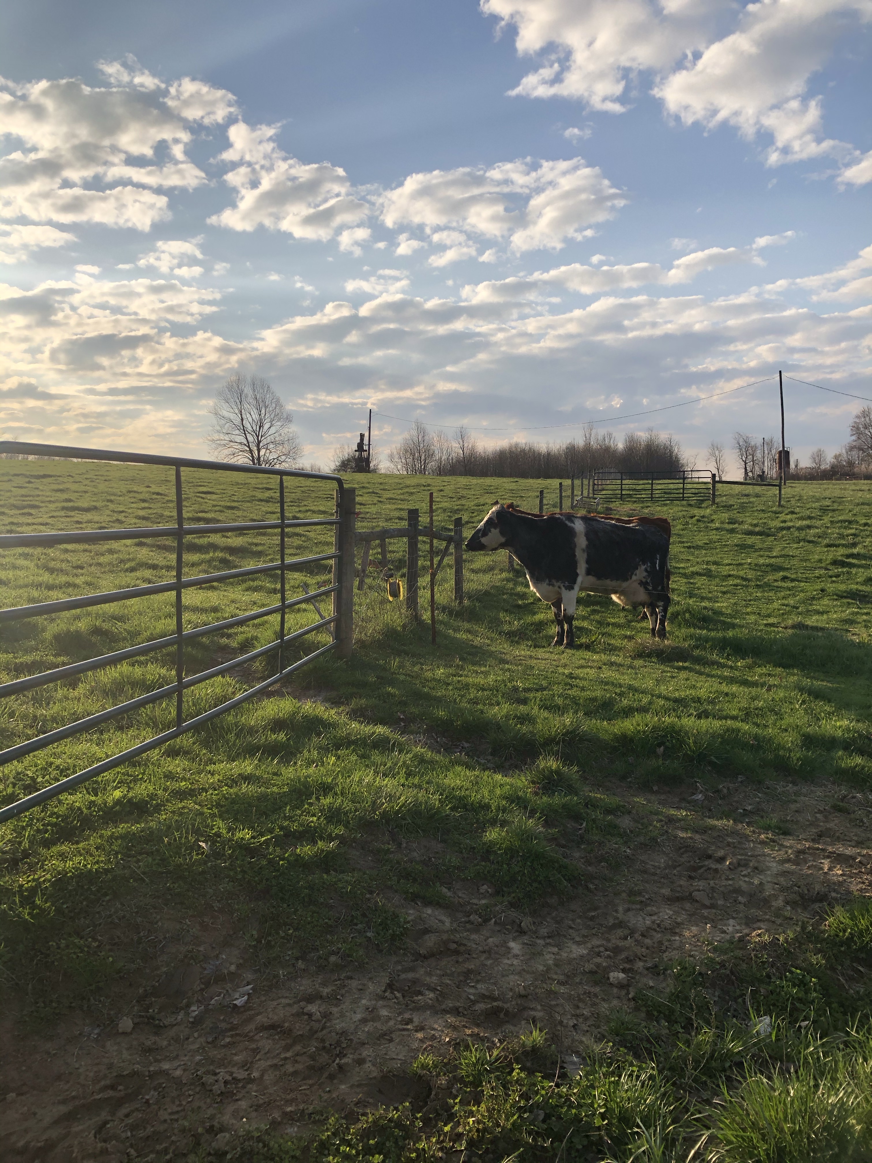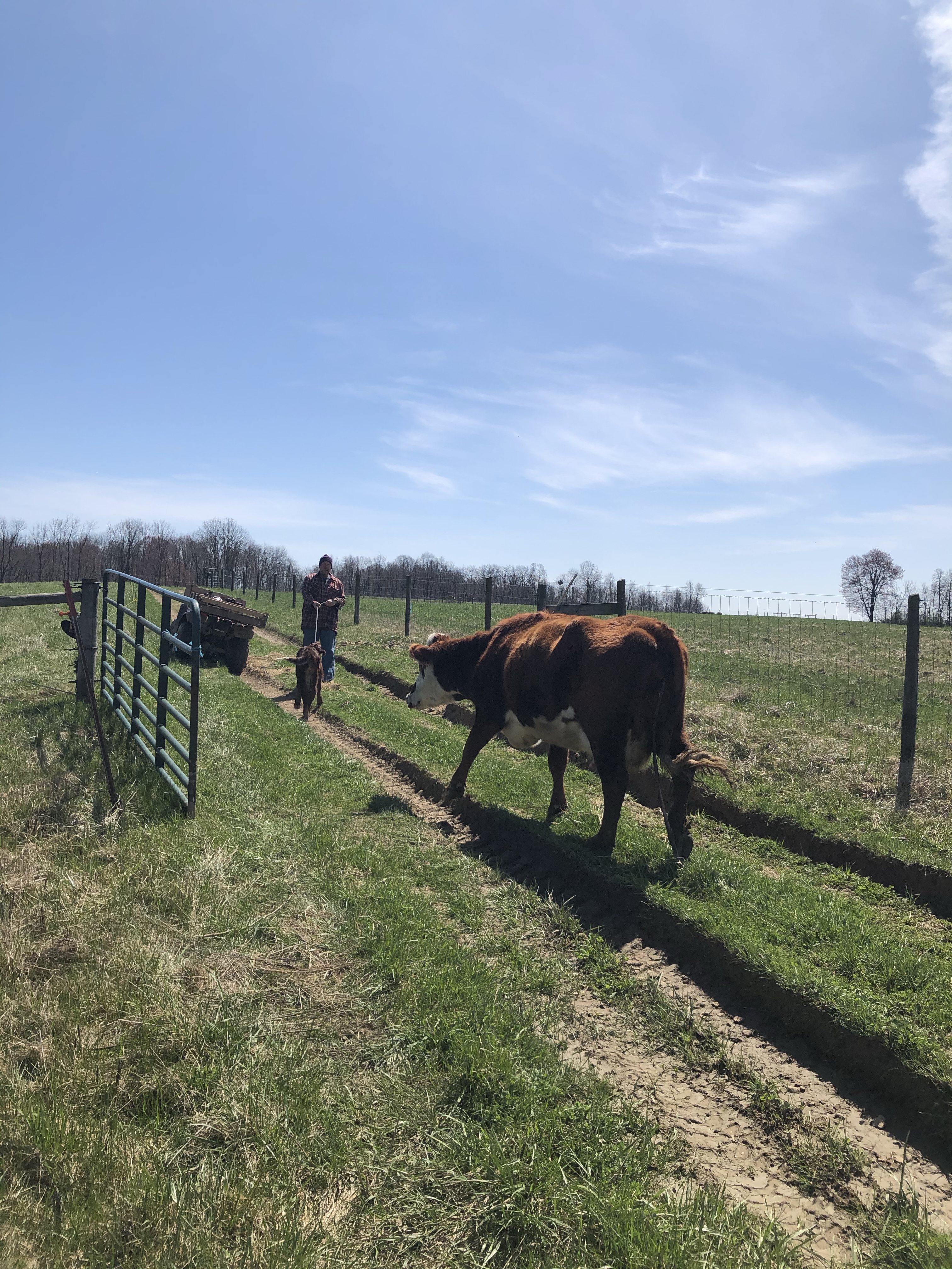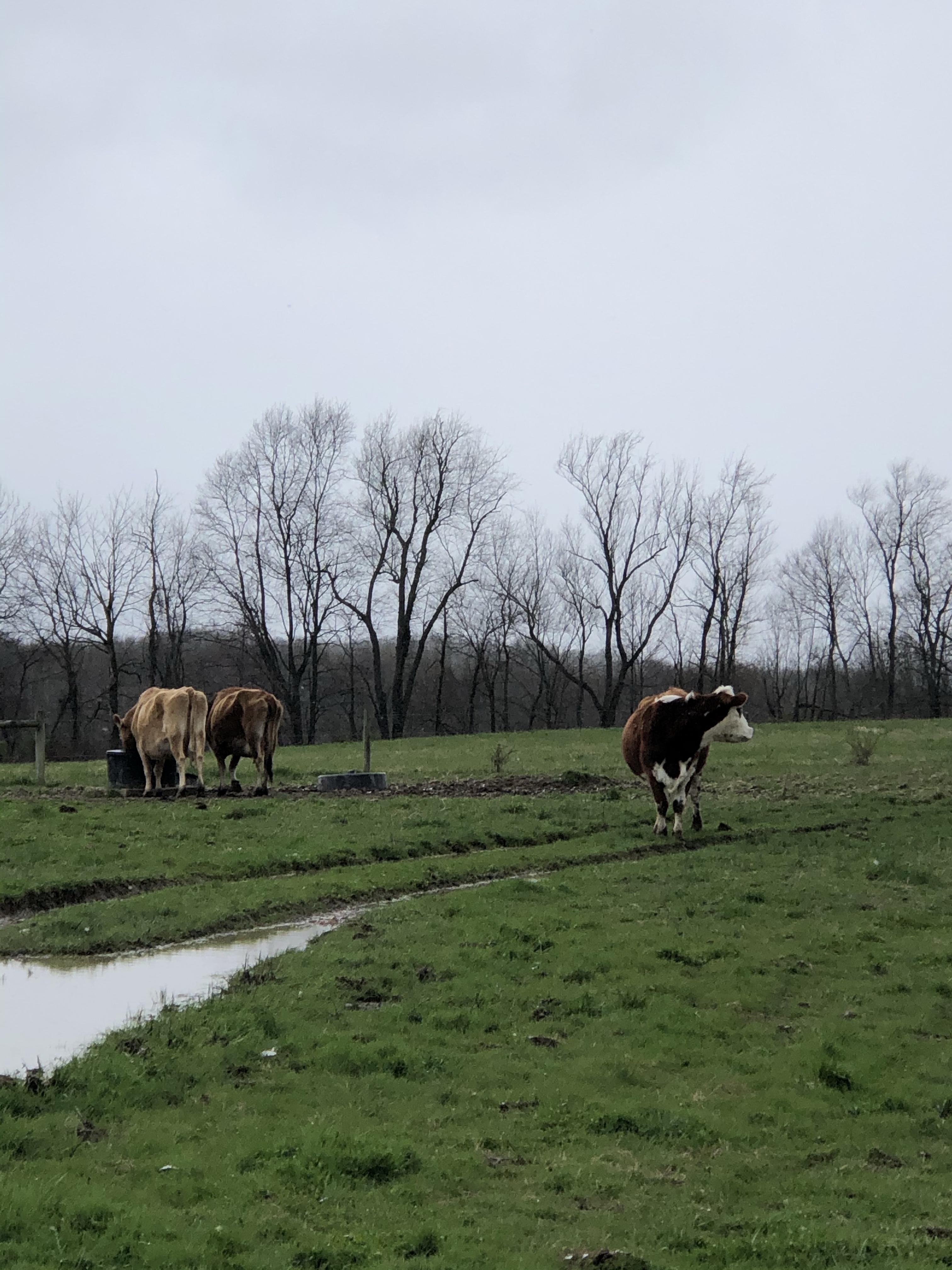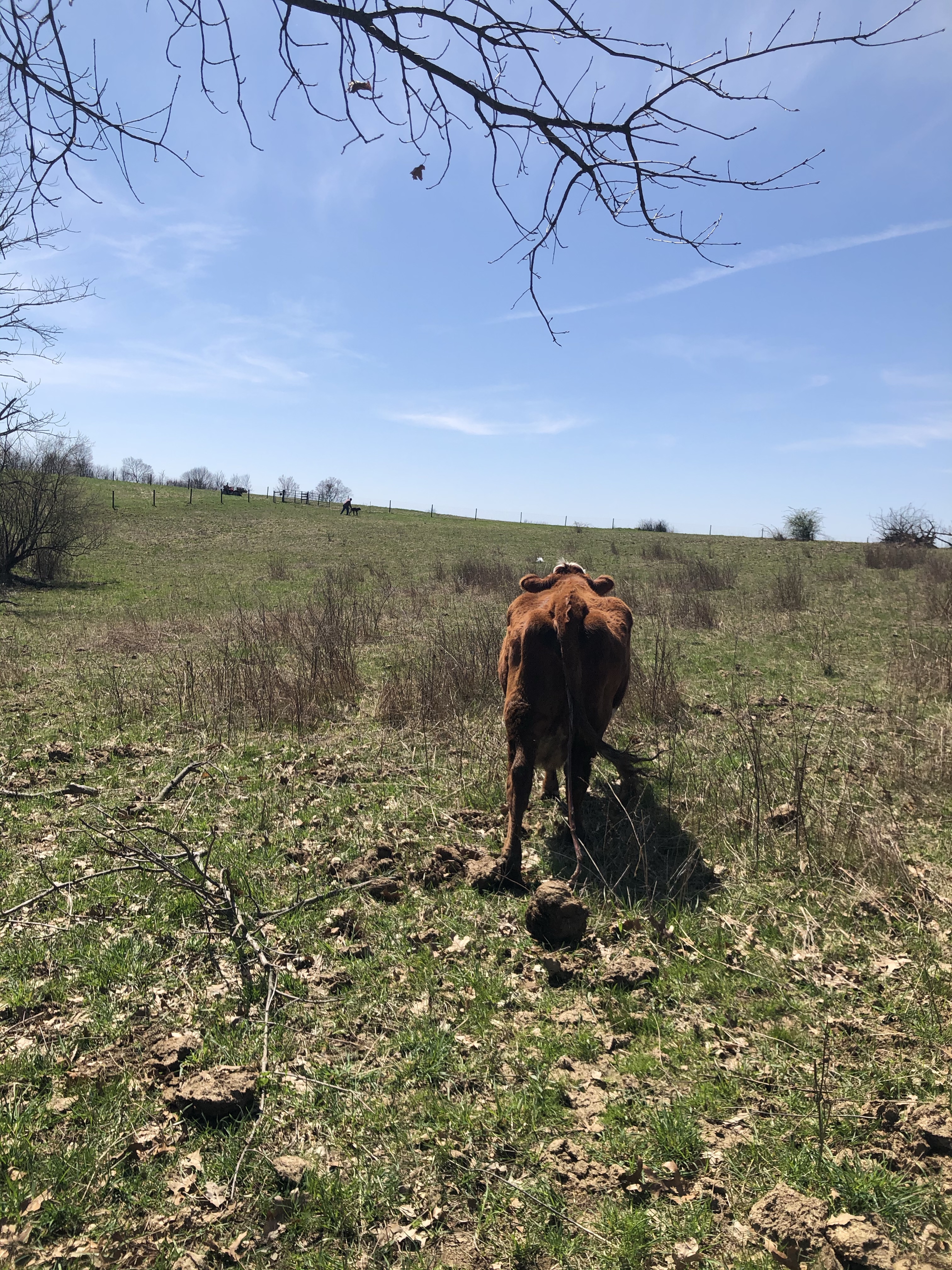 Next we headed back up to Mordor to walk Ruby down. Our approach was to call the four cows to us, get them to come to the gate, weed out Ruby, and head down. Three cows cooperated with our plan. ONE DID NOT. Guess which one?π€¦π»ββοΈ