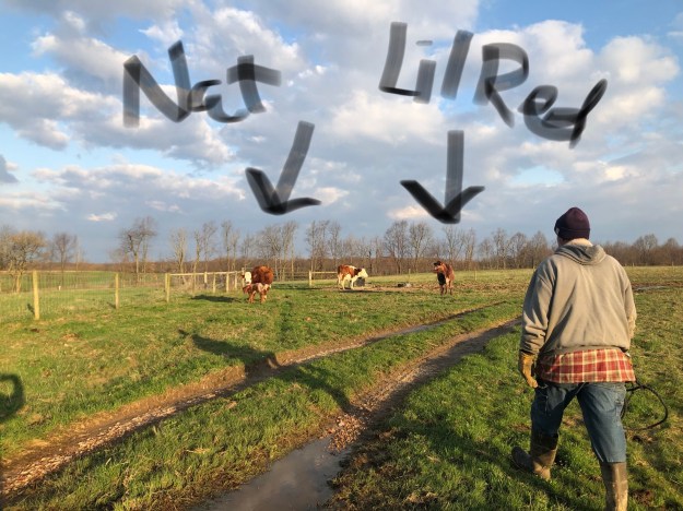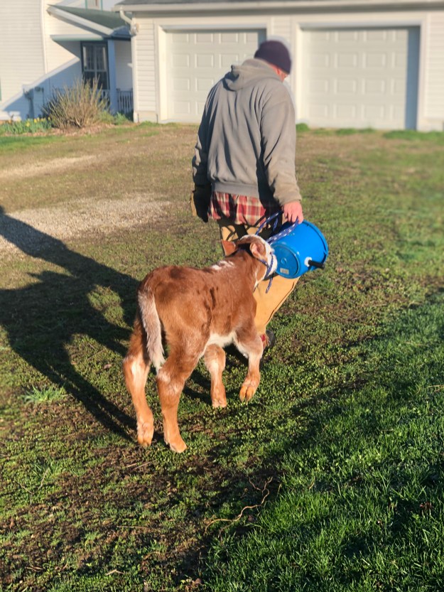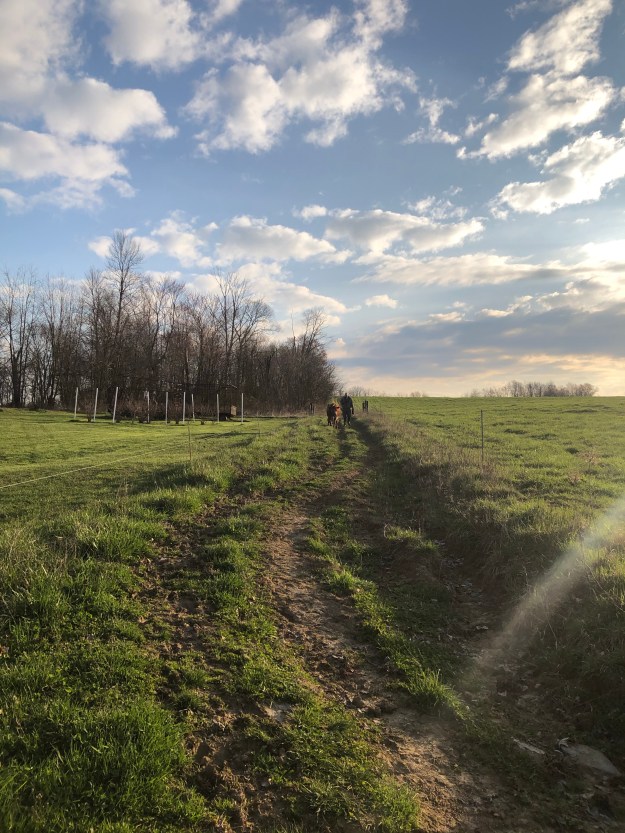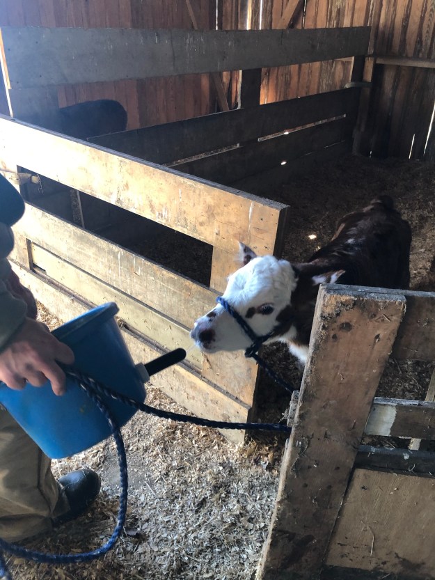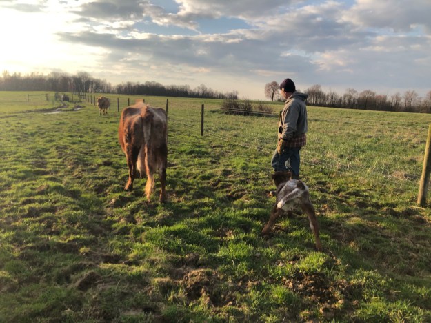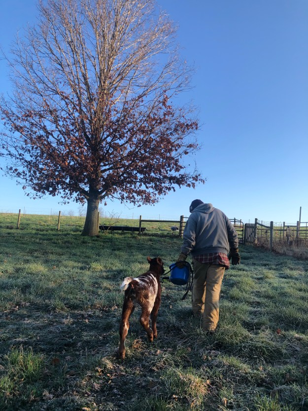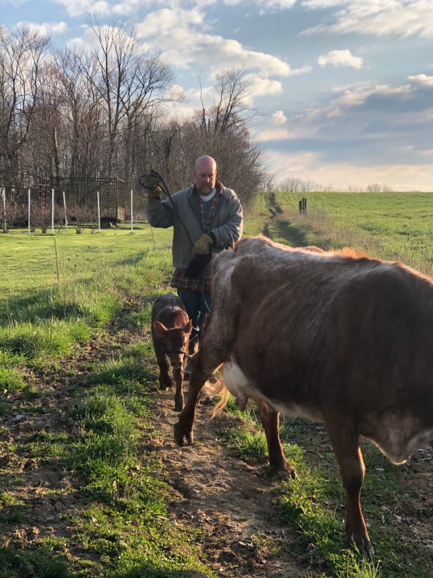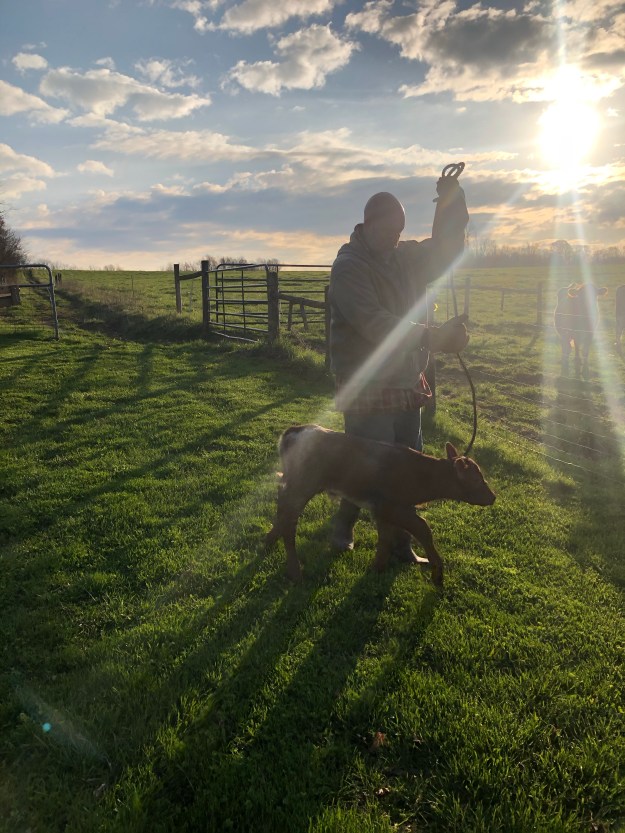 We didn’t want to lose the opportunity to halter the calf and/or they all walk to the back side of the field before we could get the fences ready for the walk to the barn…