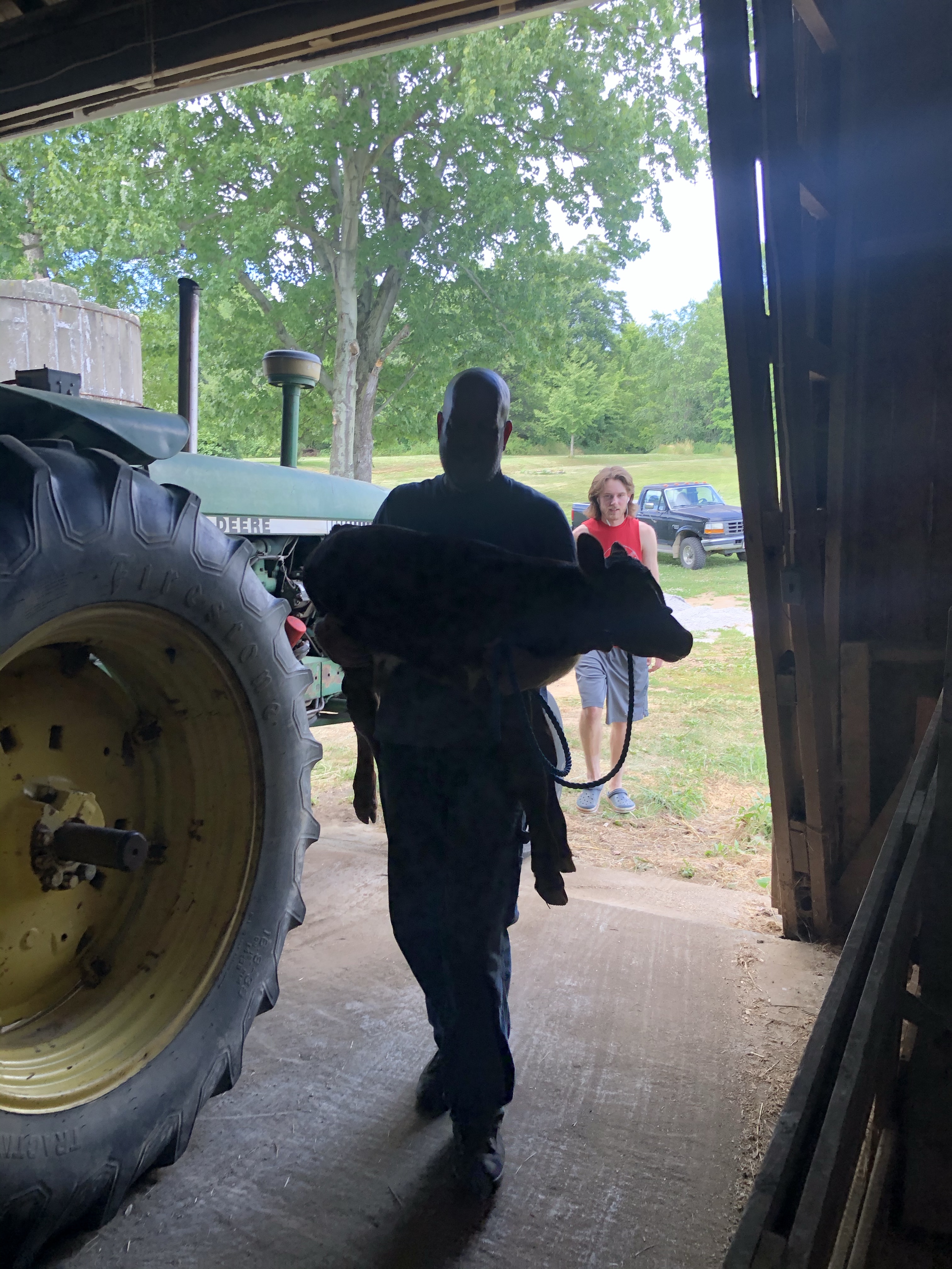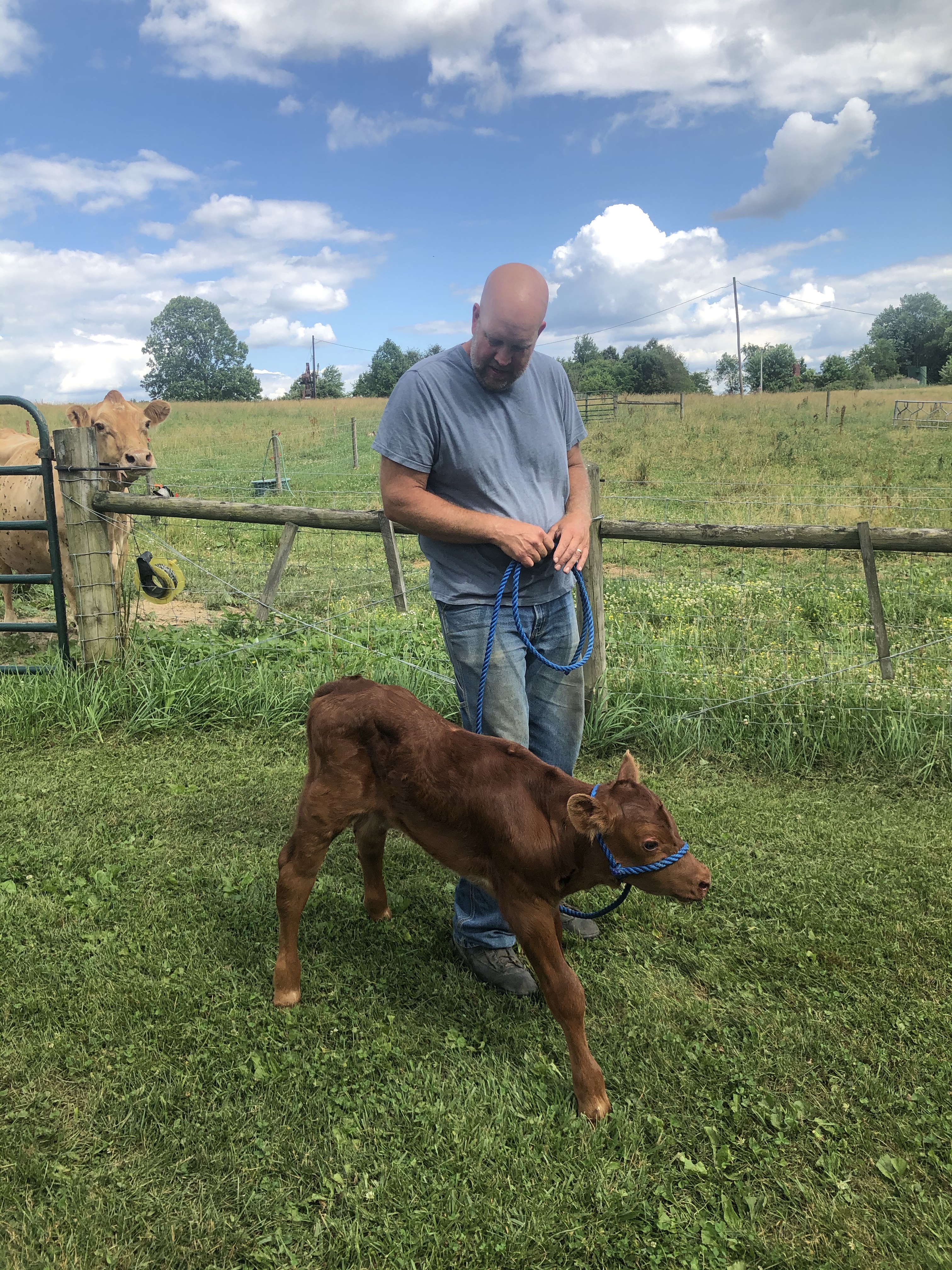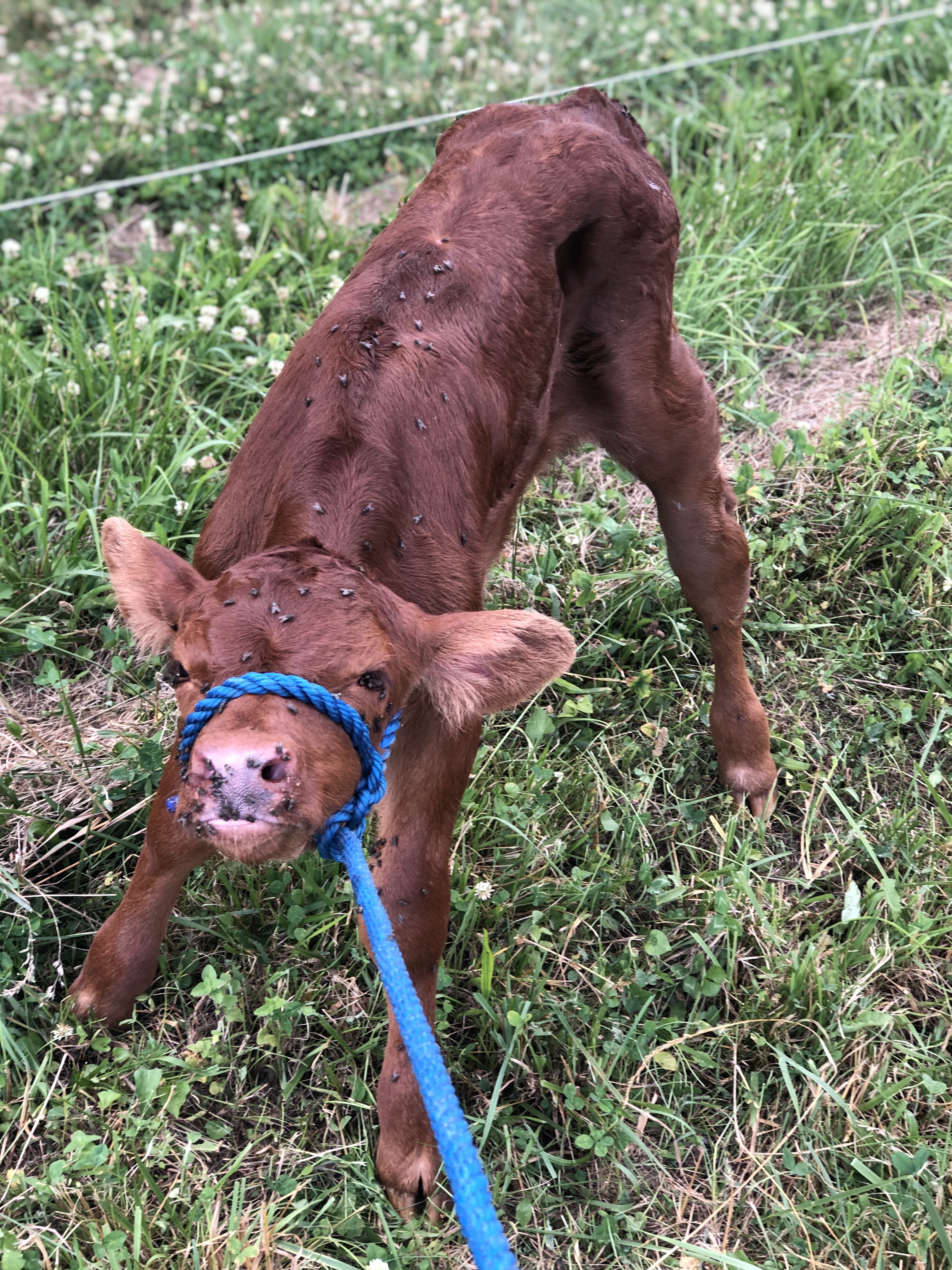 After I fumbled around a bit, I was able to get a halter on the calf, and I know I breathed a little sigh of relief!