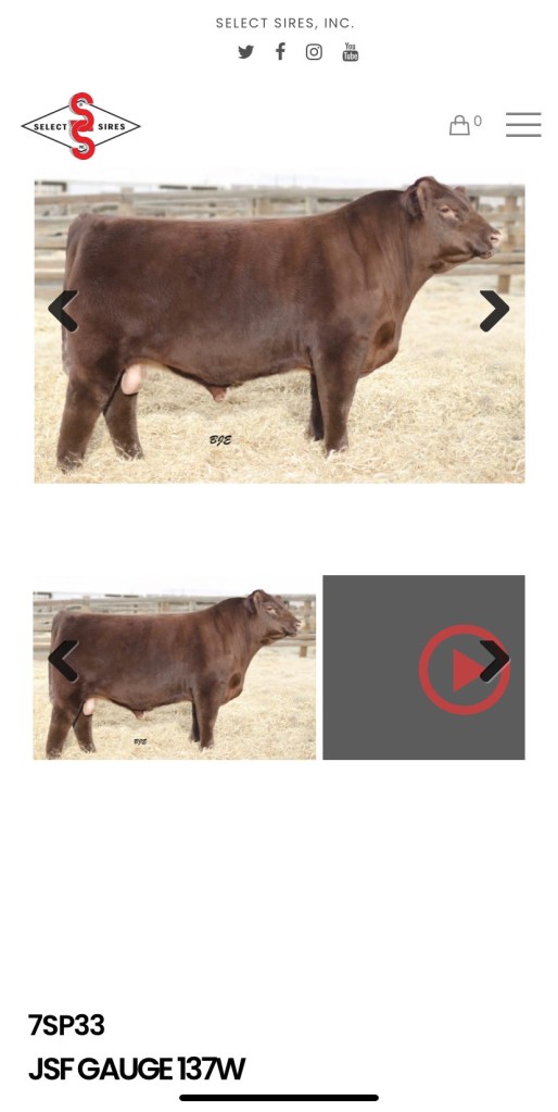 Ruby was AI’d to a beef shorthorn bull named Gauge. (So Gary and Rooster have the same sire.) Here is a picture we found online of him: