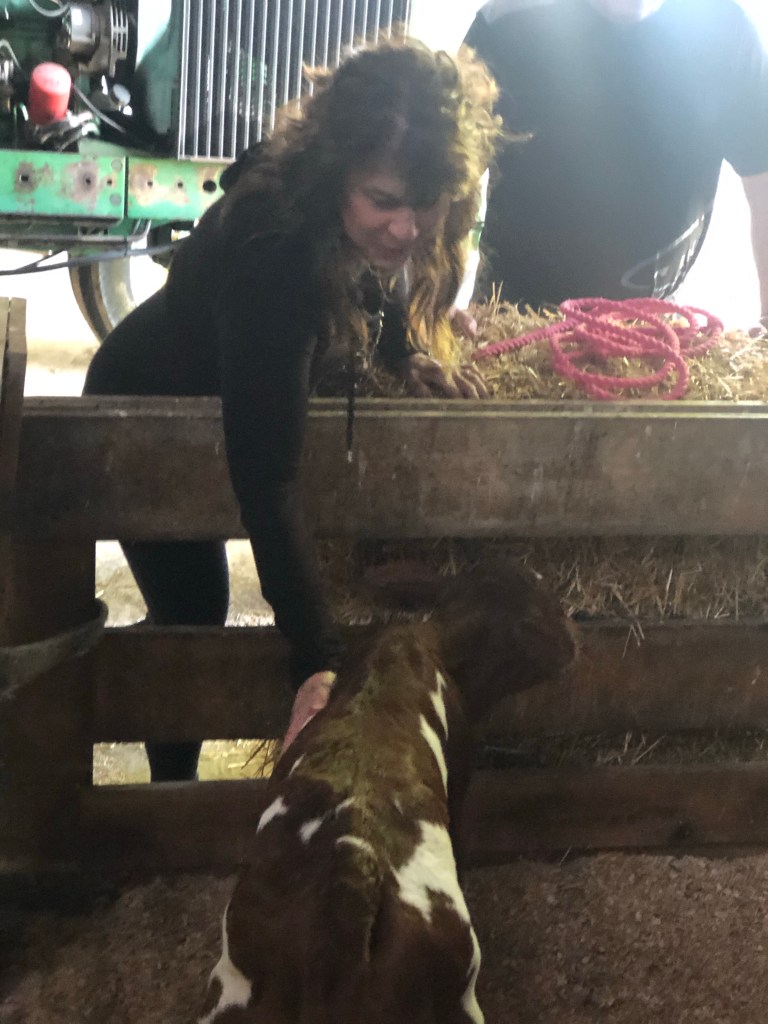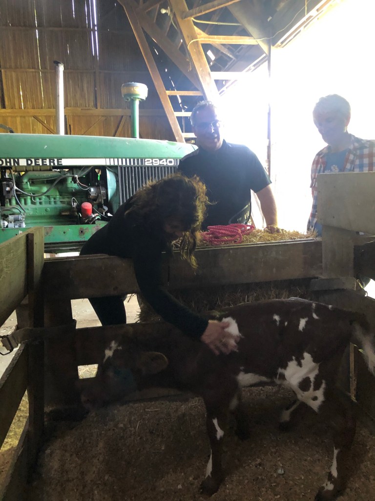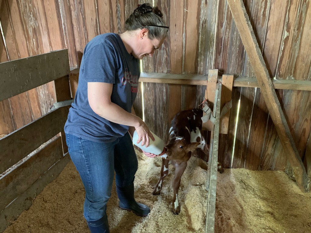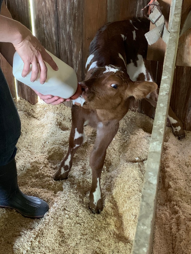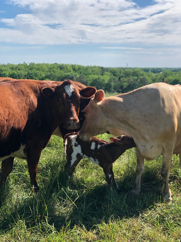 We had friends over for a cookout today, and when we went on a walk, I noticed Sarge was off by herself and was leaking milk. Sure enough – a couple hours later, Mike’s mom went on a walk, and there was her calf!🇺🇸🐮