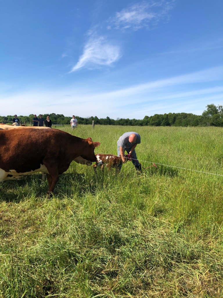 This is Sarge’s 6th calf for us. <Click here to read about when Sarge was born.> How fitting that Sarge had her calf on Memorial Day!🇺🇸 And <click here to read about the calf she had last year.>