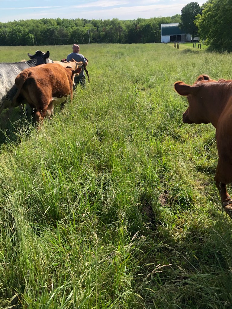 Mike & I went down to get the halter and open up the fences for the walk to the barn.🐮