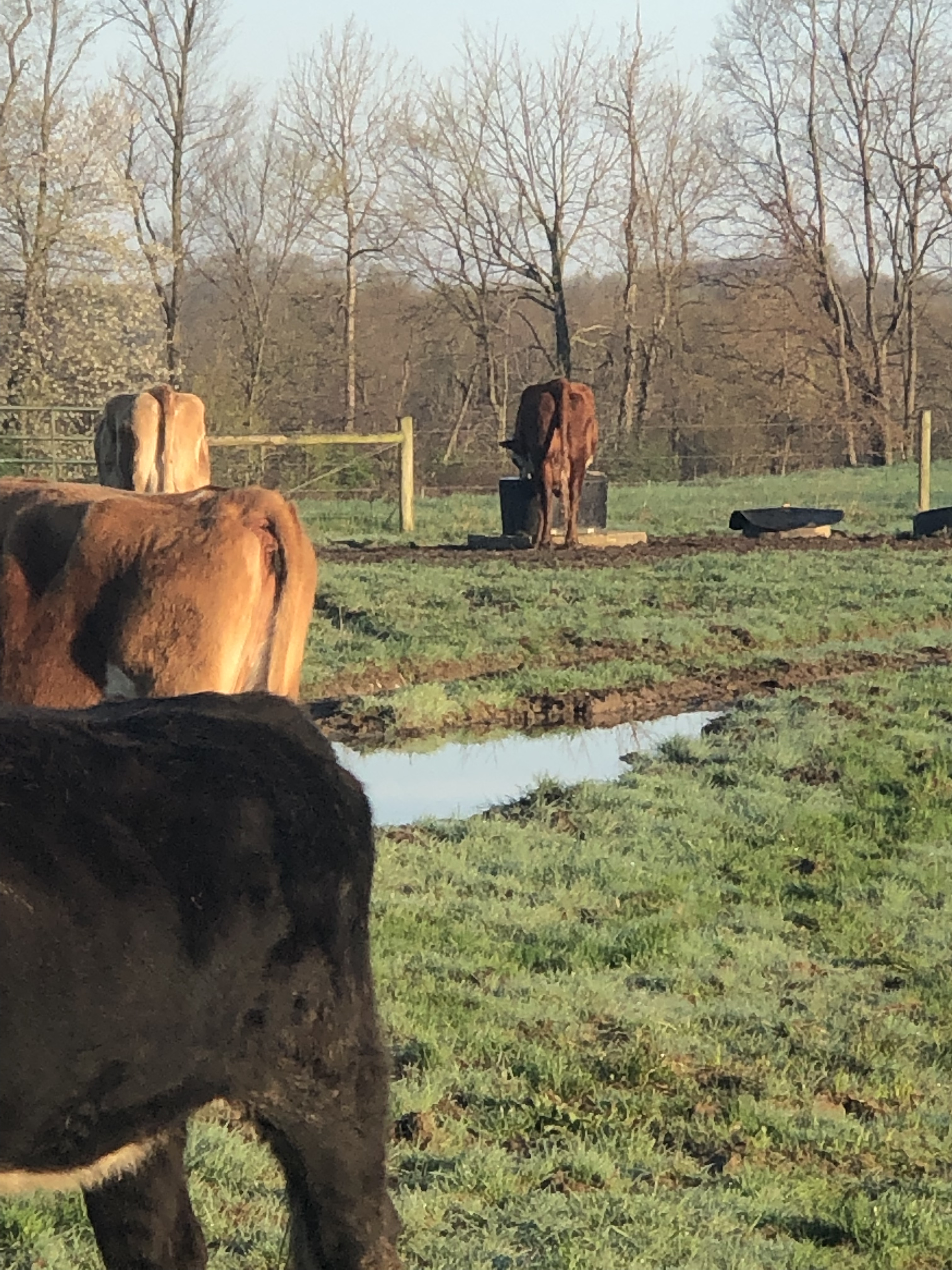 And she didn’t want Mike to help speed things up! The other 2 heifers: Peggy & Nat, came over to throw some interference, lol…😂