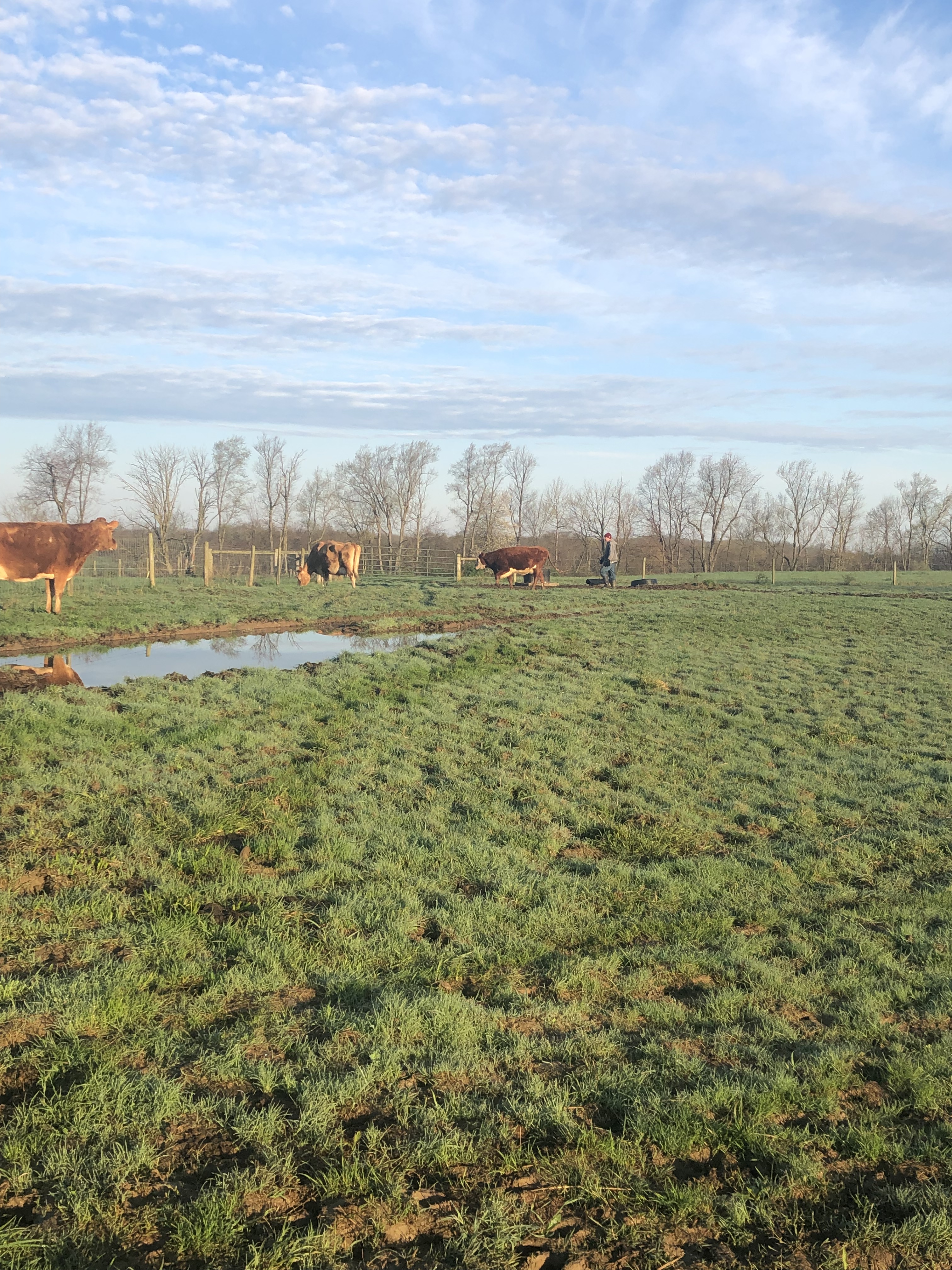 After much prayer and deliberation, we decided to allow the boys to stay with their moms for the night. With the sun going down quickly and our bodies feeling weary, we felt it would be better to bring everybody down in the morning instead. This concept is scary for us control-freak-types…😬 In this field, the herd is contained in just a single wire of electric, and there is no perimeter fence around the edges.🙏🏼