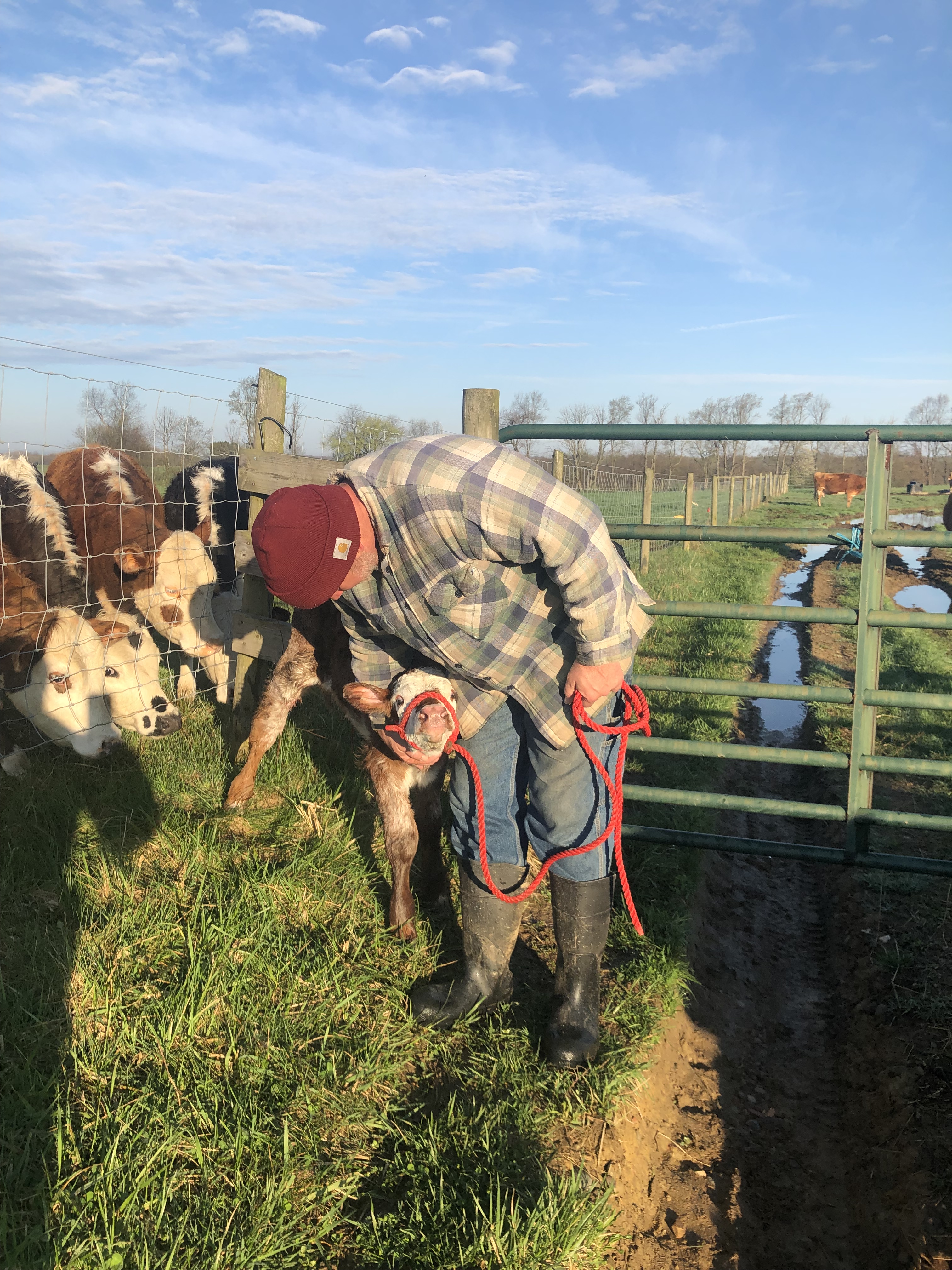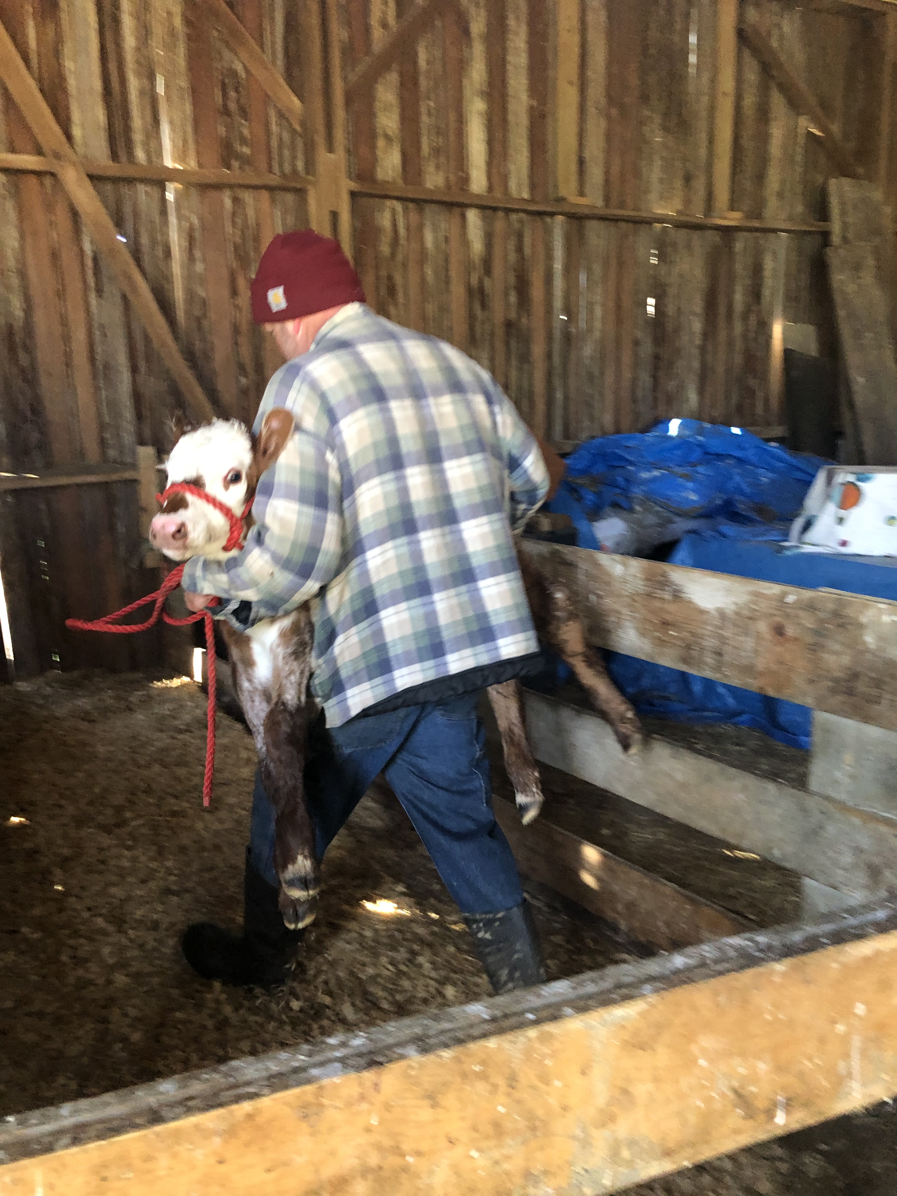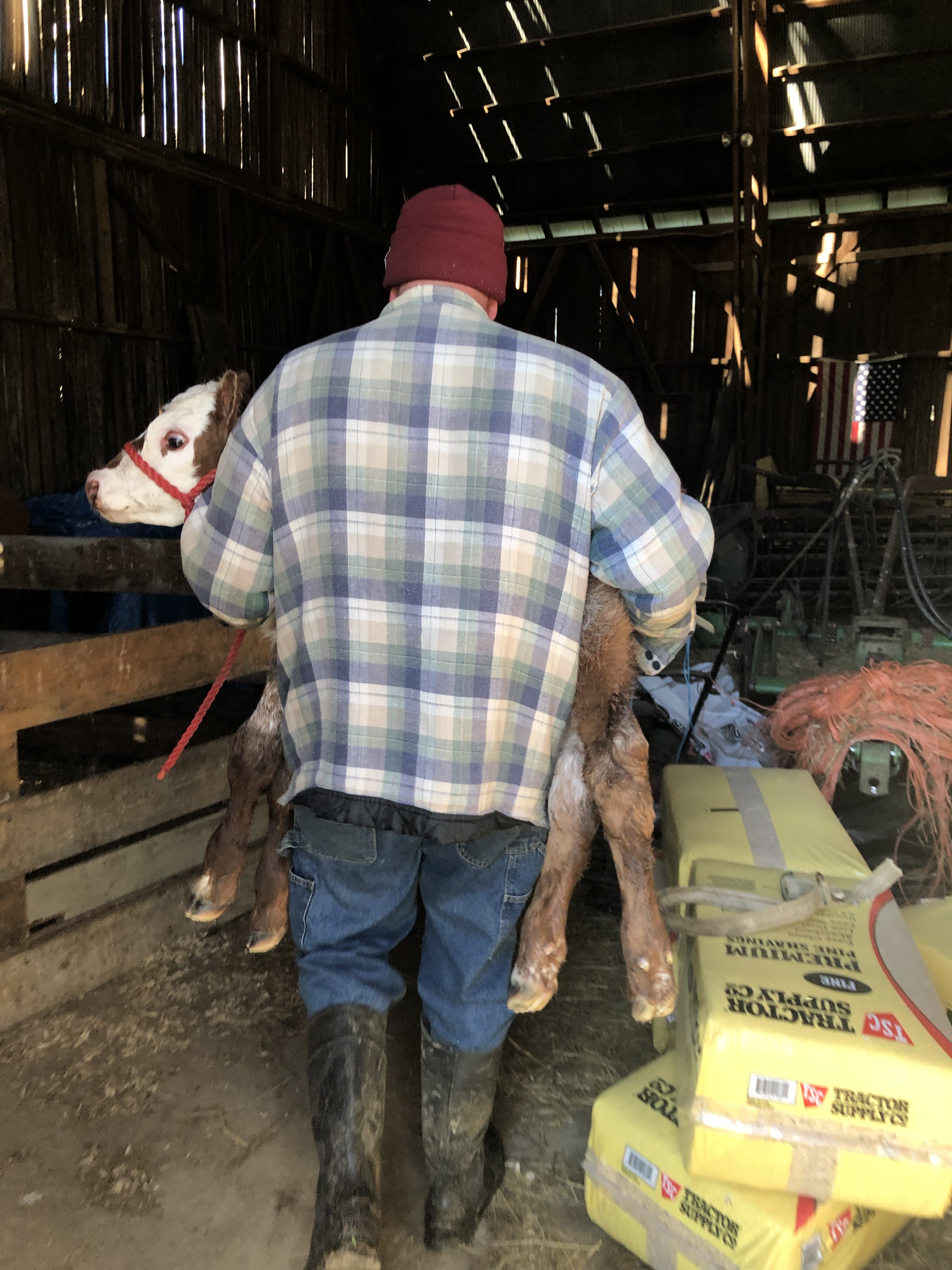 Then Mike took Jarjar from me, and walked him with Gluey & Ruby toward the barn. At this point, BOTH mamas thought Jarjar was their calf, lol.🙄