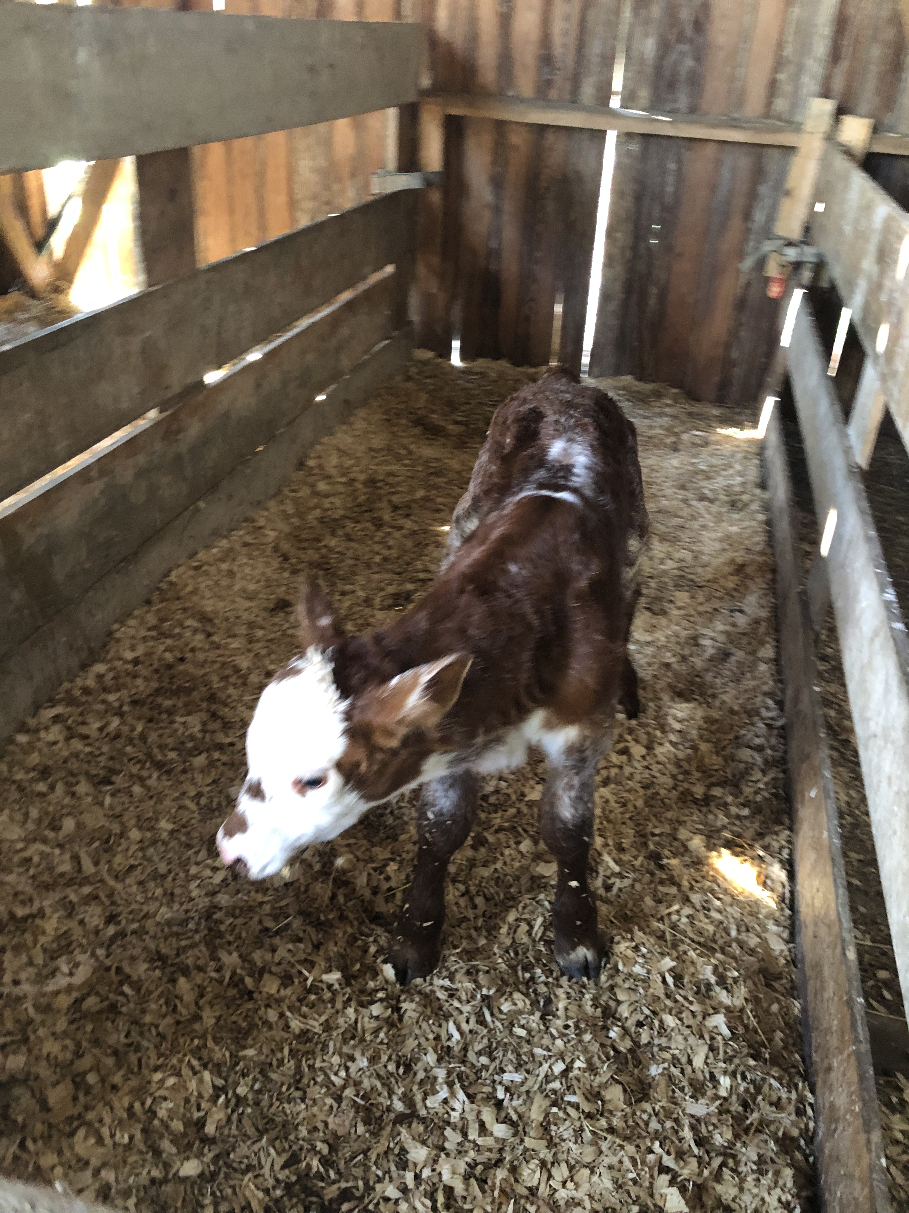 It’s a boy! This is Ruby’s first calf for us. [Click here to read about when Ruby was born.] His name is Boy-o. A name from a movie my boys have memorized lines from. Kind of fun to attach it to a calf now, lol.😂