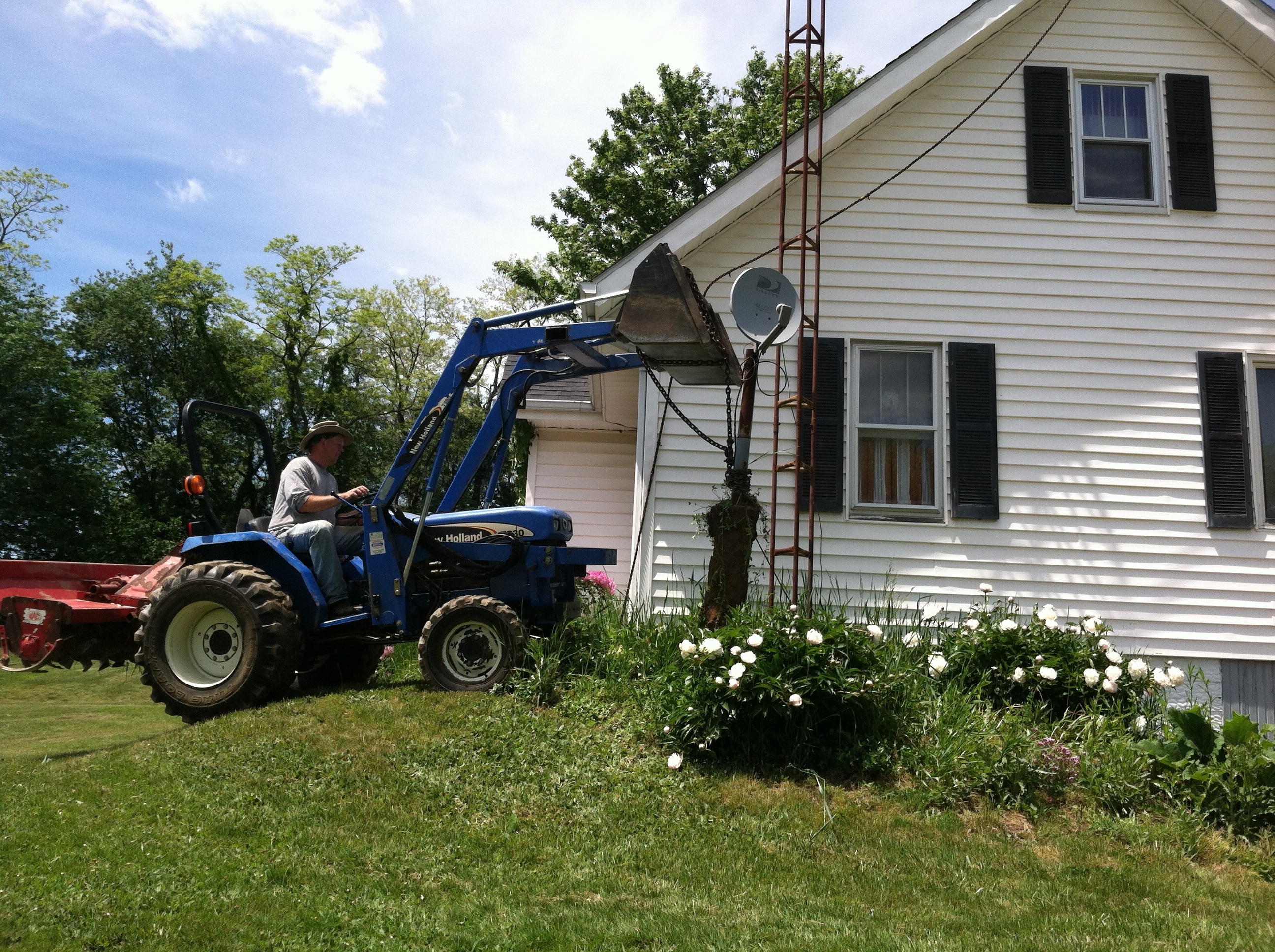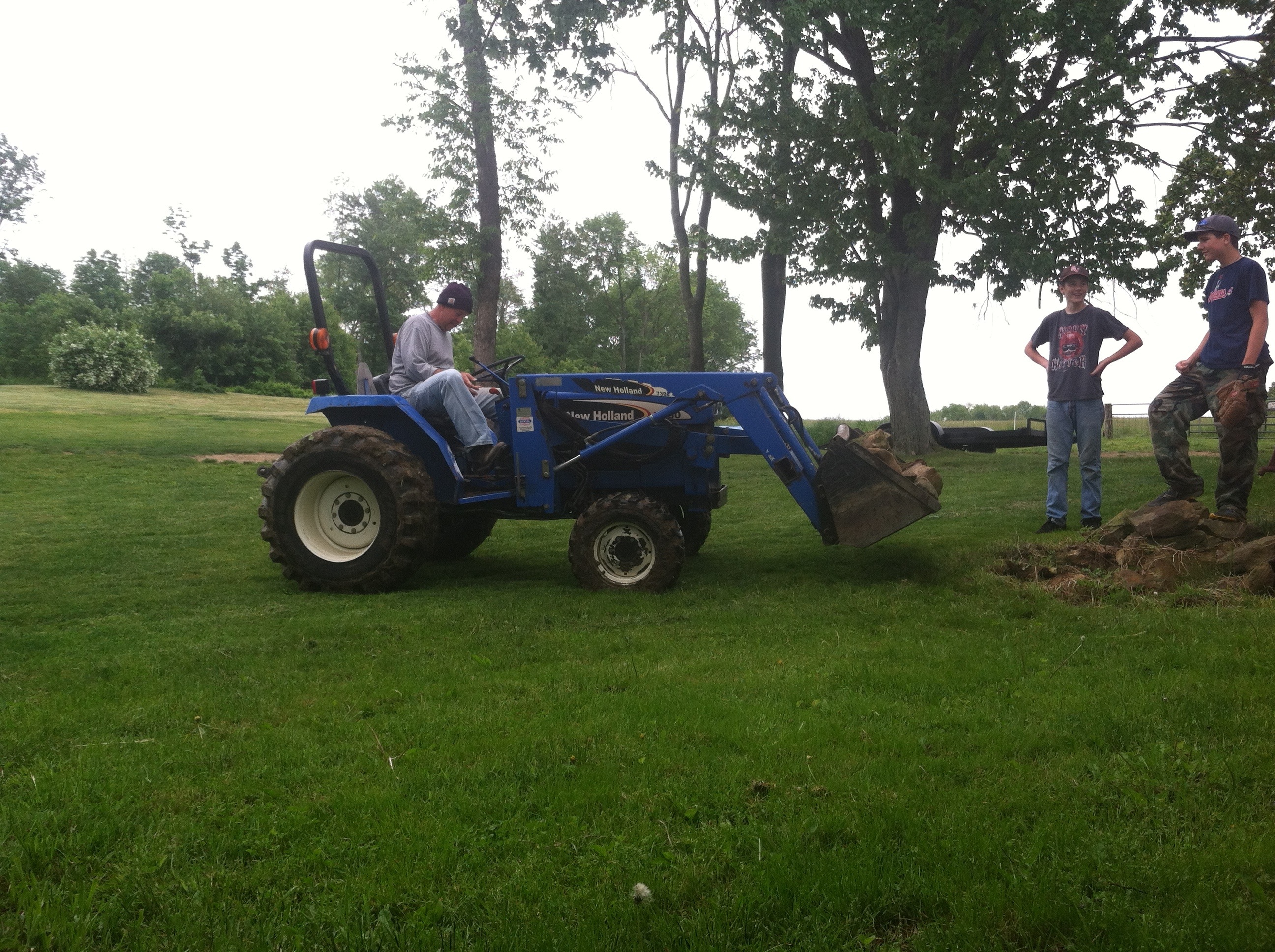 Mike had scheduled it for earlier last week, but the forecast was for rain/storms, so we cancelled it. Turned out to be a blessing in disguise, though… Learned that since Monday was a holiday, we could rent it after 11am on Saturday, and have it until 9am on TUESDAY!! When you rent a tractor, it is for 8 hours of “use”. In the past, it has always been difficult to use all 8 of the hours when it has to be back the next day (without completely exhausting Mike), and we try to not purposely schedule extra work for Sundays. So, the additional day that came as a result of the holiday was so wonderful! Here are some pics of what got accomplished: