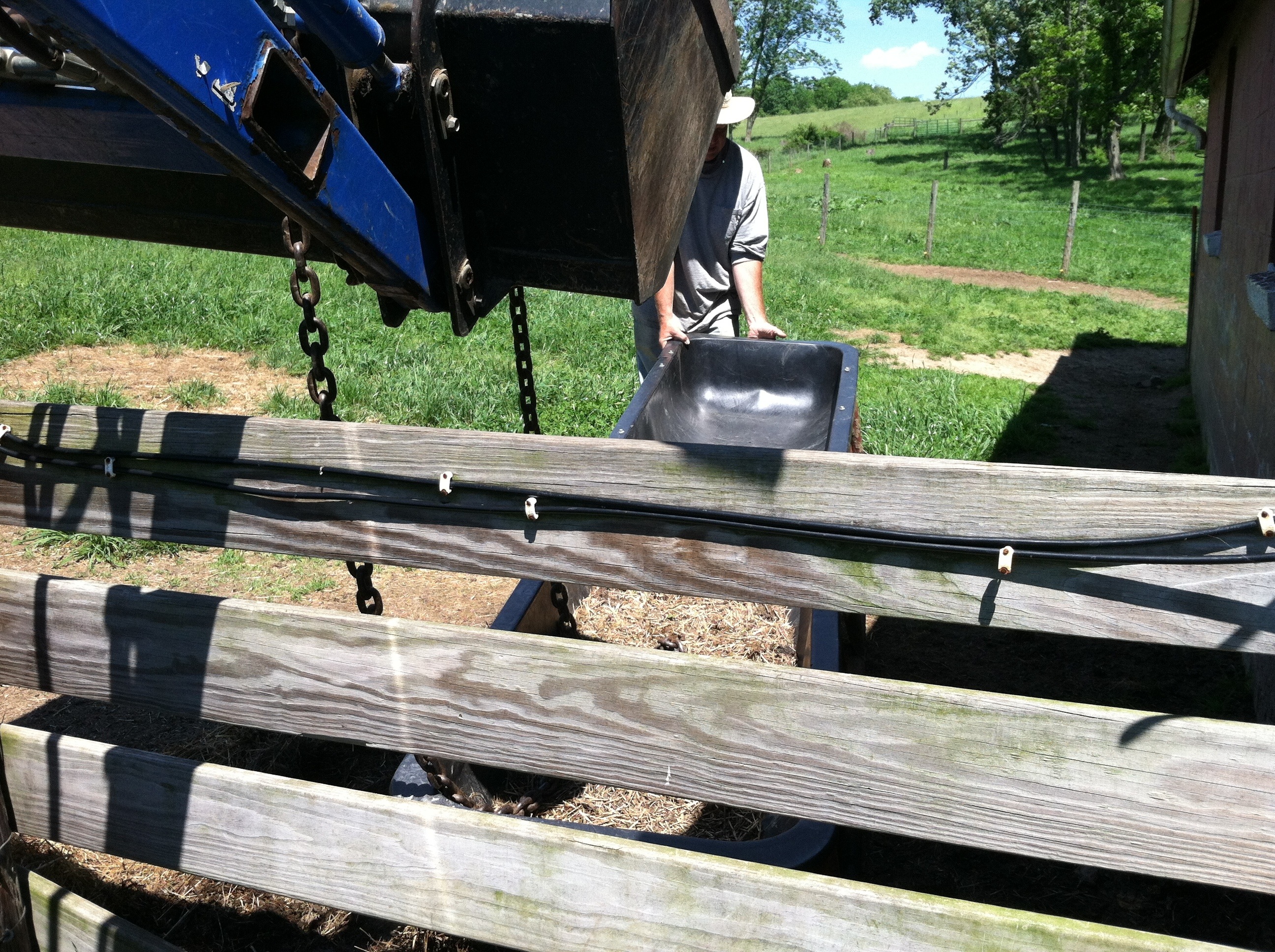 This trough was a little trickier because there was no easy way to get into this side of the barnyard. Fortunately, overtop of the fence worked out fine. ๐