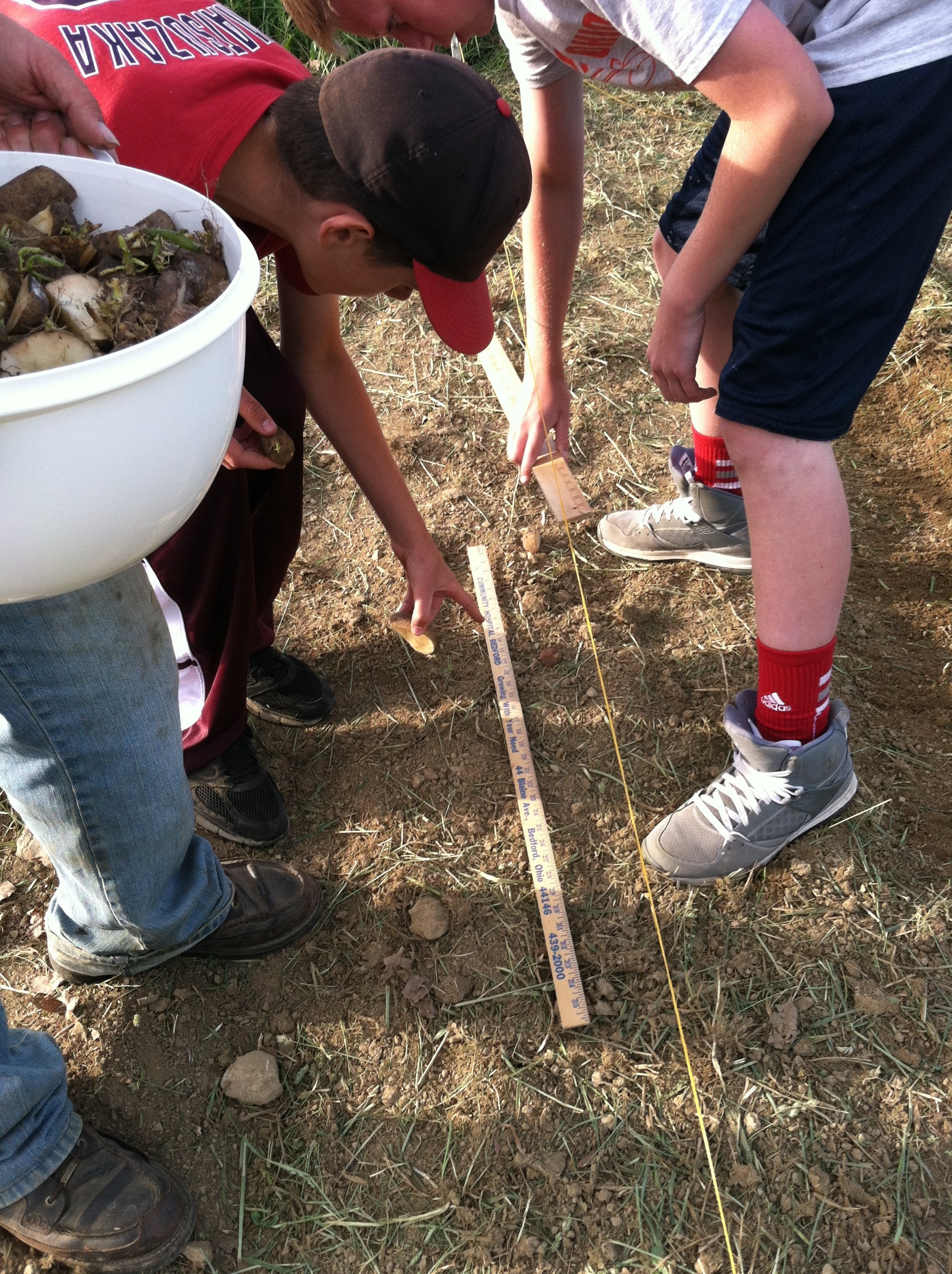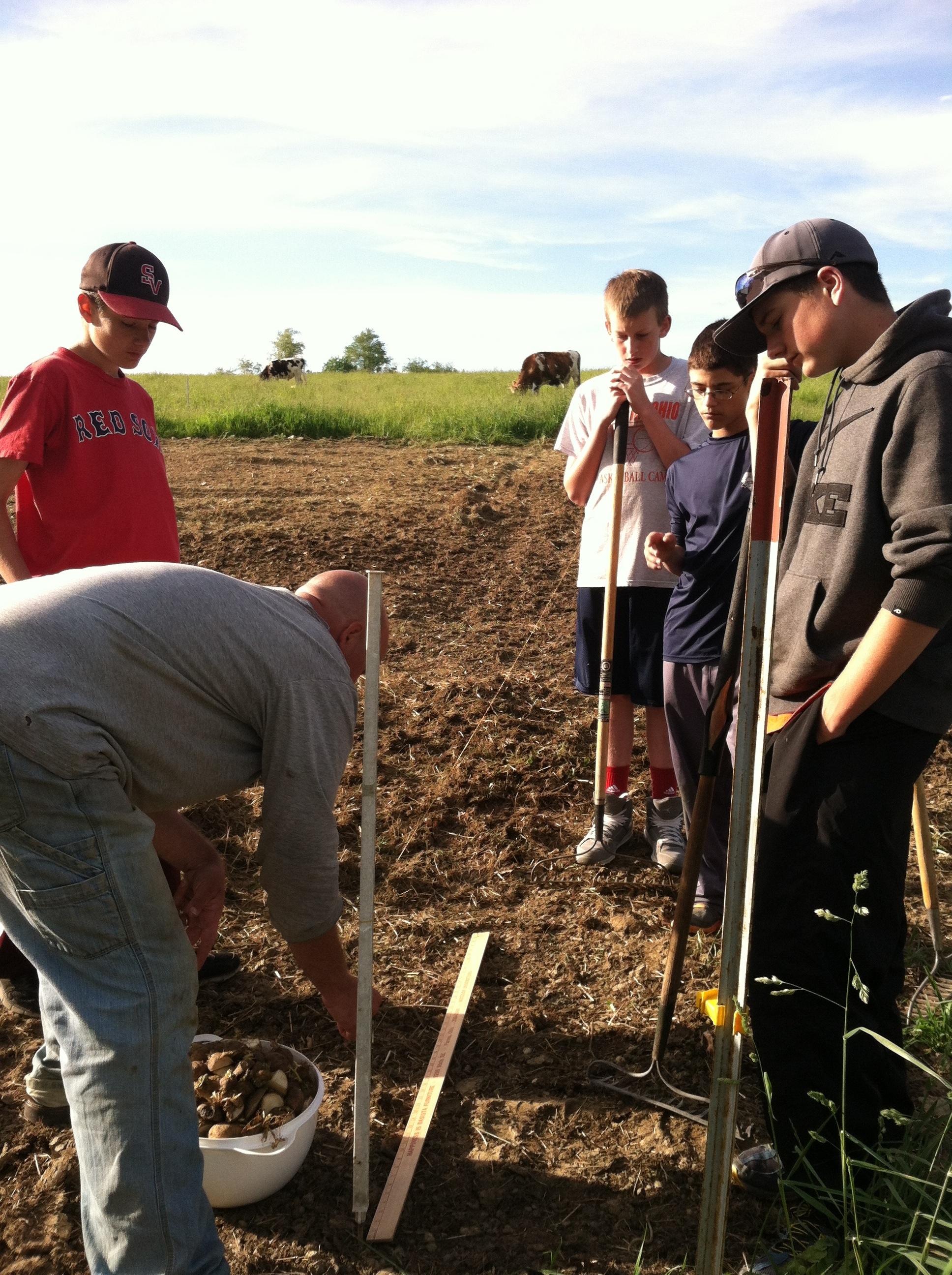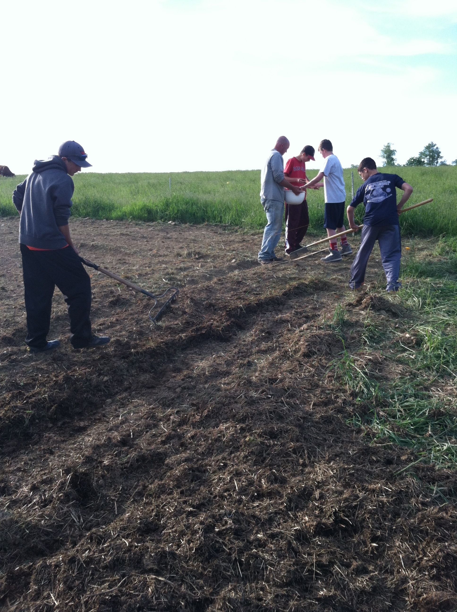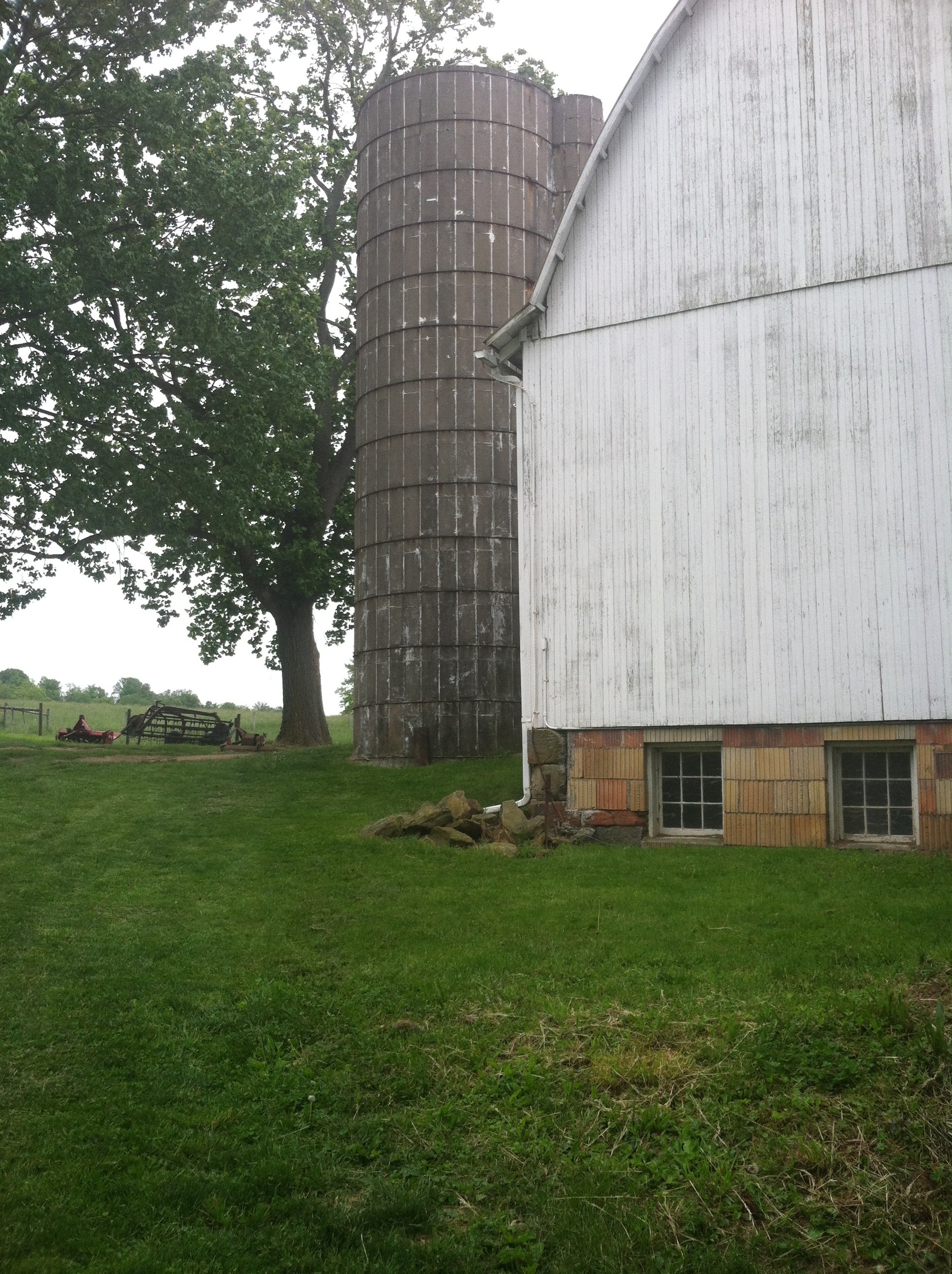 Next Mike headed across the road to begin the “end phase” of the last part of our EQIP grant. Can’t wait to be done with our contract – it’s been a l-o-n-g six years. This phase entails creating a filter area to catch the water from our milkhouse drain. When a road crew came through a few years ago to replace a culvert, we asked if they would bury a conduit for us. Thankfully, they agreed! Since our contract is up this summer, it’s time to wrap things up. ๐
