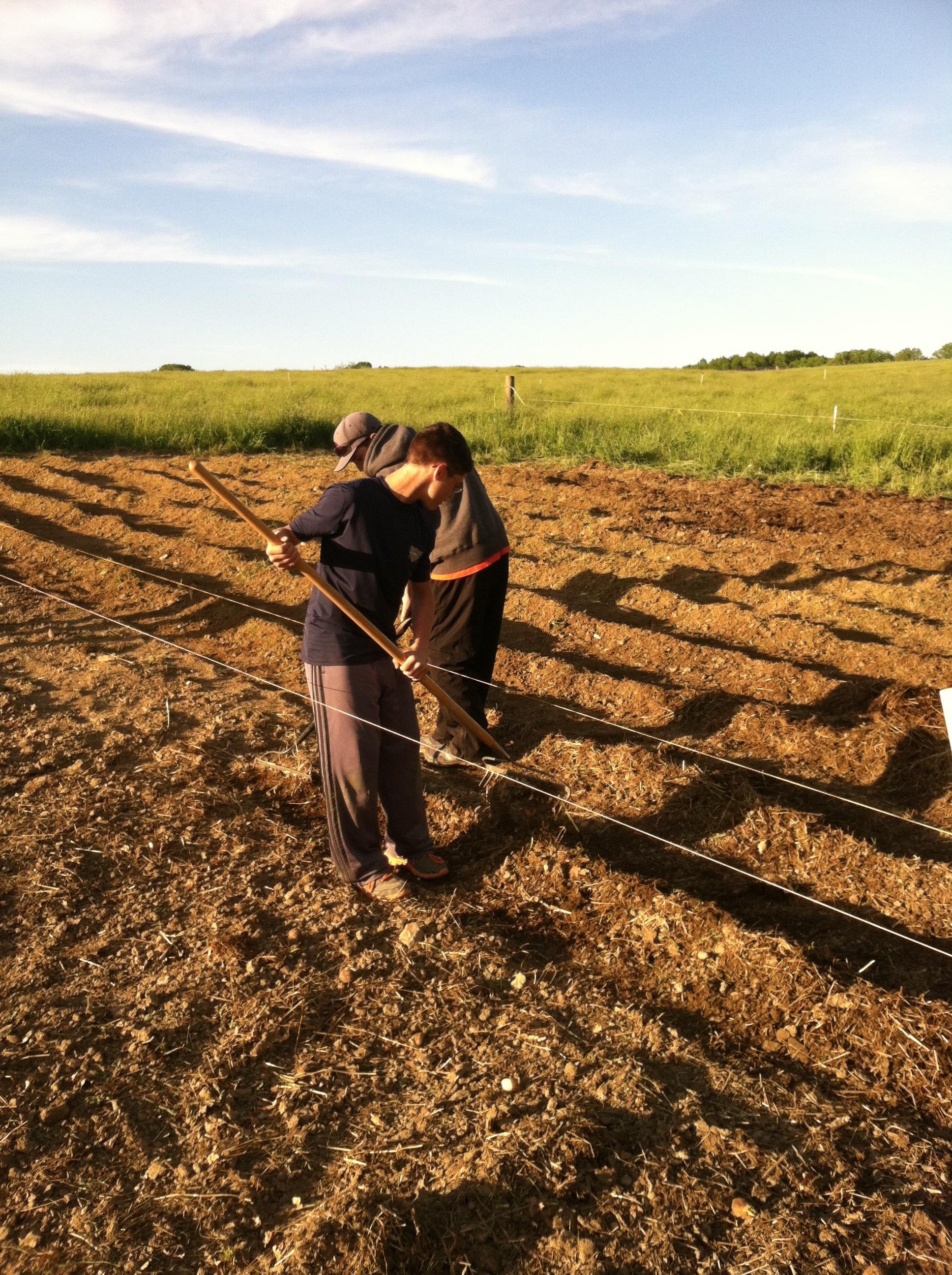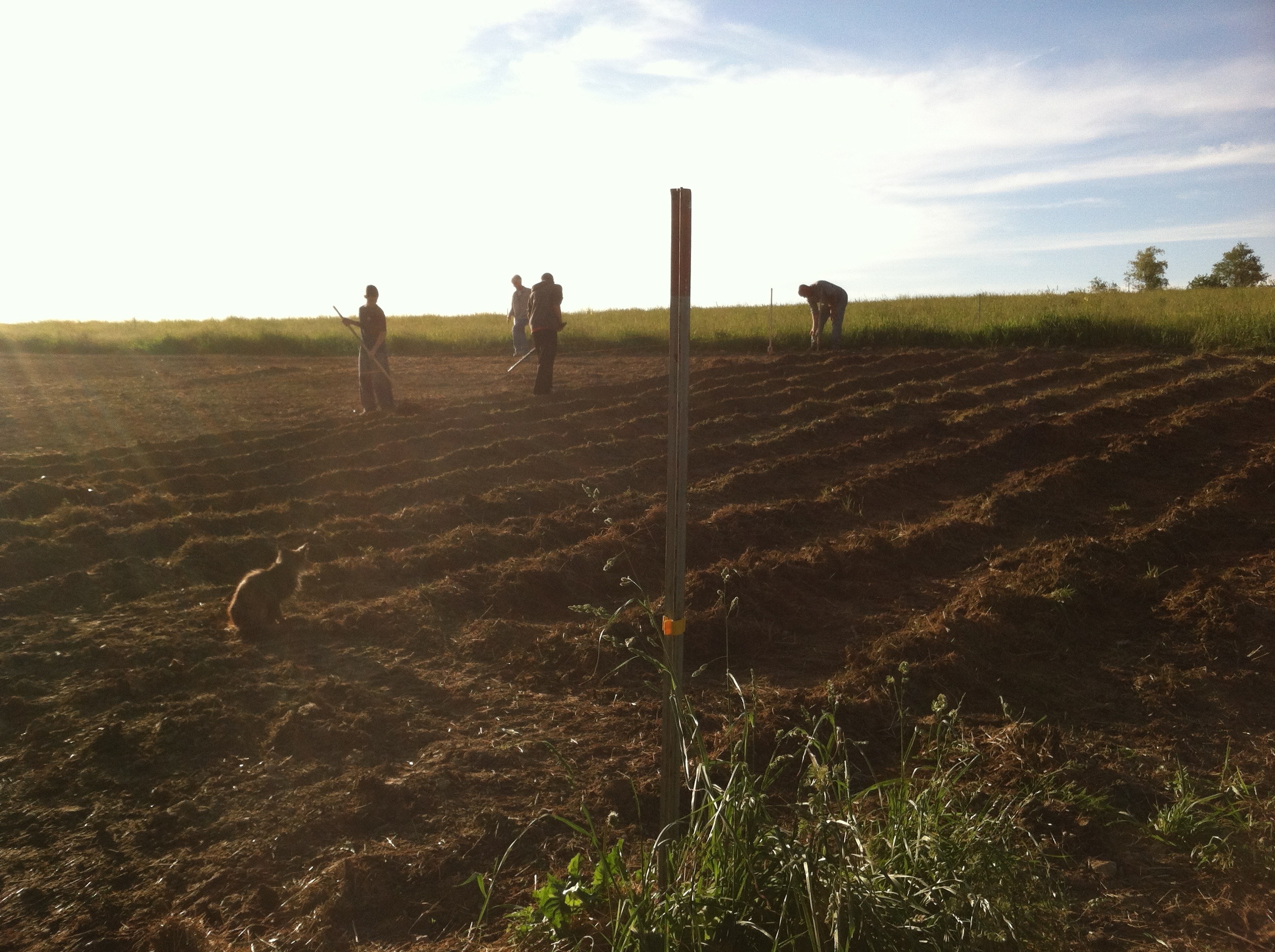Next stop, pulling up feed troughs that got buried this winter from hay-feedings… (Um – yeah – don’t do that! Much better to carry in bales or slices and place them in different spots. Laziness never produces a good ending…)