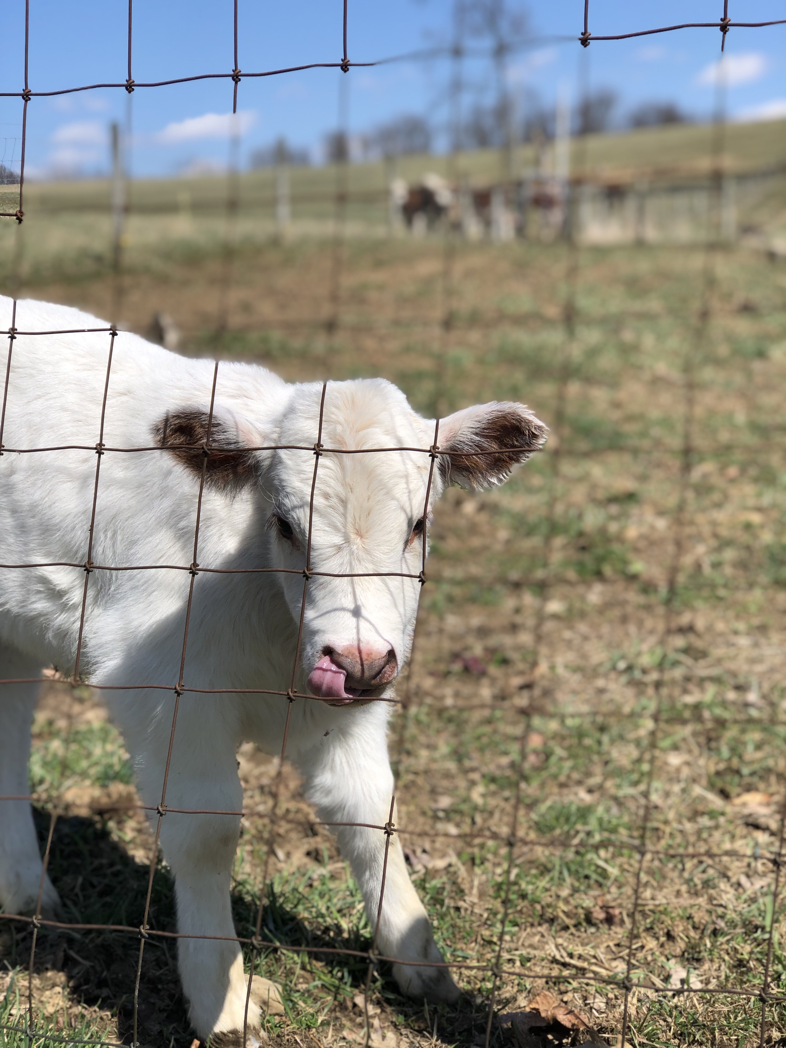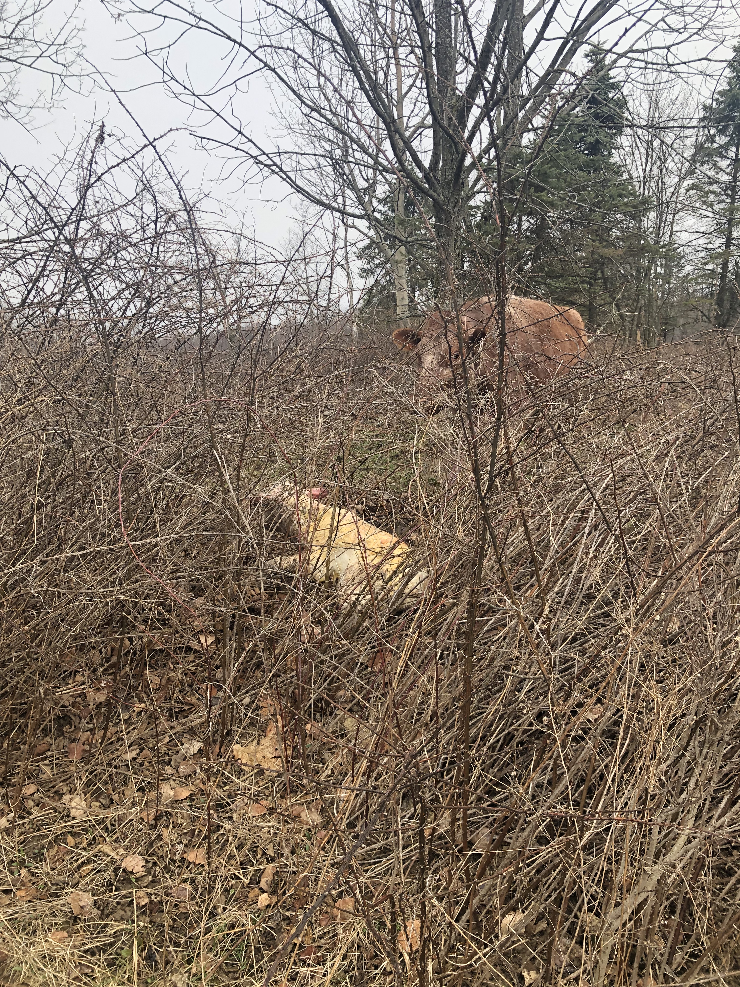 Sure enough – BOTH calves were on the WRONG SIDE of the fence when we got up there this morning, lol.🙄 We don’t think it had been for too long, though. They were quite happy to be laying together. Sure did have all the moms in a tizzy in the corner!🤣