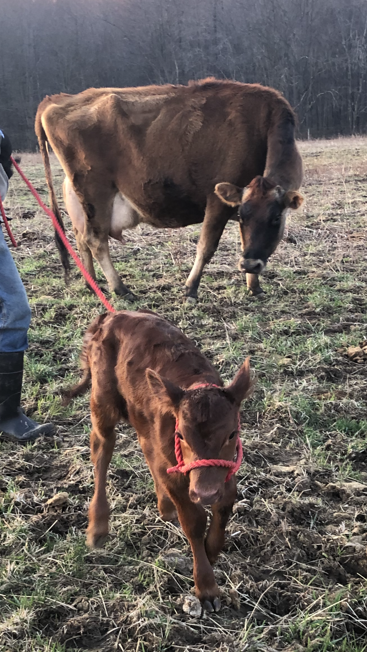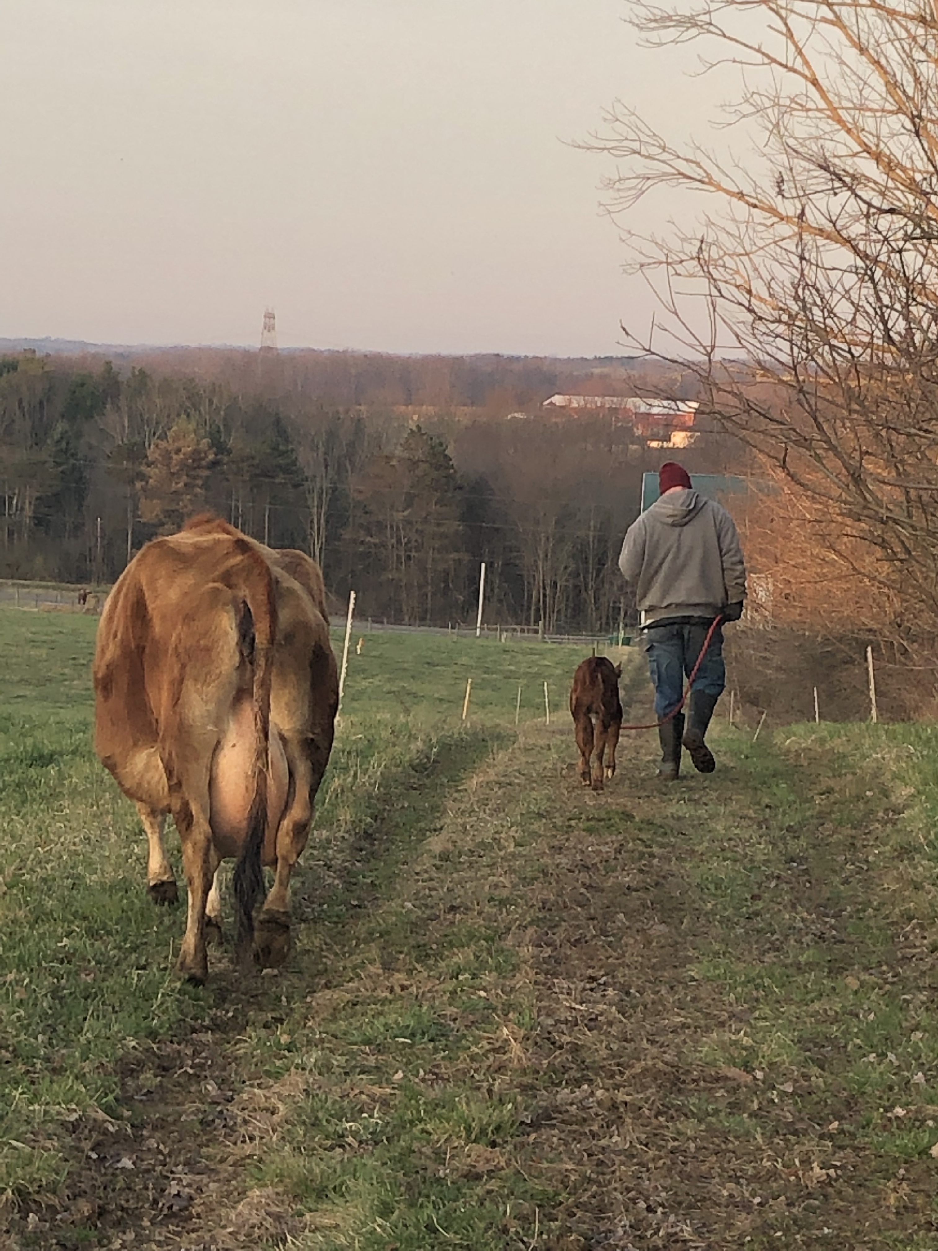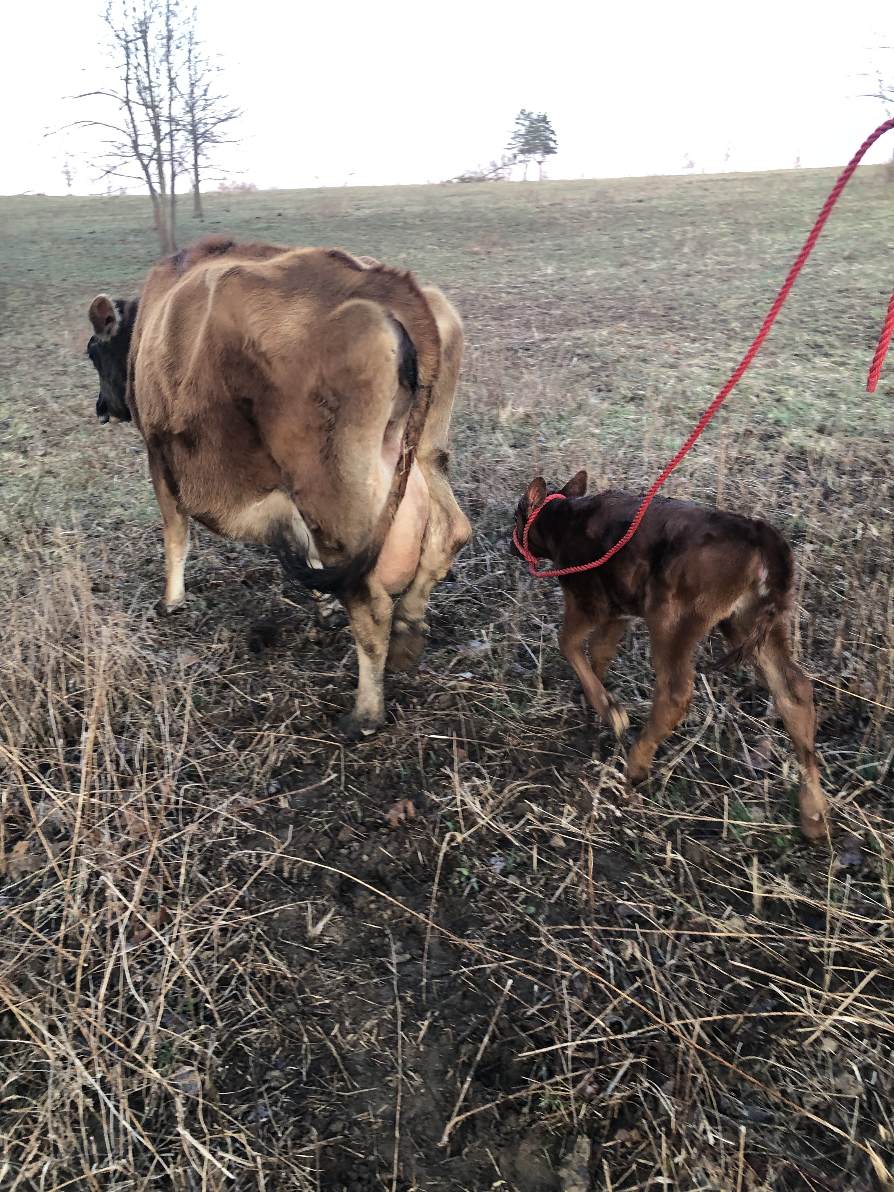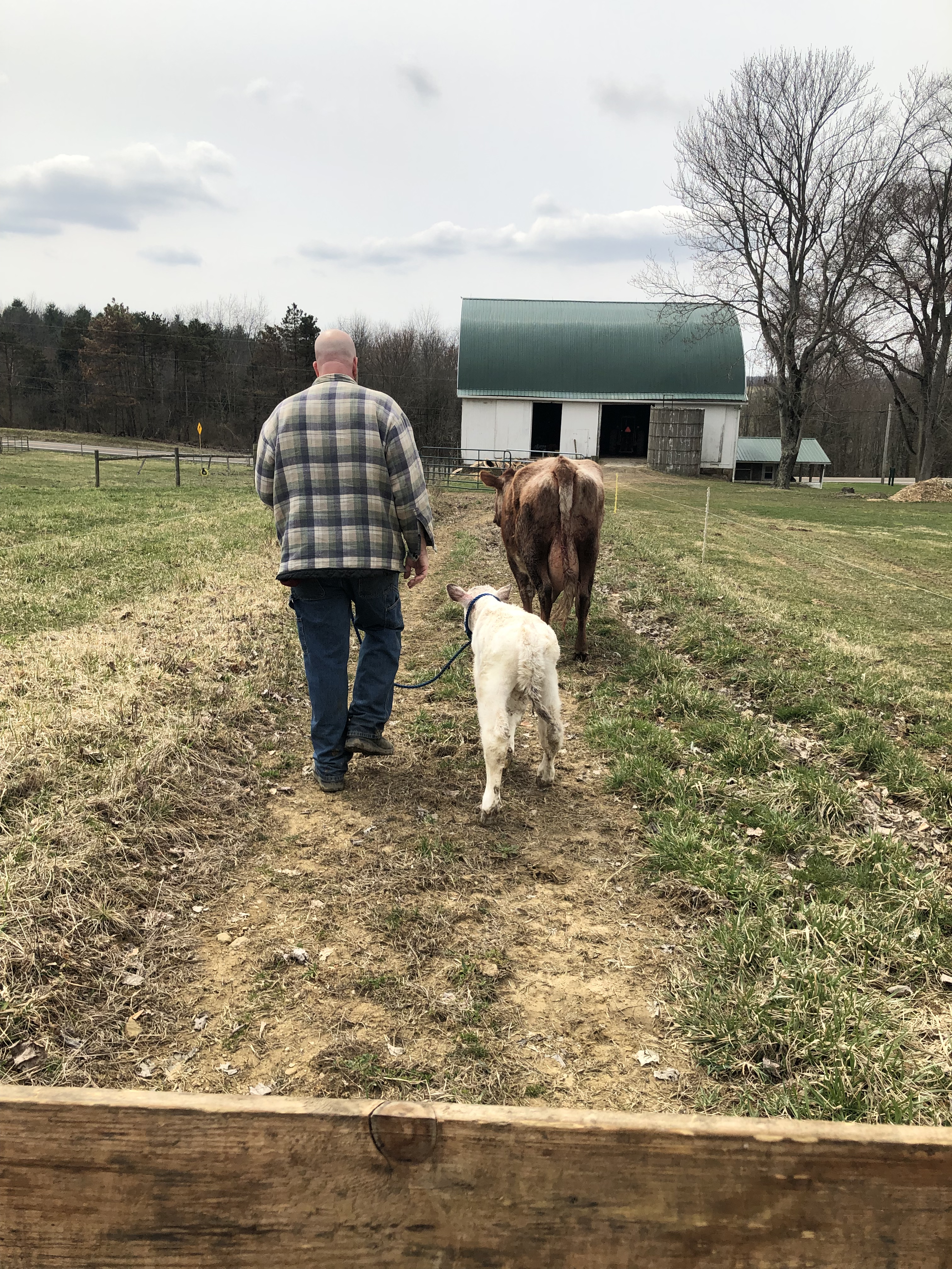 Then Mike took Jarjar from me, and walked him with Gluey & Ruby toward the barn. At this point, BOTH mamas thought Jarjar was their calf, lol.🙄