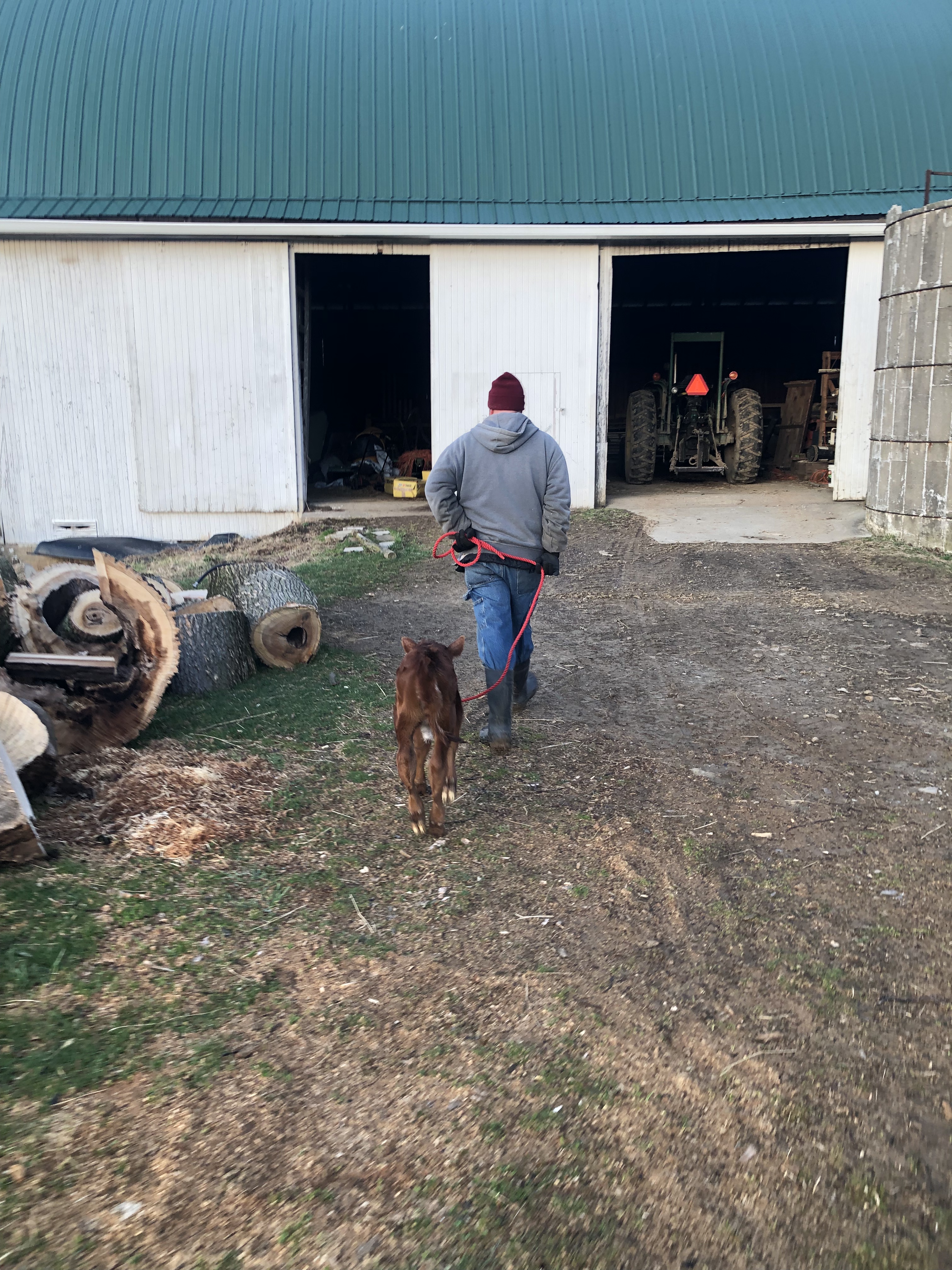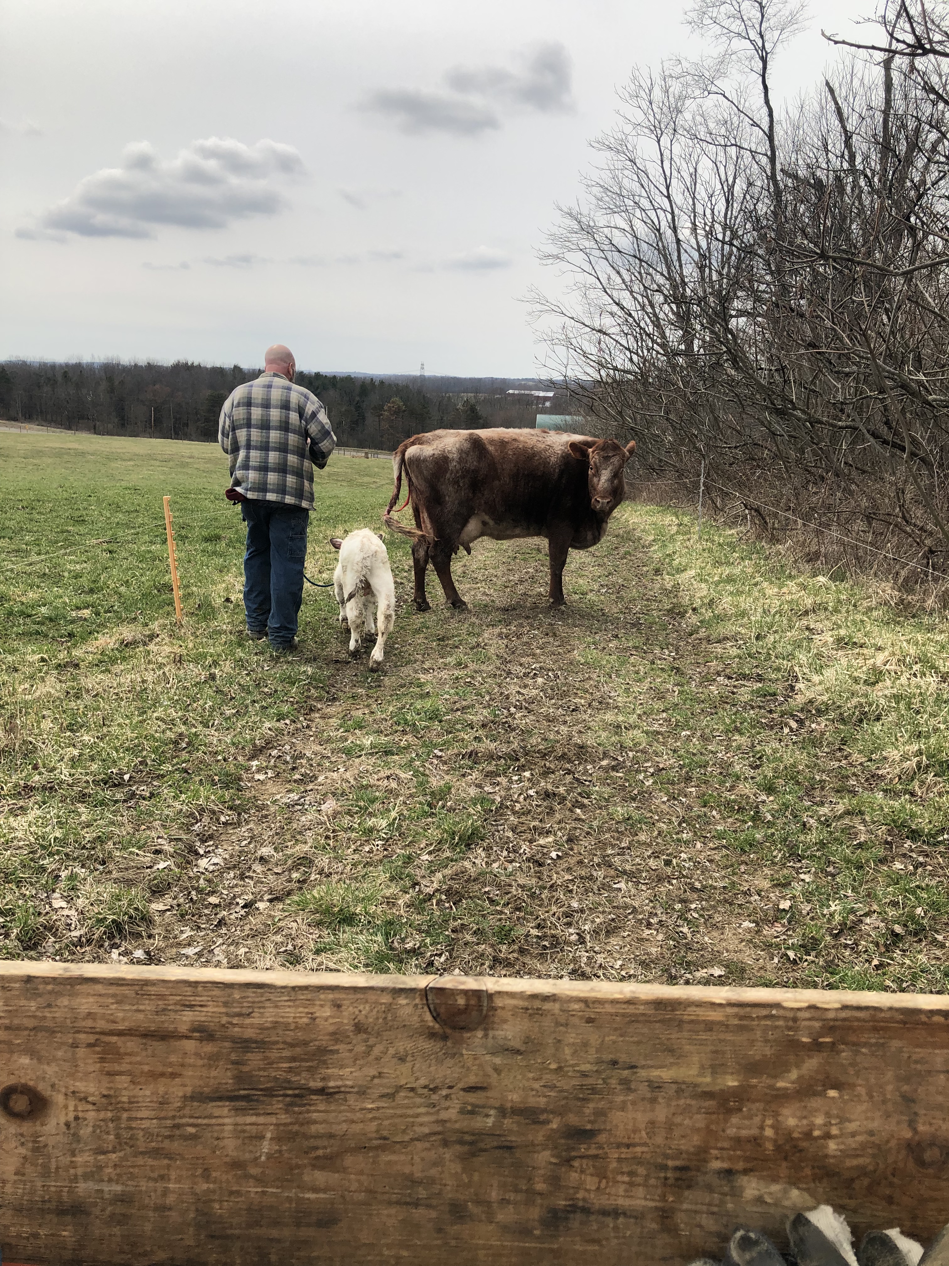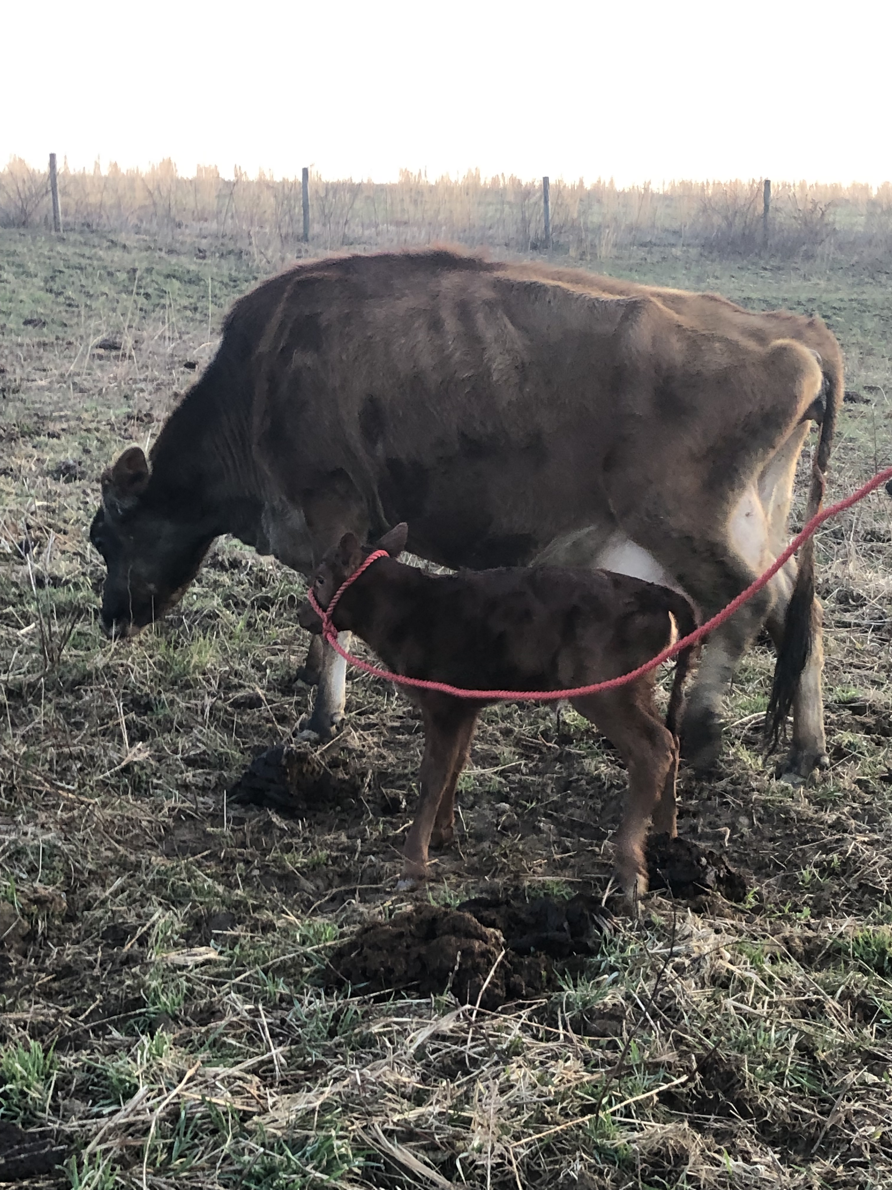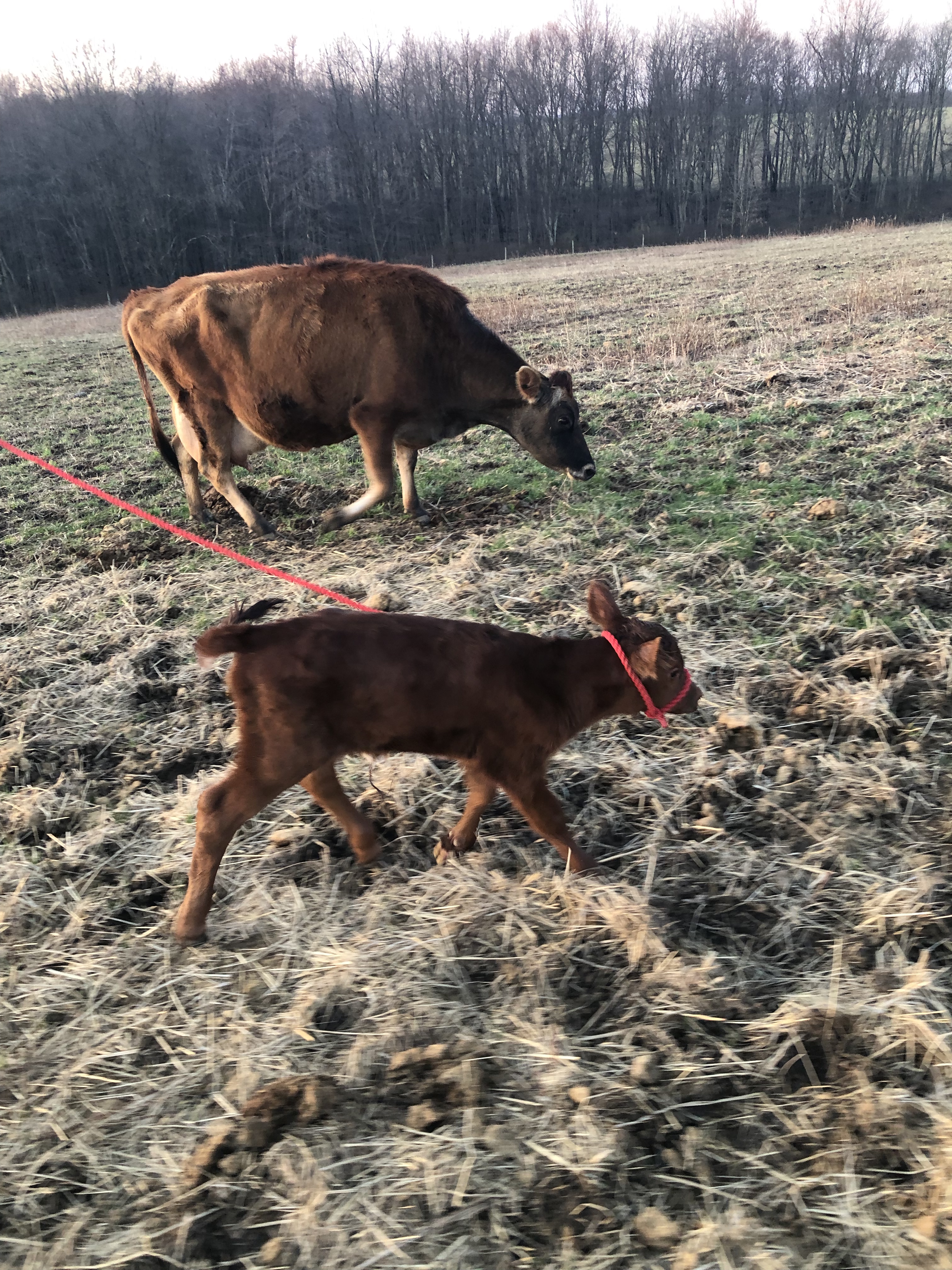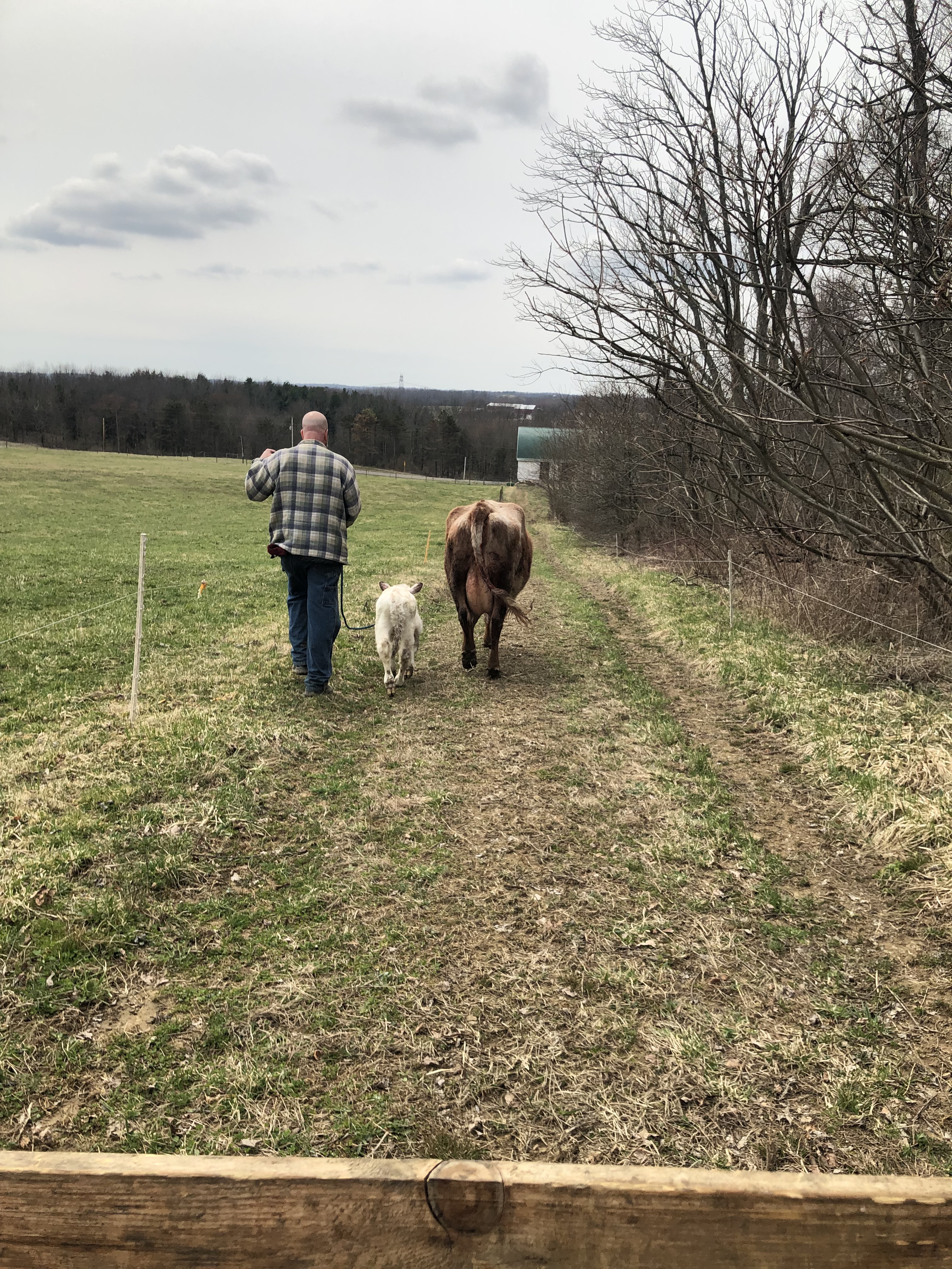 Then Mike took Jarjar from me, and walked him with Gluey & Ruby toward the barn. At this point, BOTH mamas thought Jarjar was their calf, lol.🙄