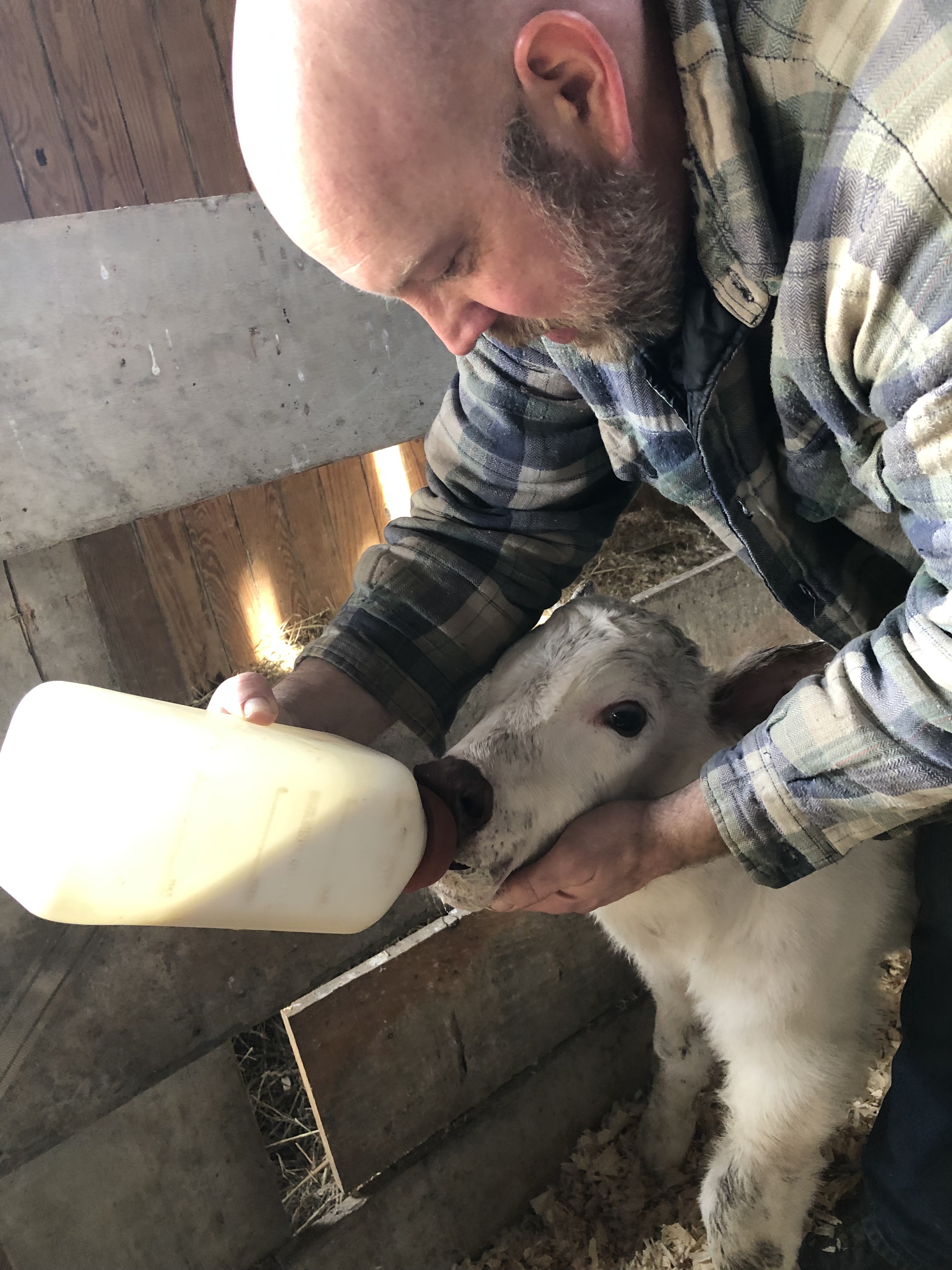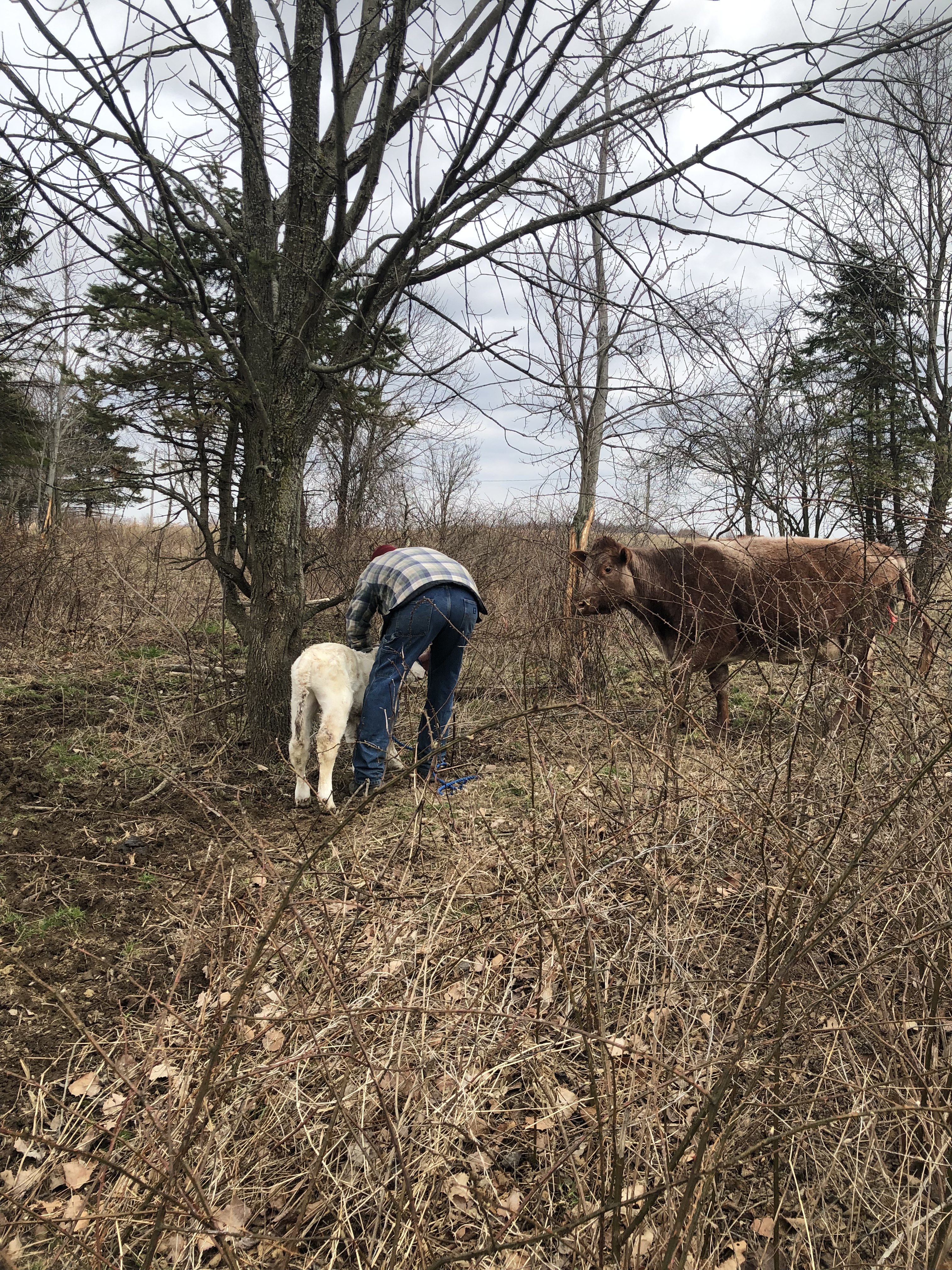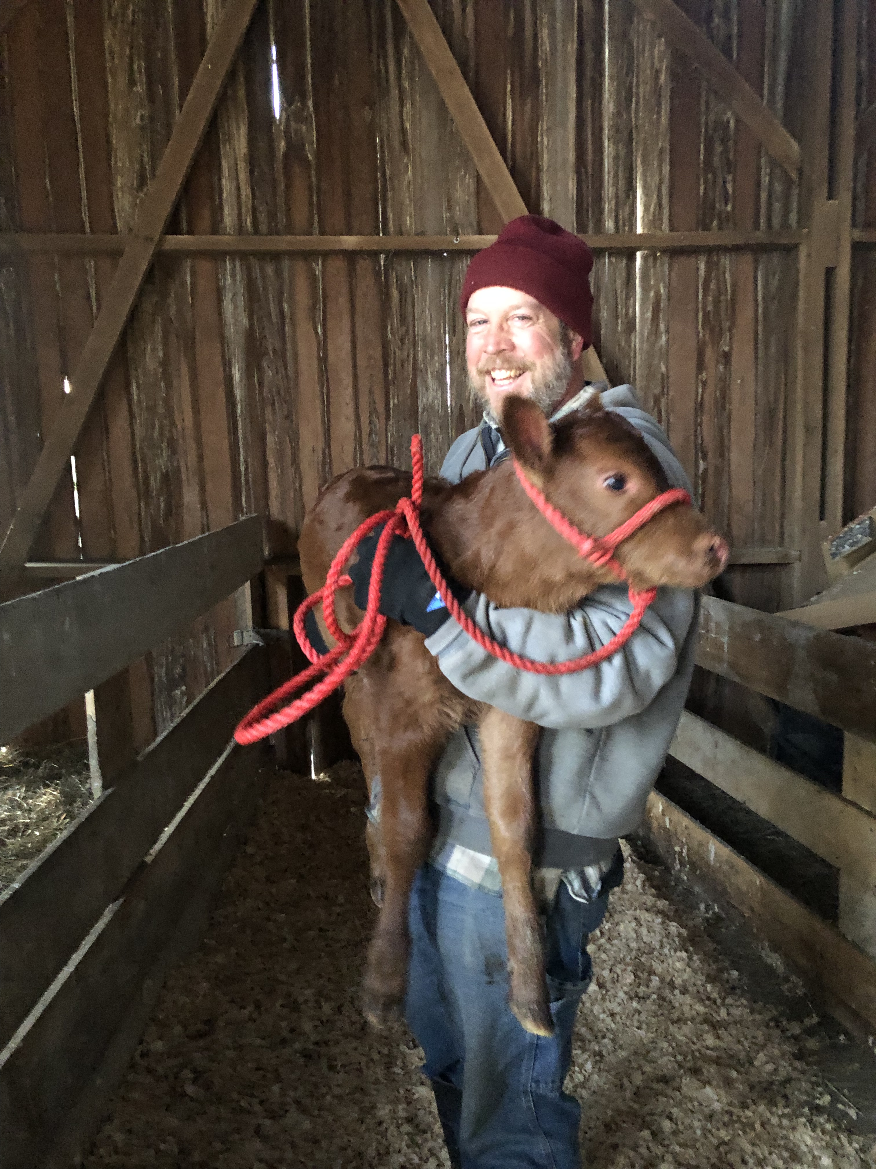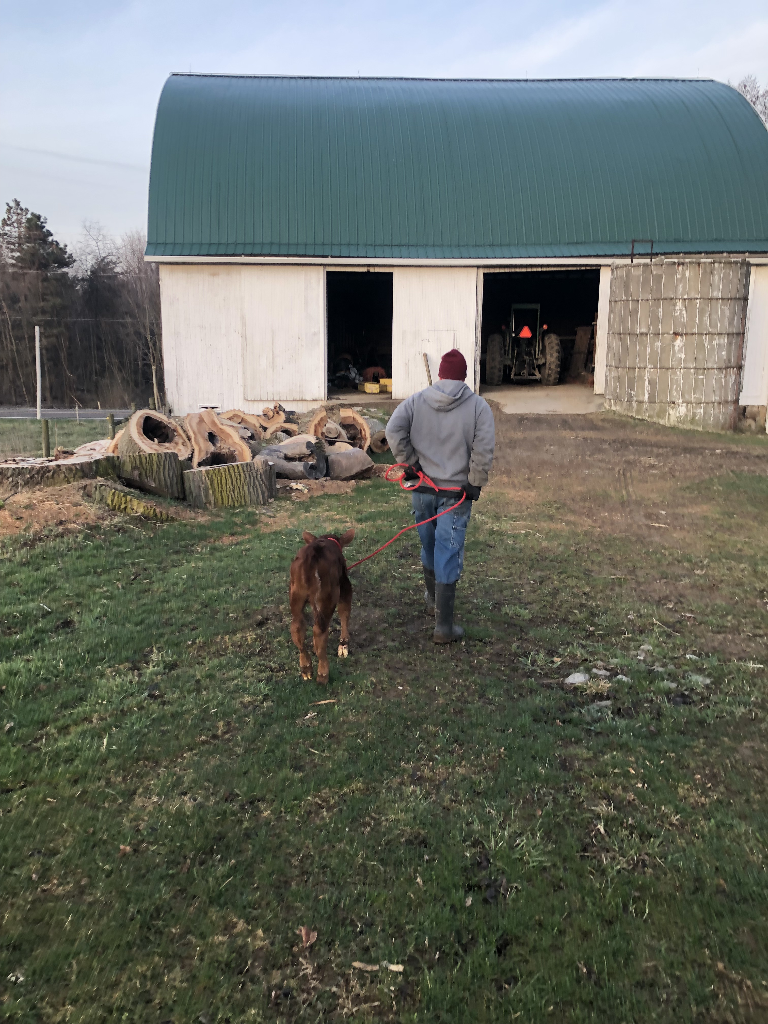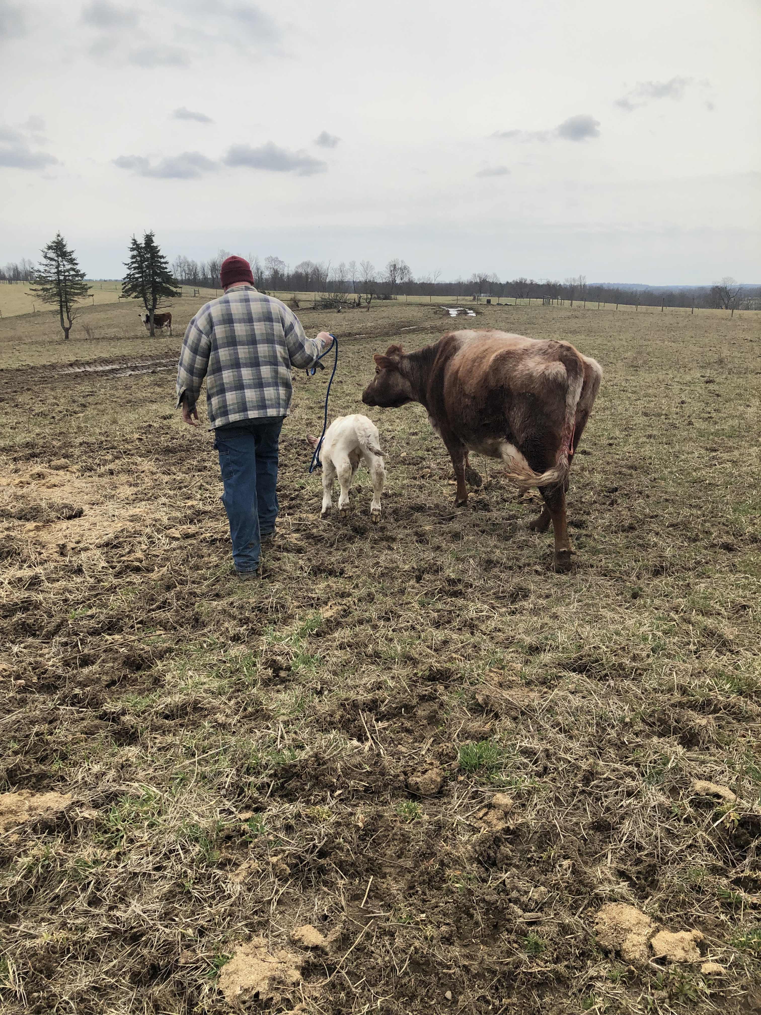 Then Mike took Jarjar from me, and walked him with Gluey & Ruby toward the barn. At this point, BOTH mamas thought Jarjar was their calf, lol.🙄