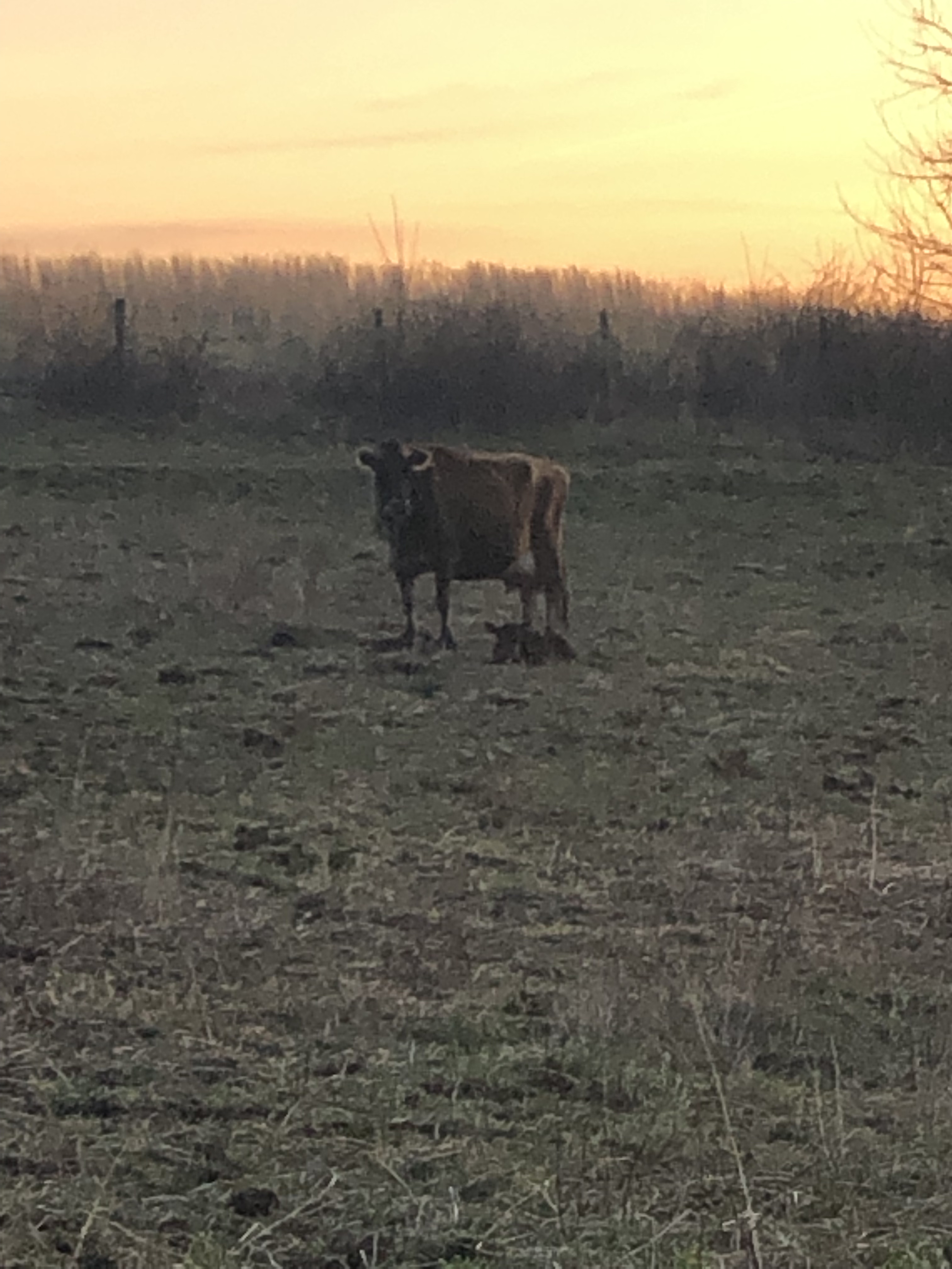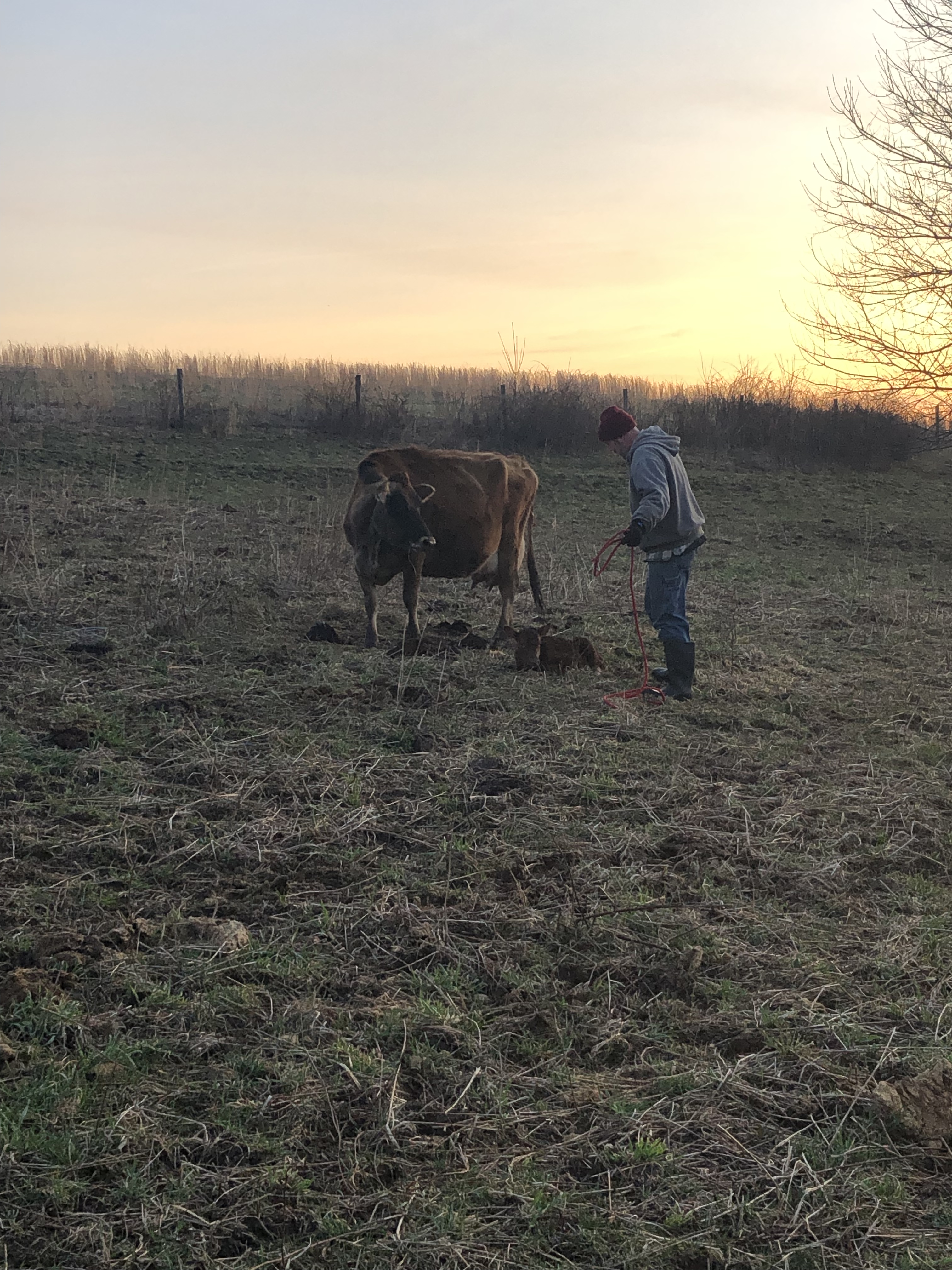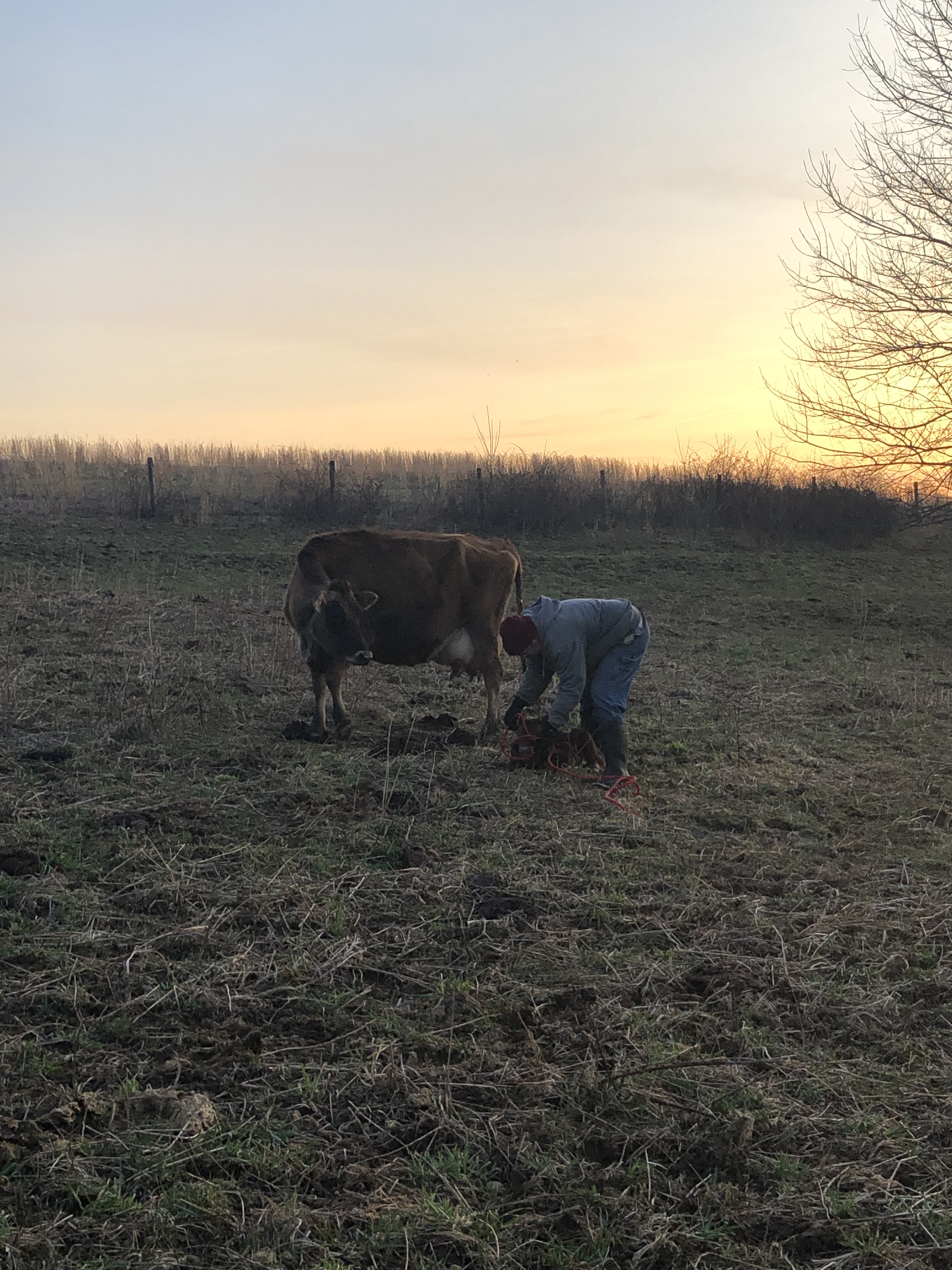 After much prayer and deliberation, we decided to allow the boys to stay with their moms for the night. With the sun going down quickly and our bodies feeling weary, we felt it would be better to bring everybody down in the morning instead. This concept is scary for us control-freak-types…😬 In this field, the herd is contained in just a single wire of electric, and there is no perimeter fence around the edges.🙏🏼