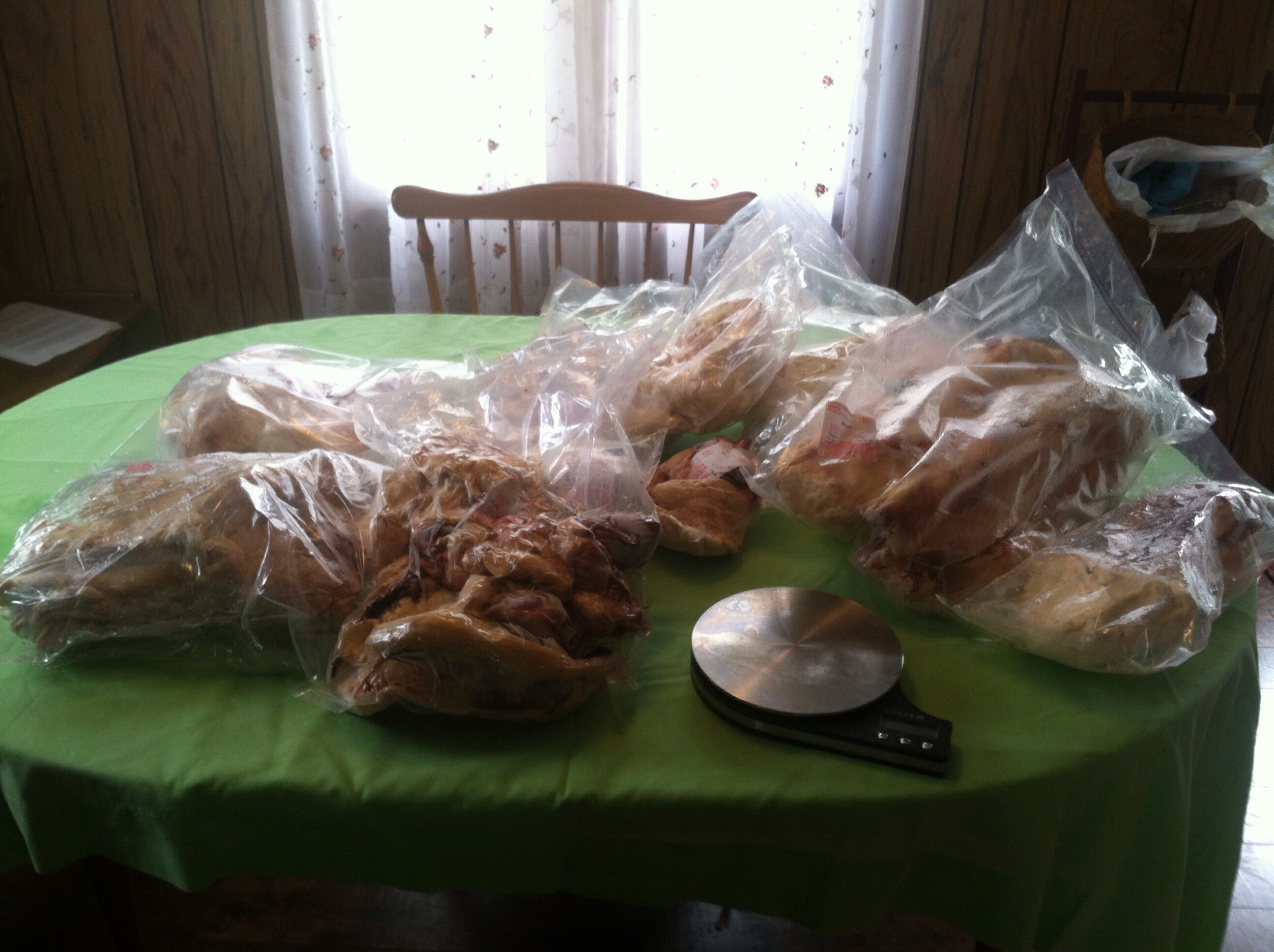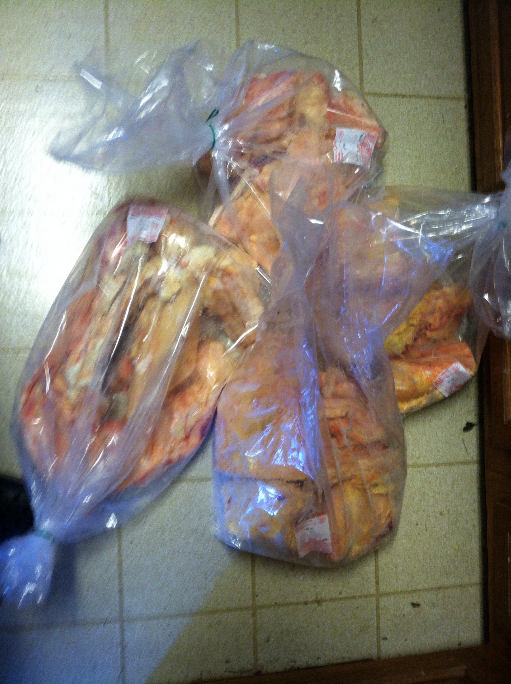 Day #1, we rendered these four bags: a little over 45 pounds. π