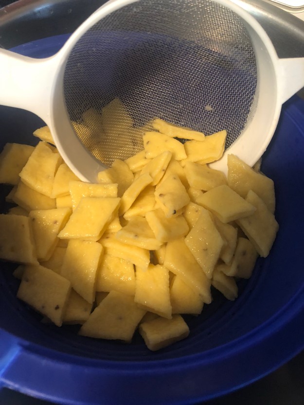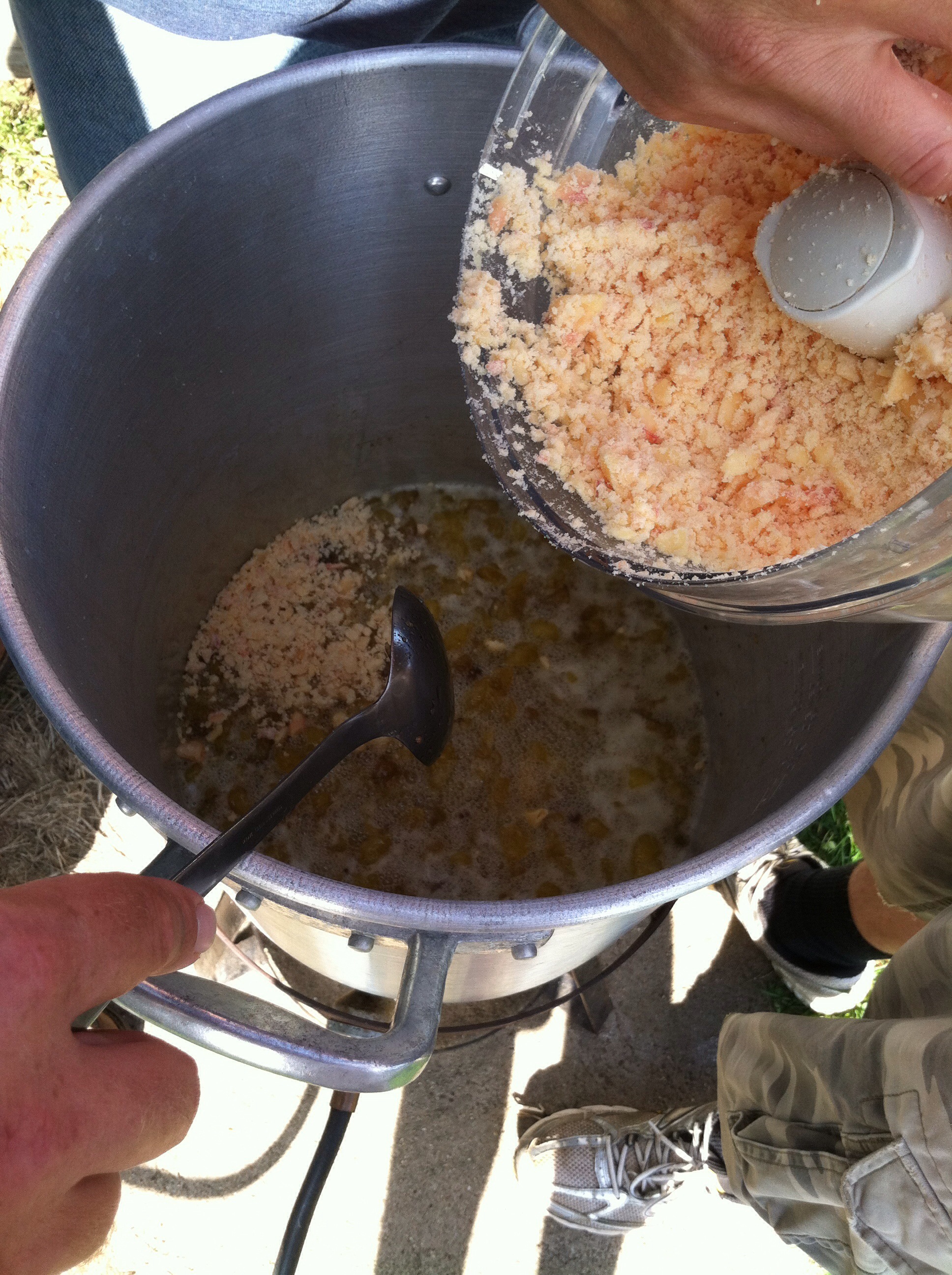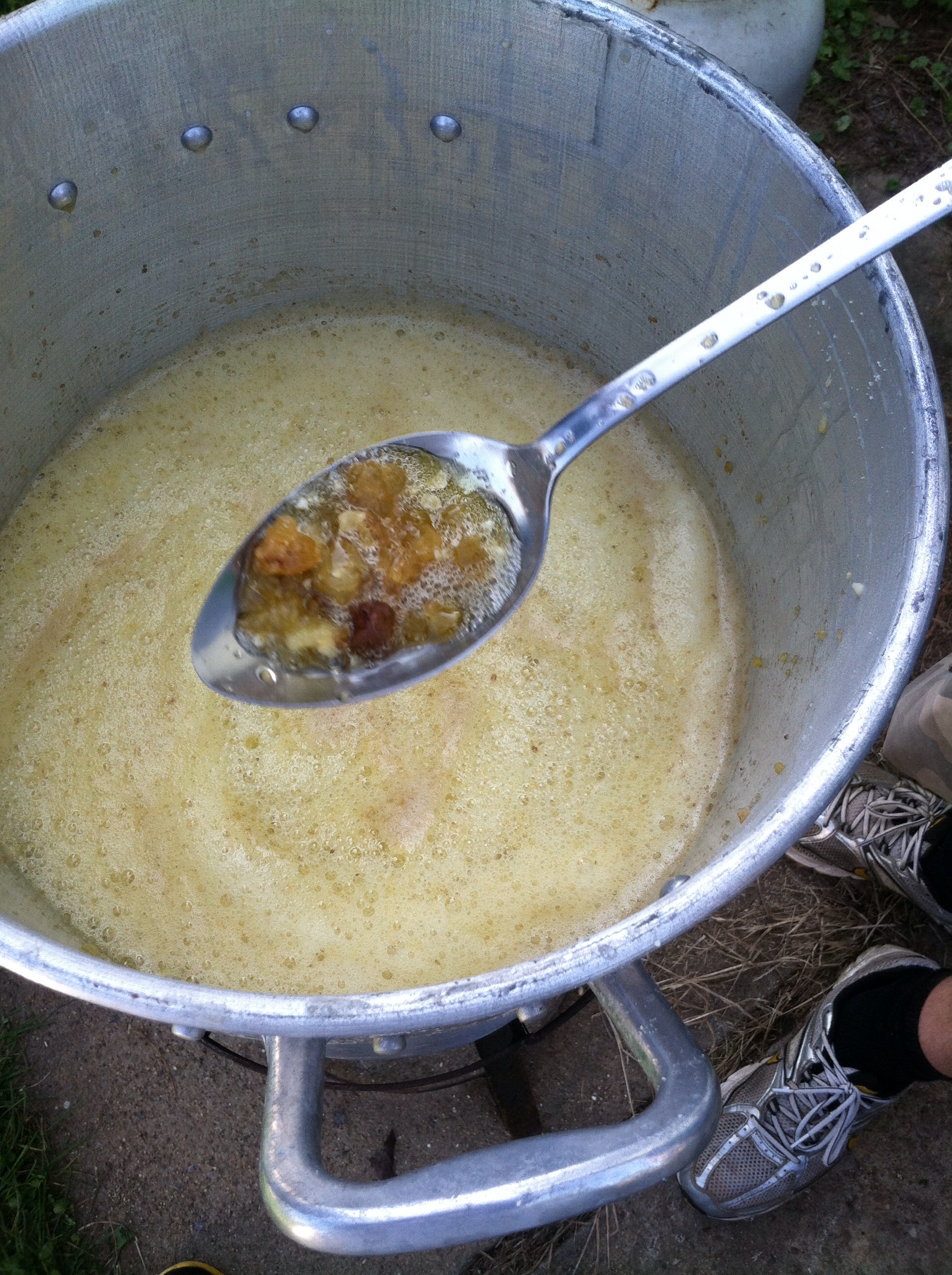 For Day #1, we borrowed our friends’ turkey fryer & just kept adding crumbles into the pot. It worked nice because it was a huge pot & it kept the distinctive smell OUTSIDE… π